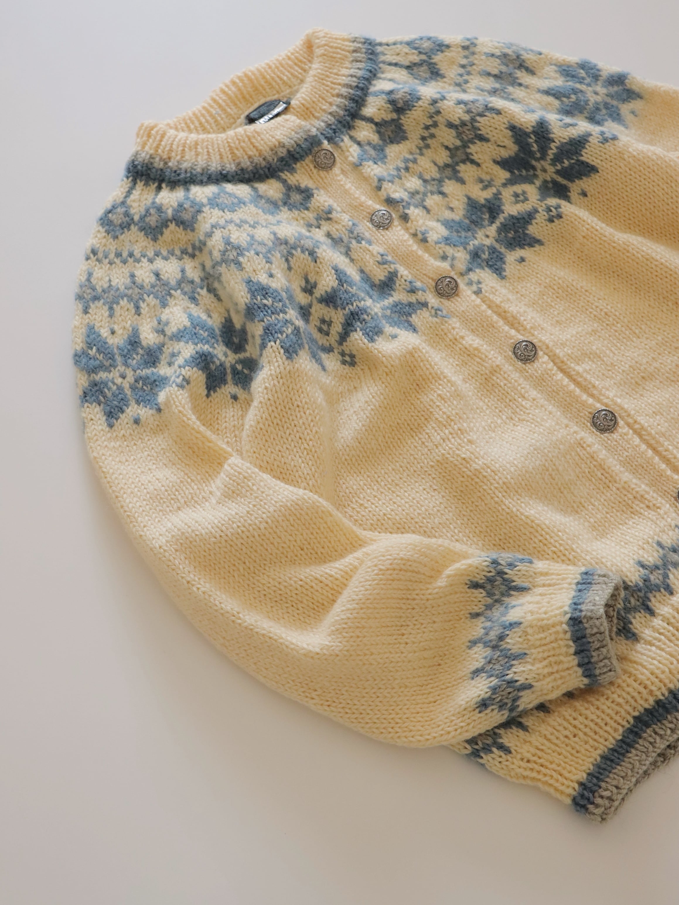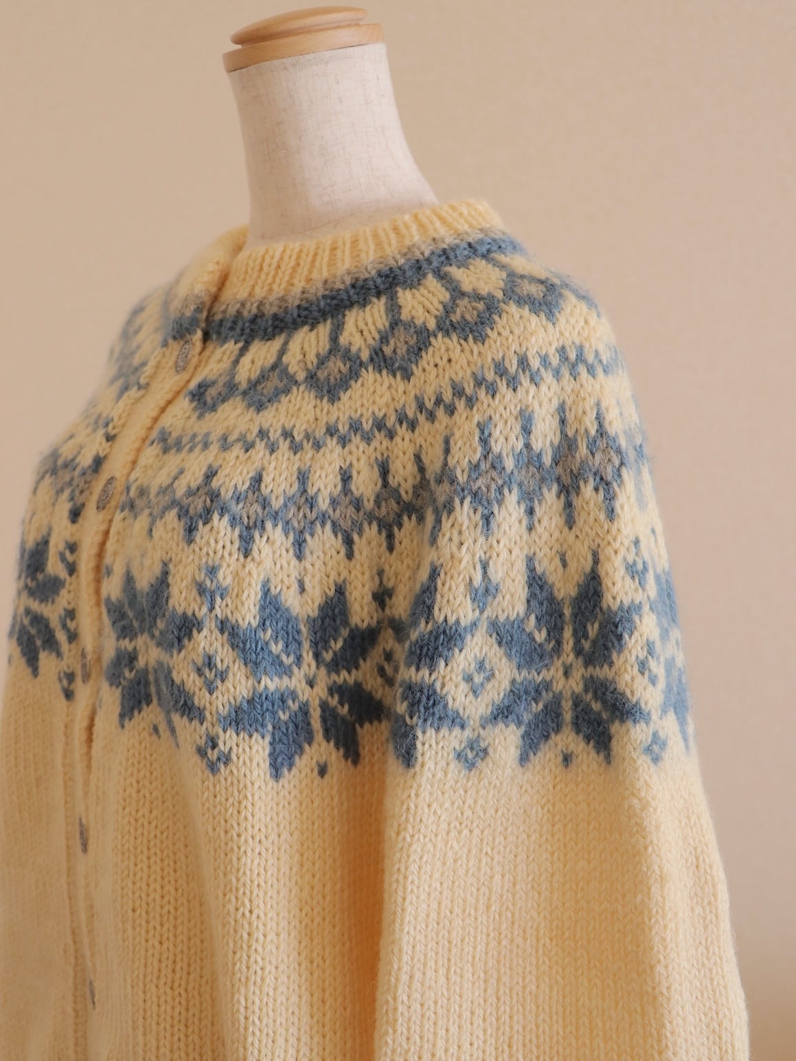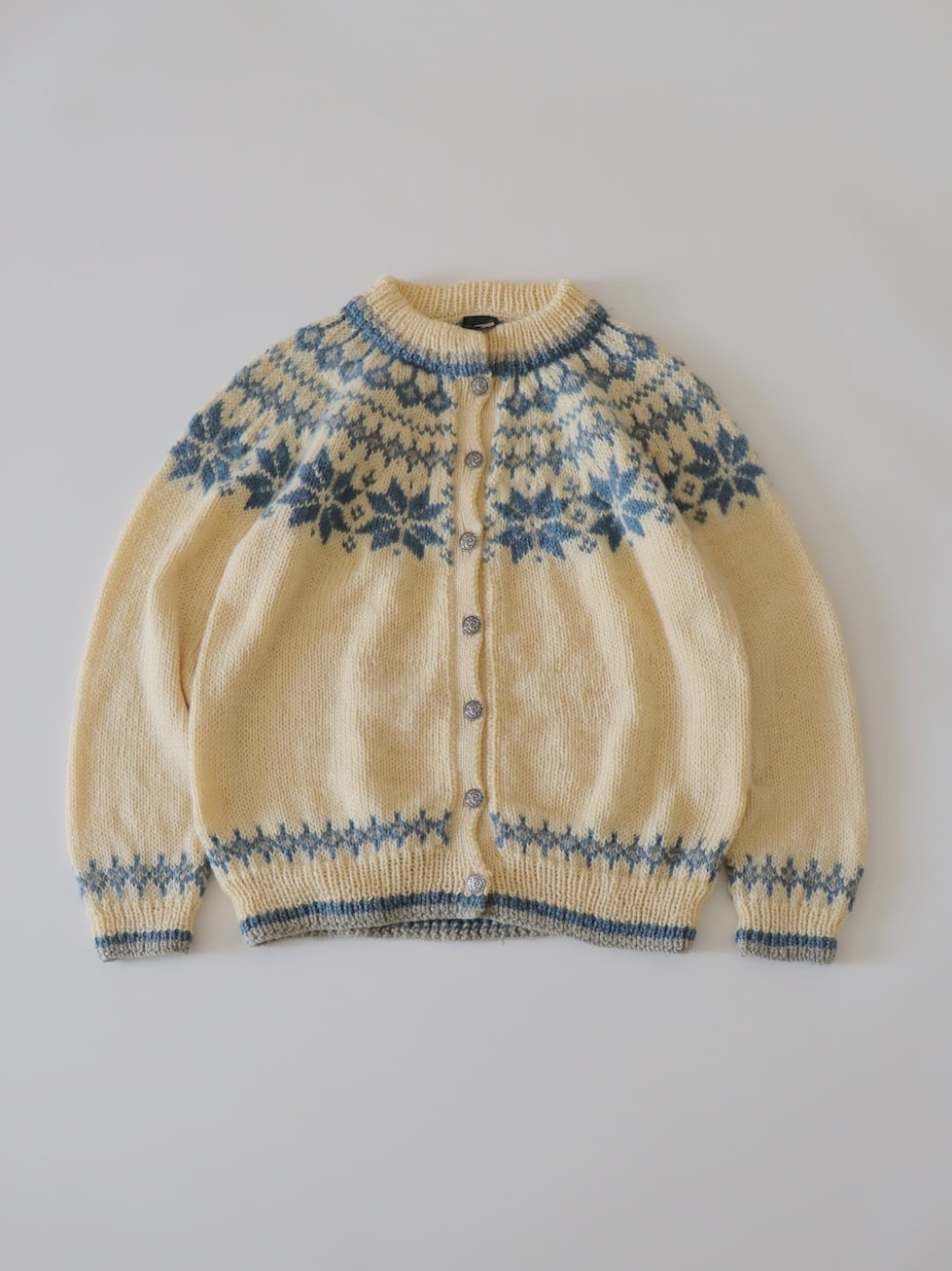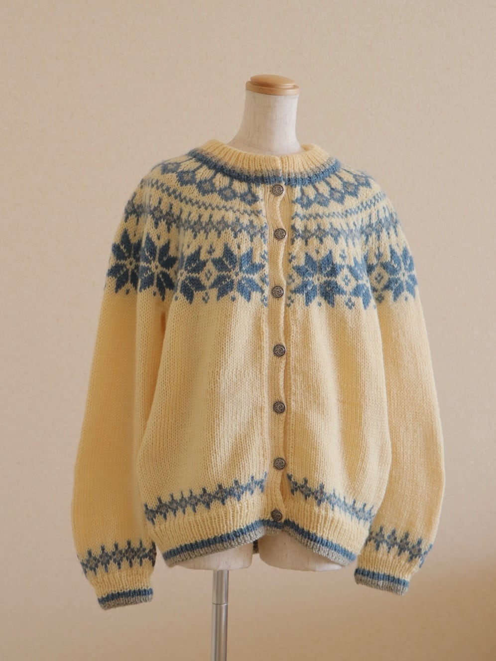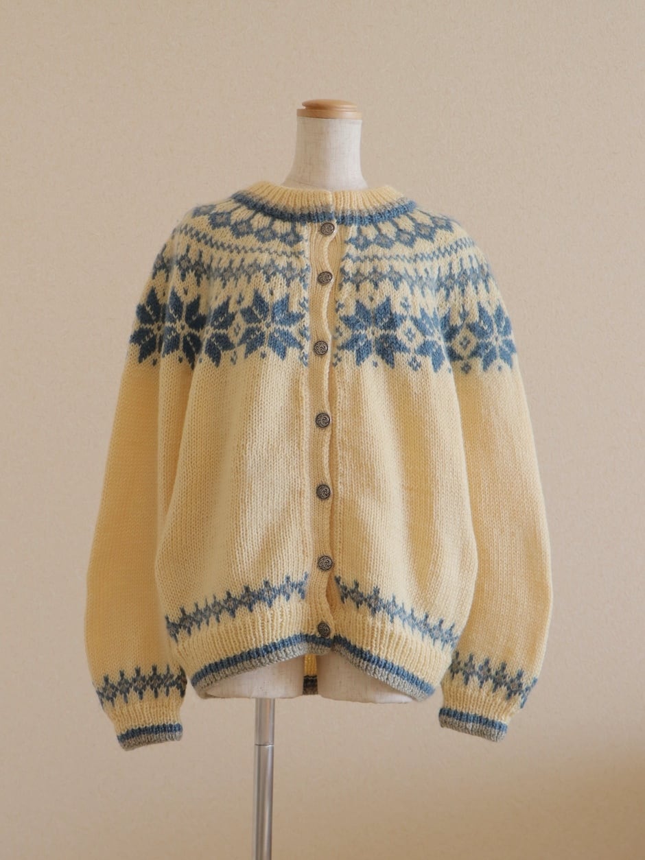 ●Hand knitted pure wool snowflake design nordic cardigan.