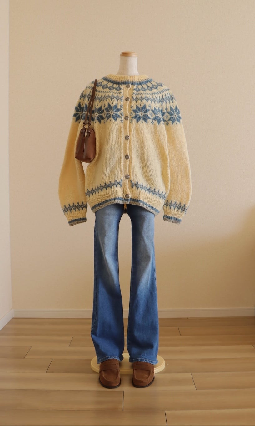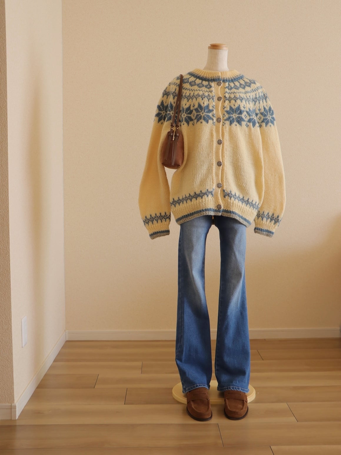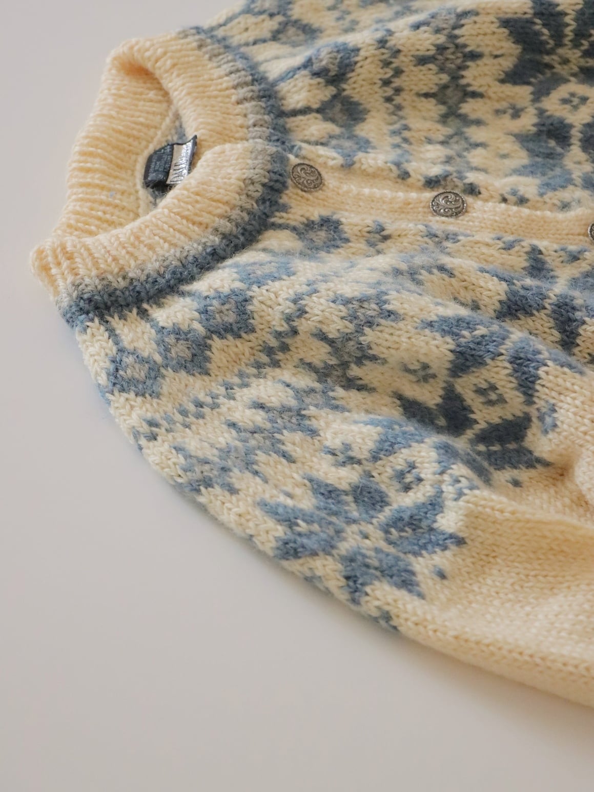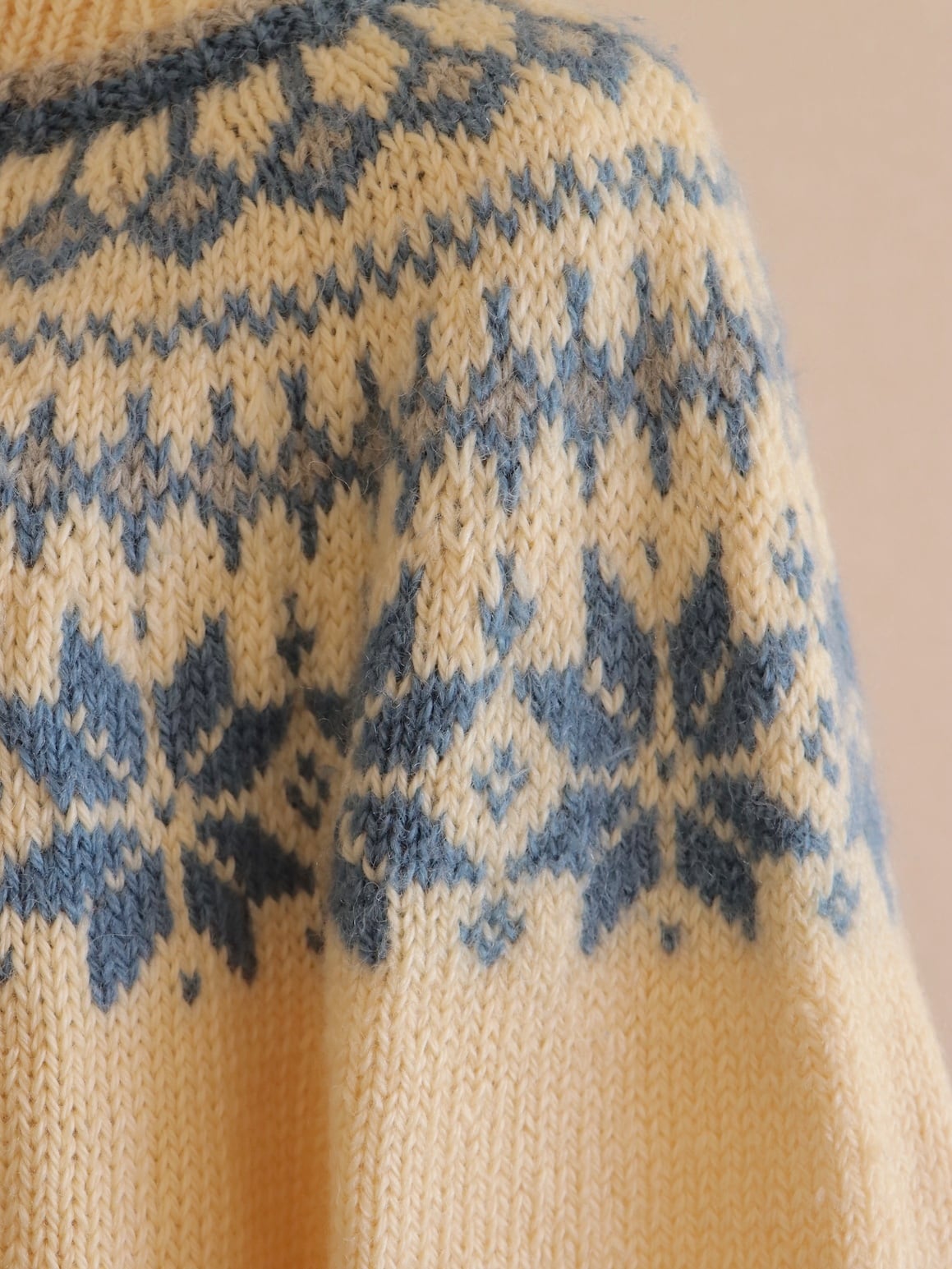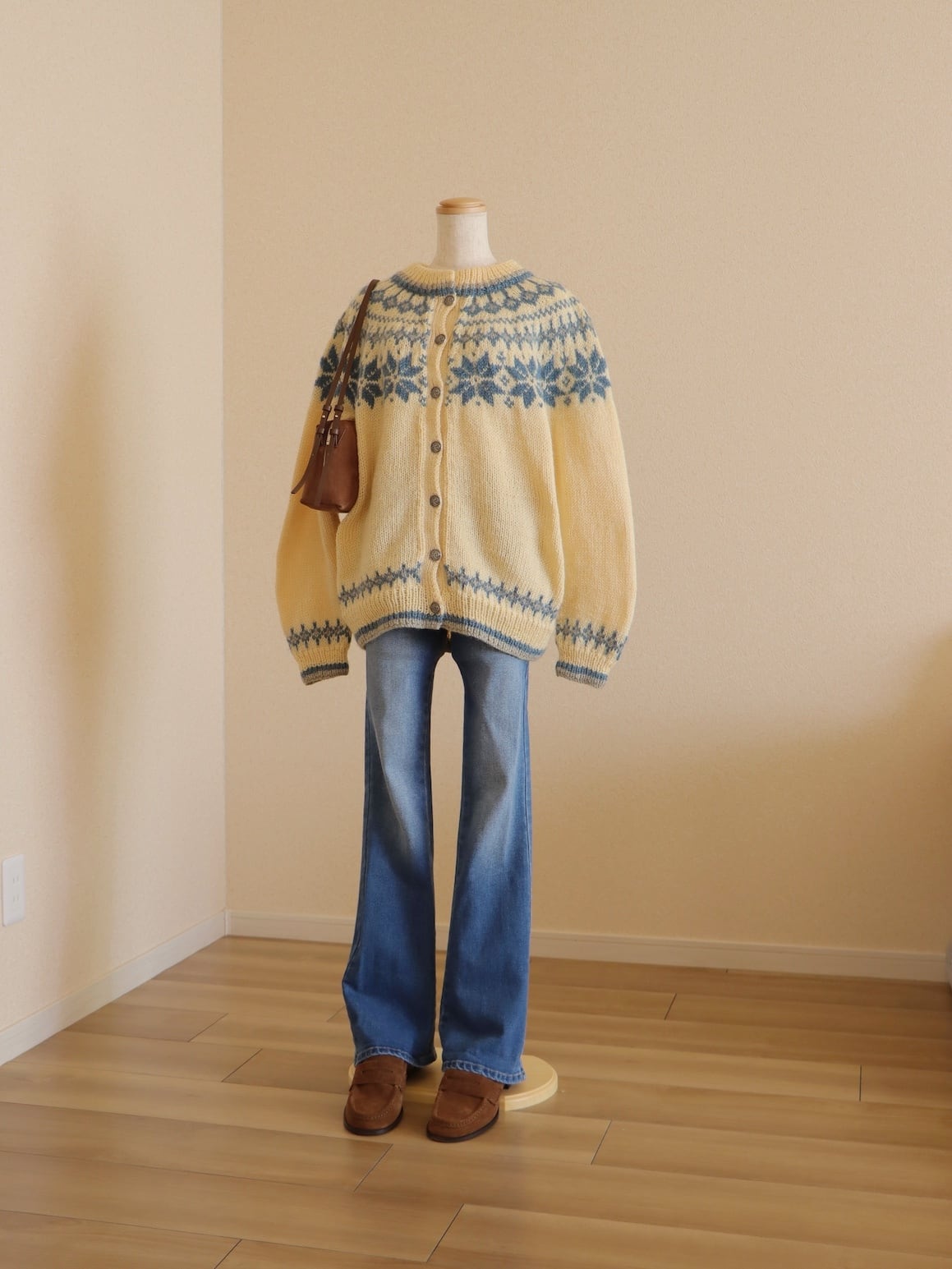 ●Hand knitted pure wool snowflake design nordic cardigan.