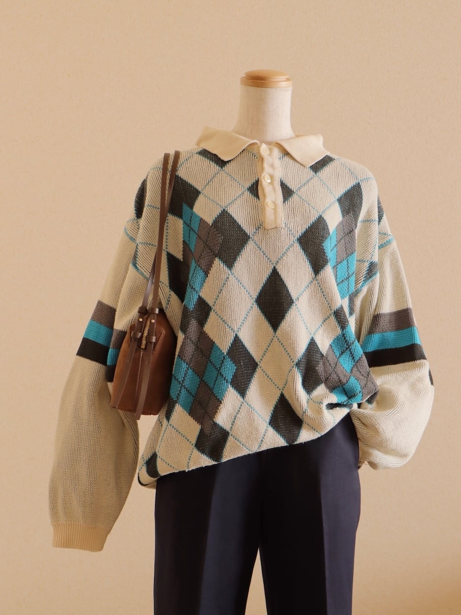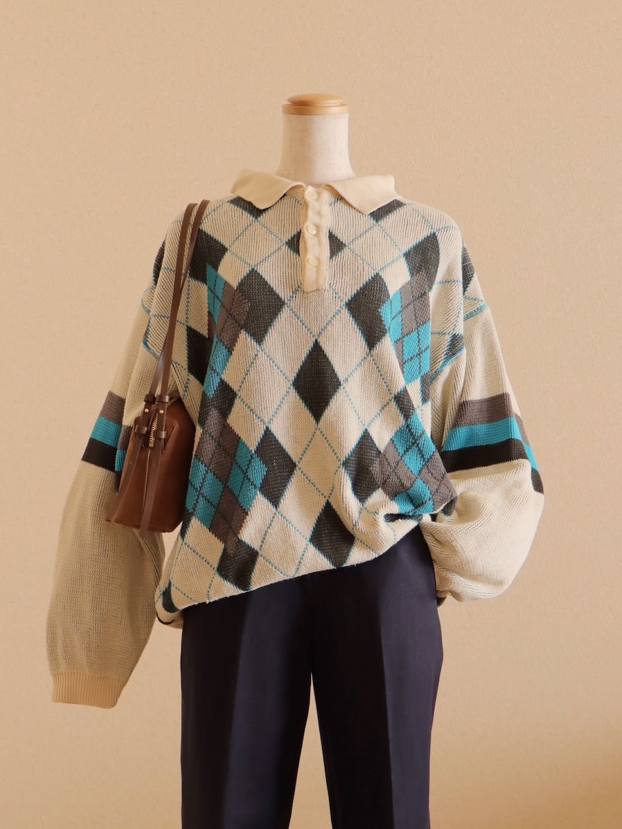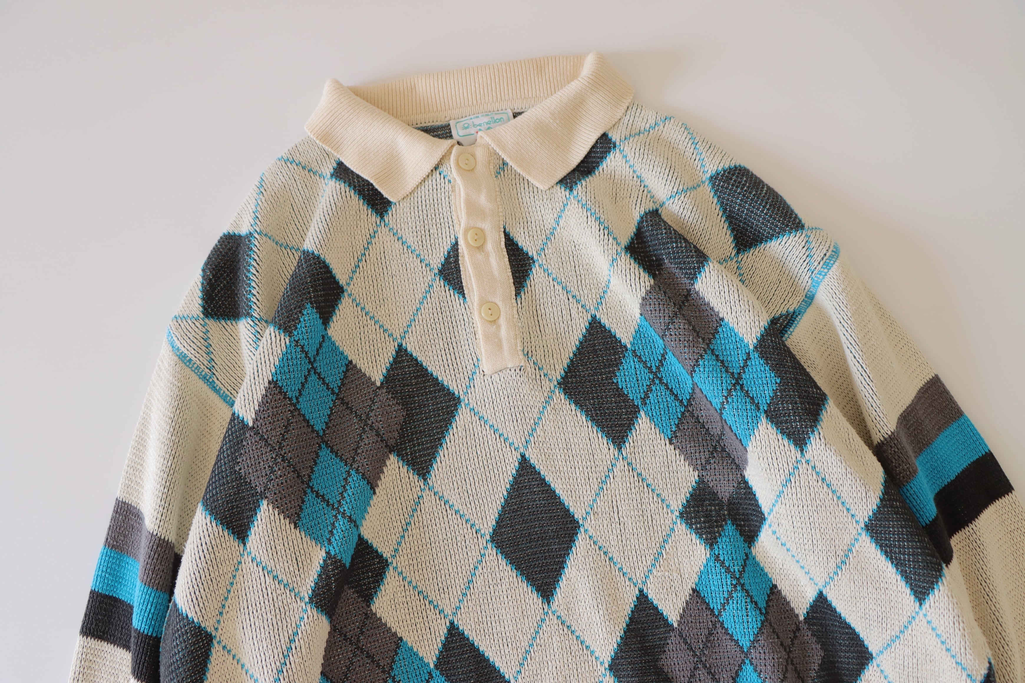 ●made in ITALY BENETTON argyle Jacquard knitted sweater