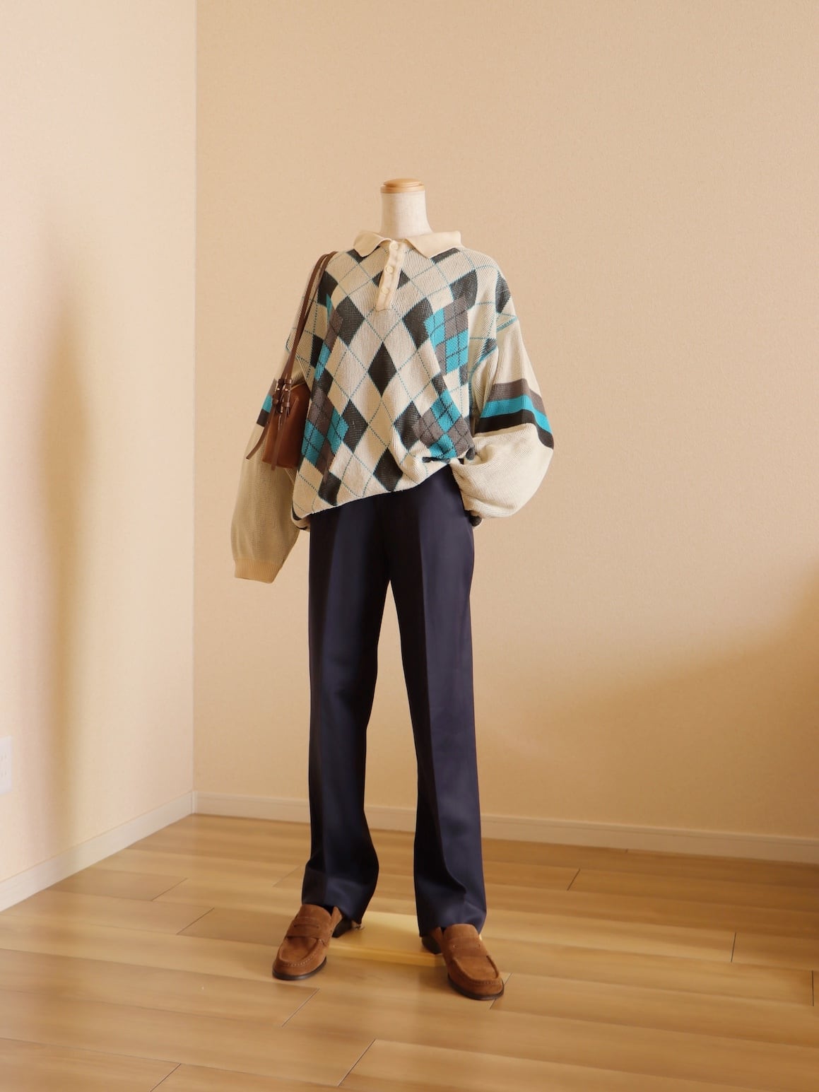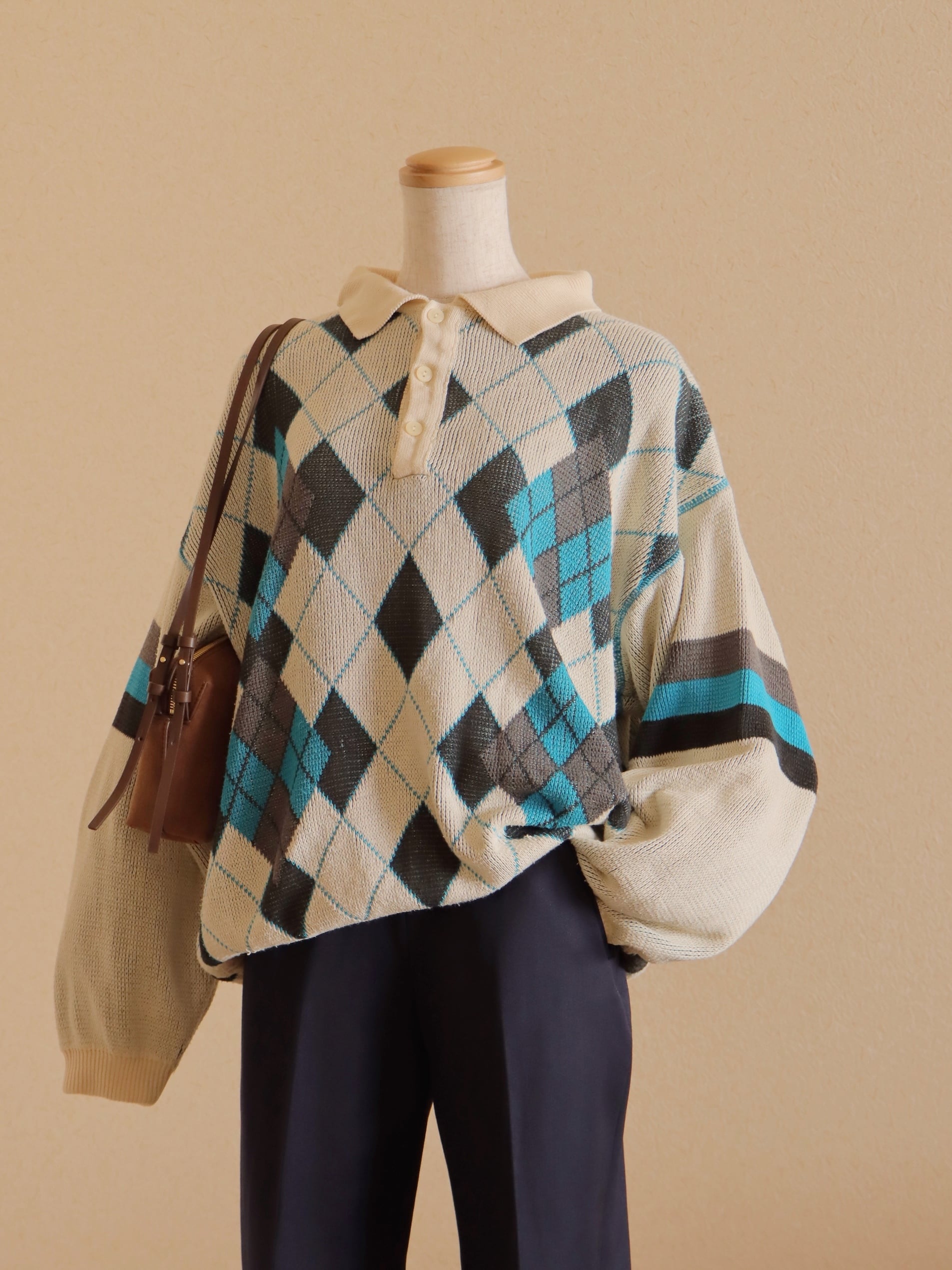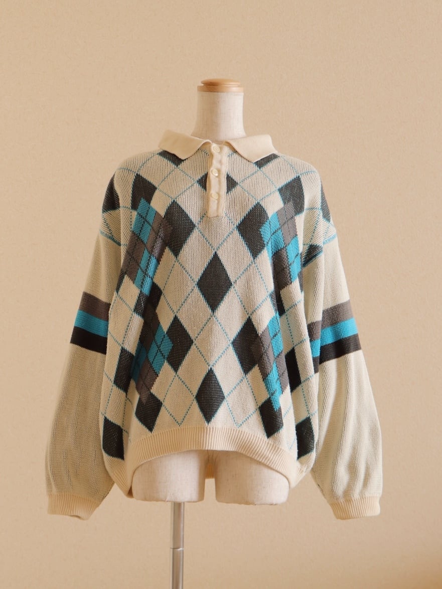 ●made in ITALY BENETTON argyle Jacquard knitted sweater