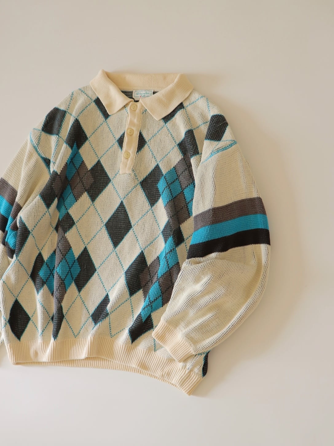 ●made in ITALY BENETTON argyle Jacquard knitted sweater.