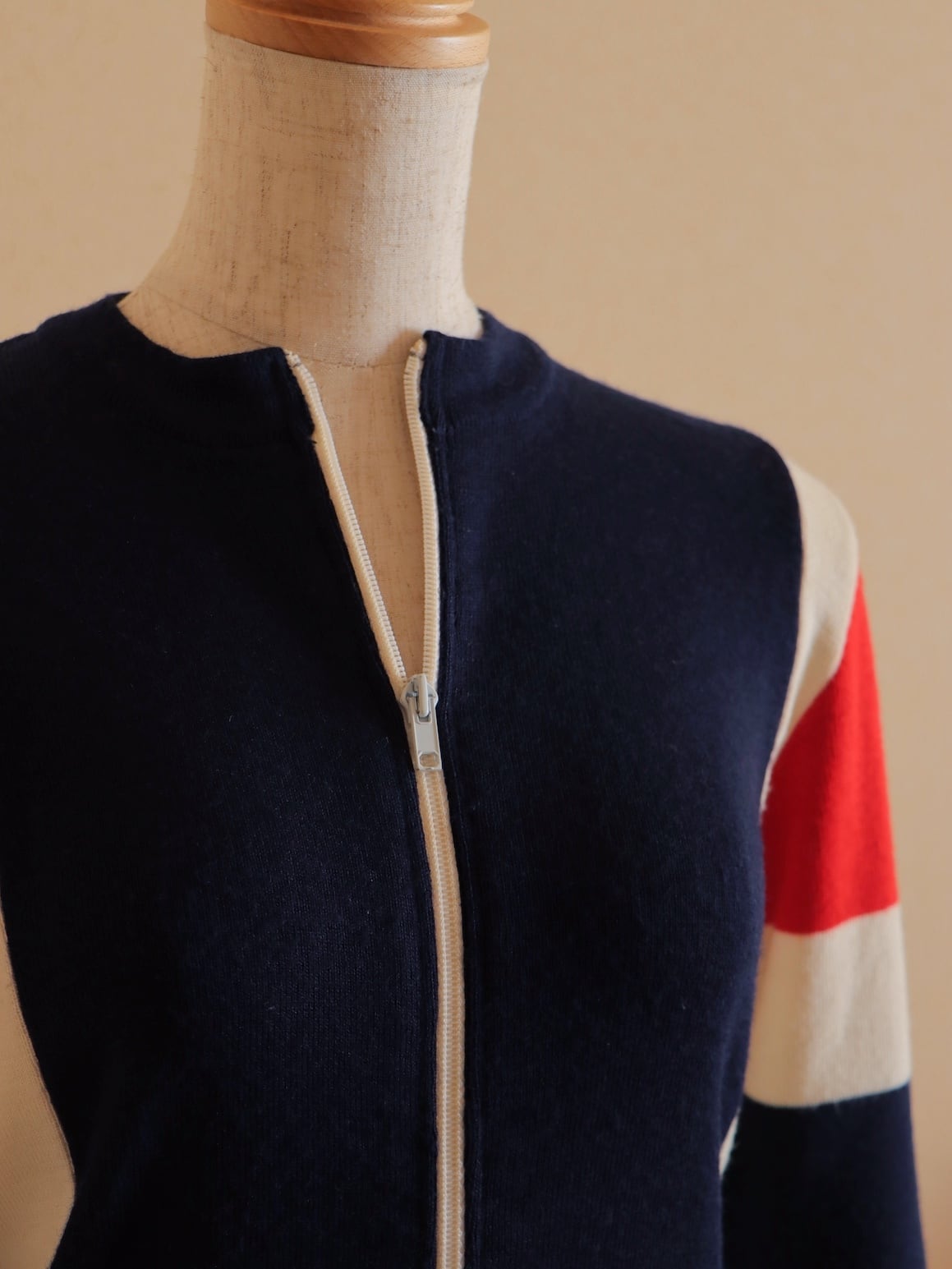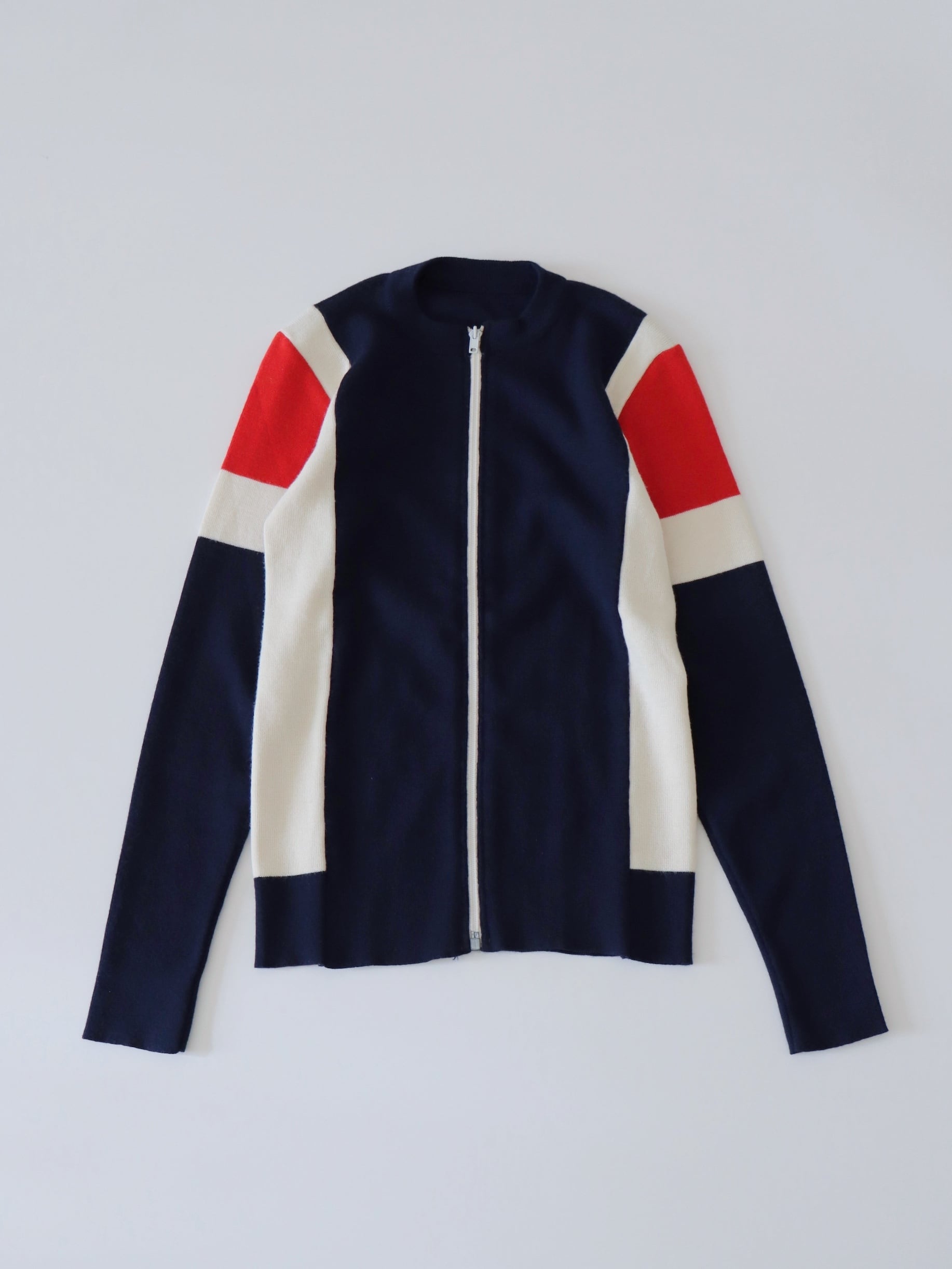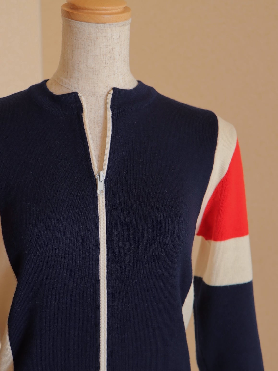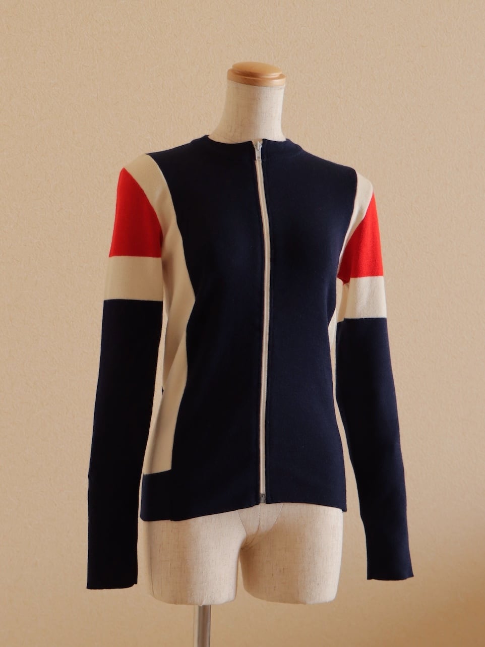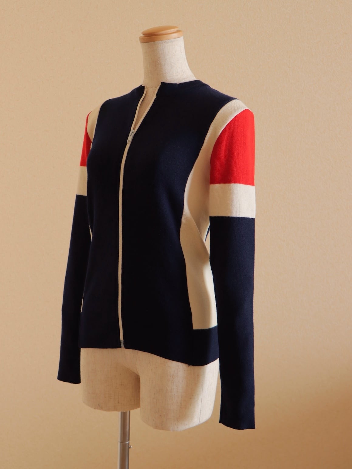 ●Tricolor color wool front zipper knitted cardigan top.