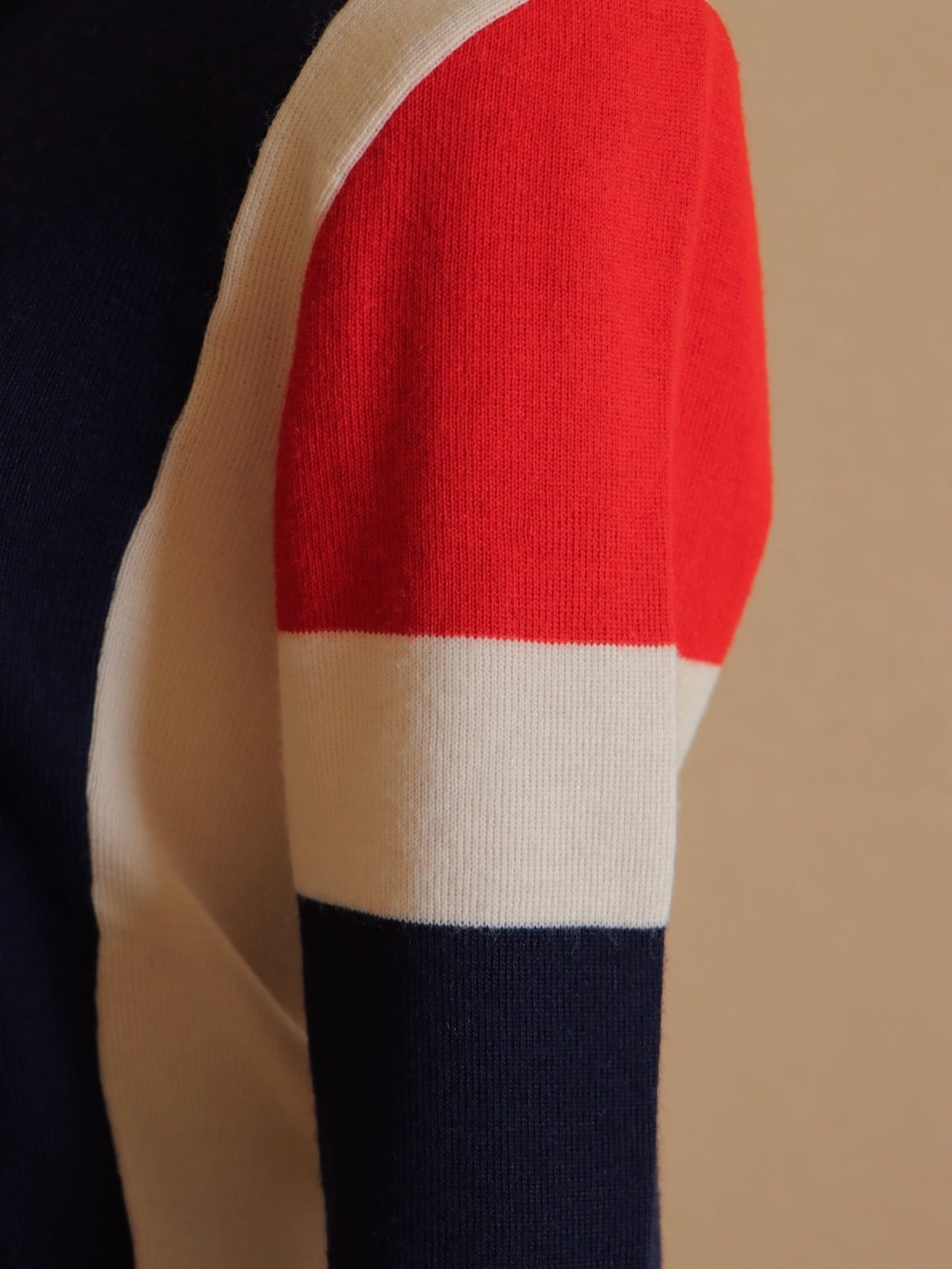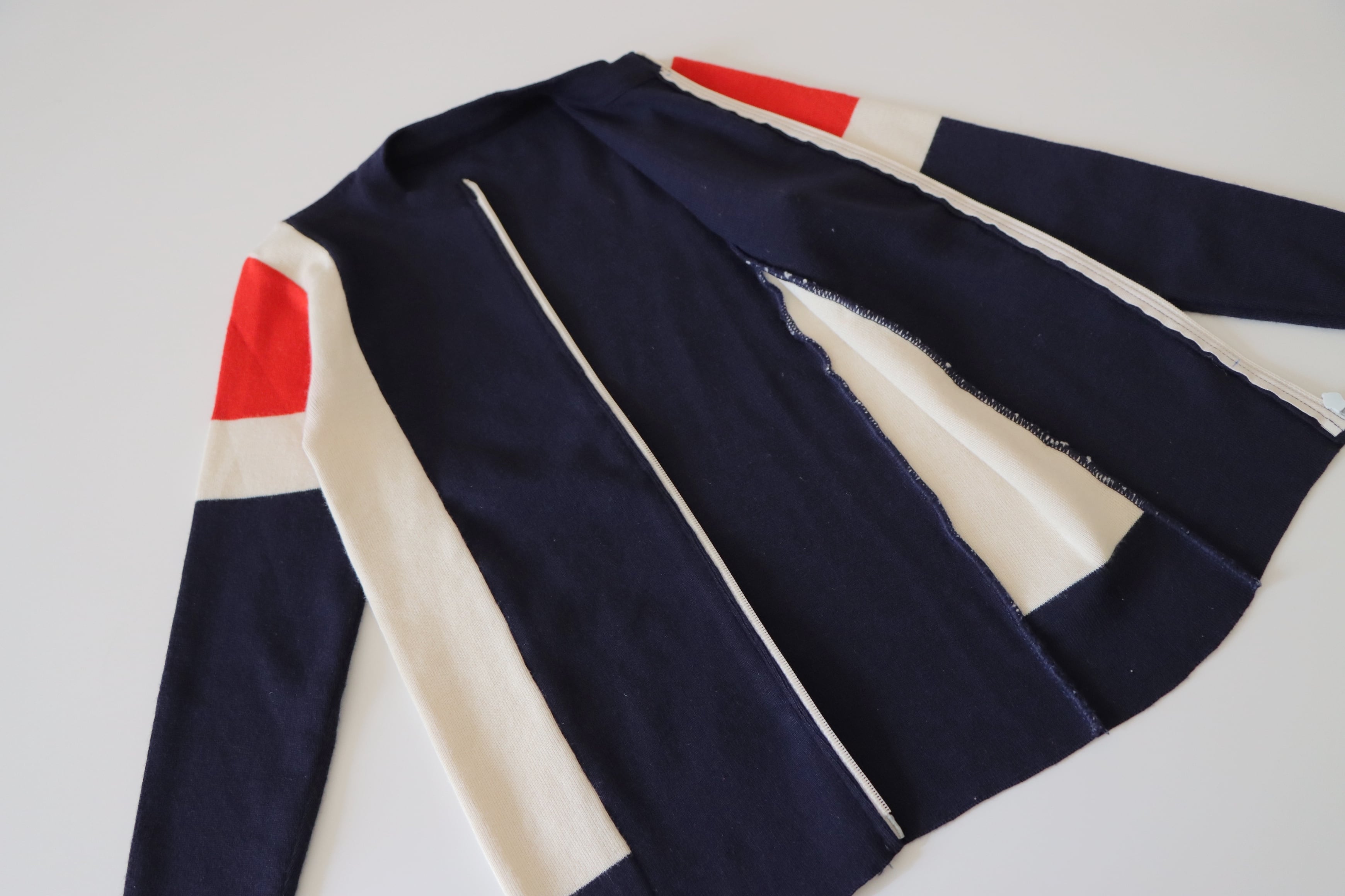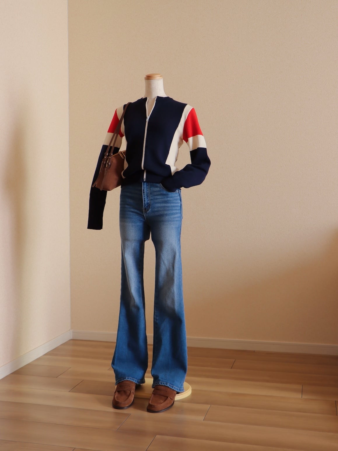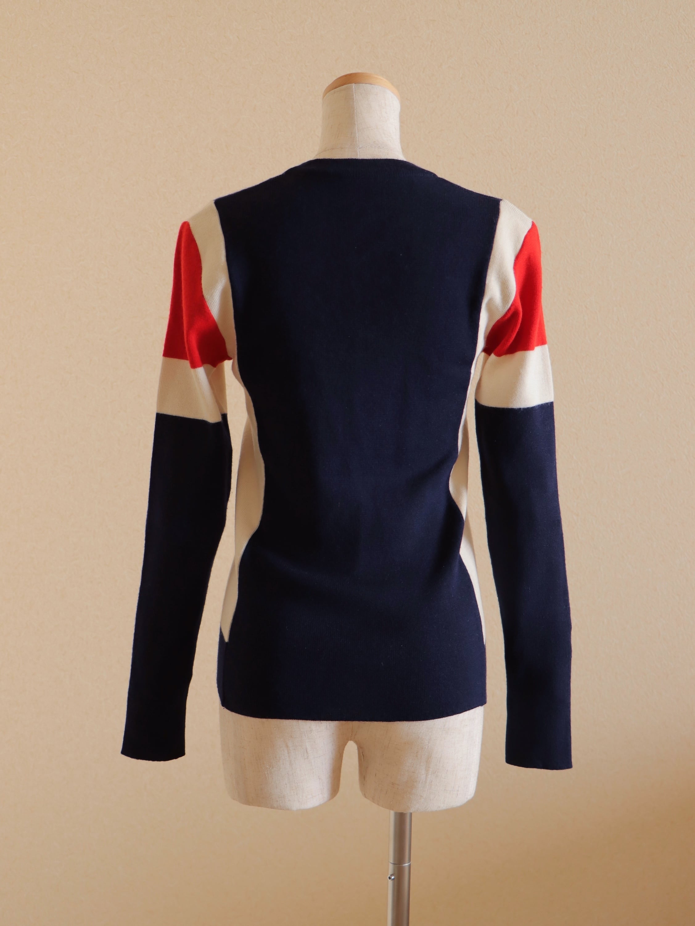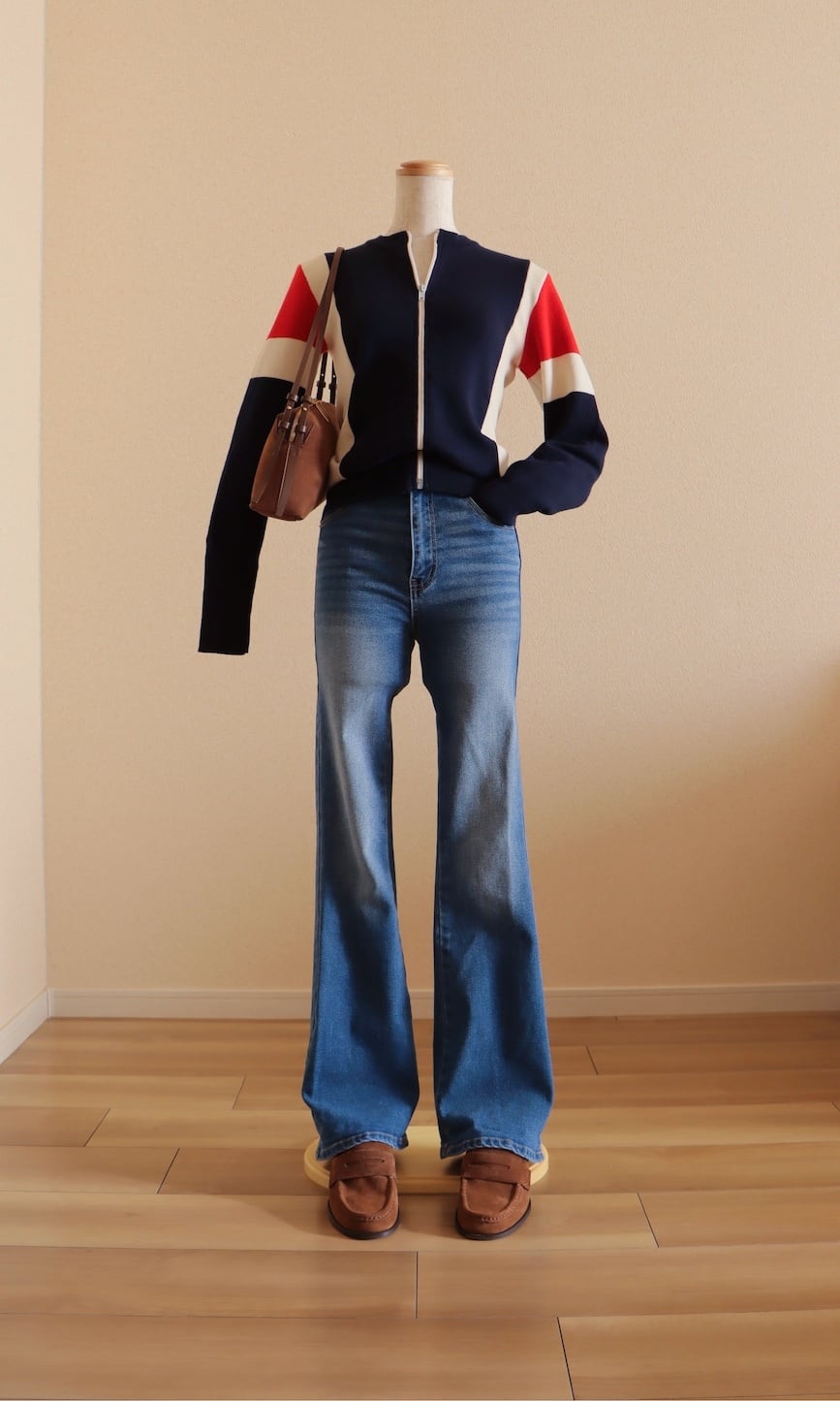 ●Tricolor color wool front zipper knitted cardigan top.