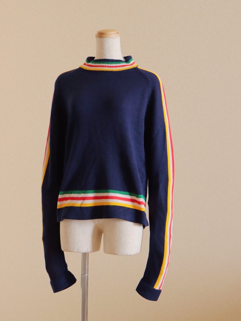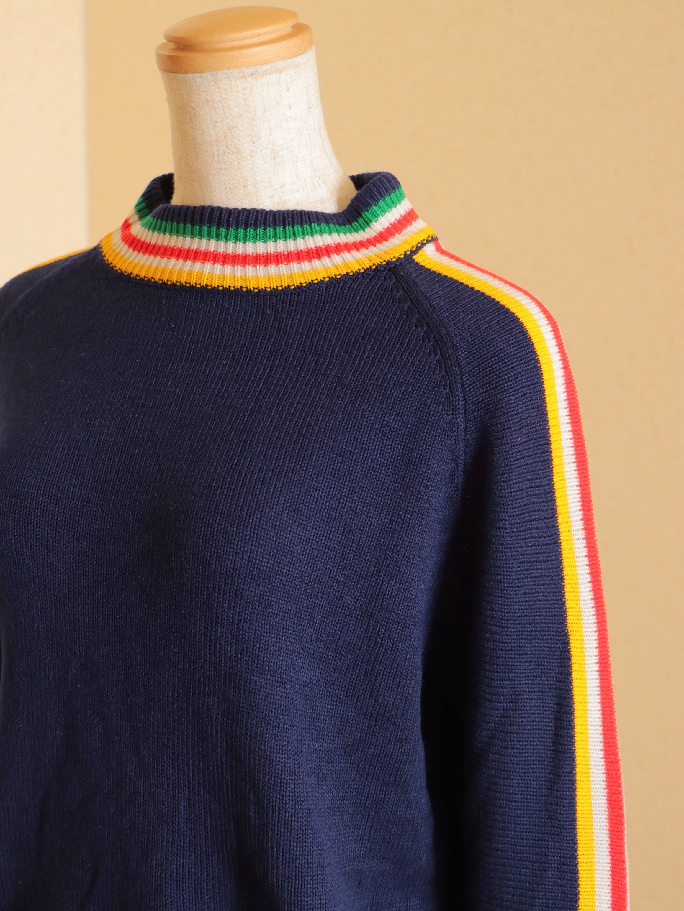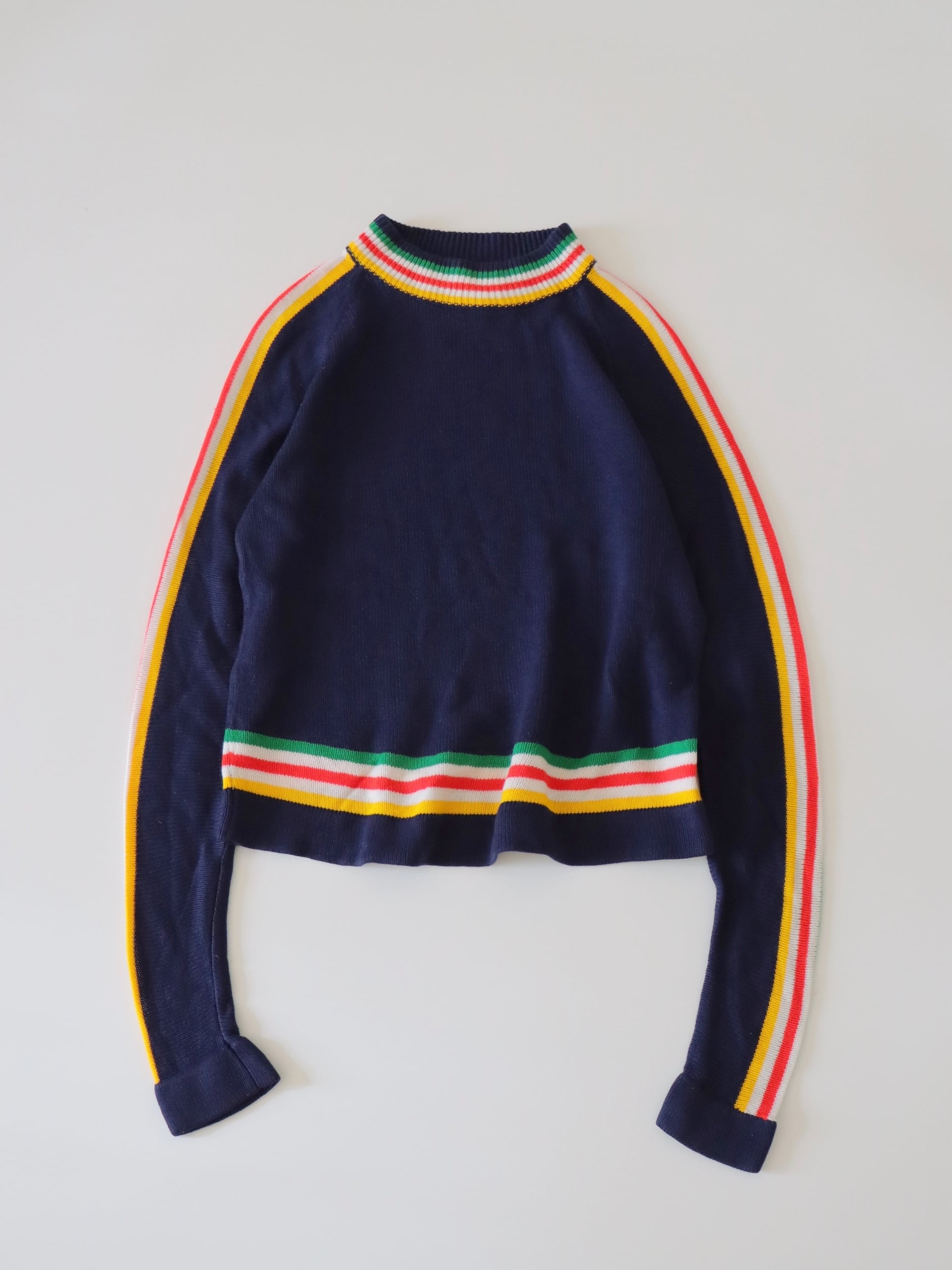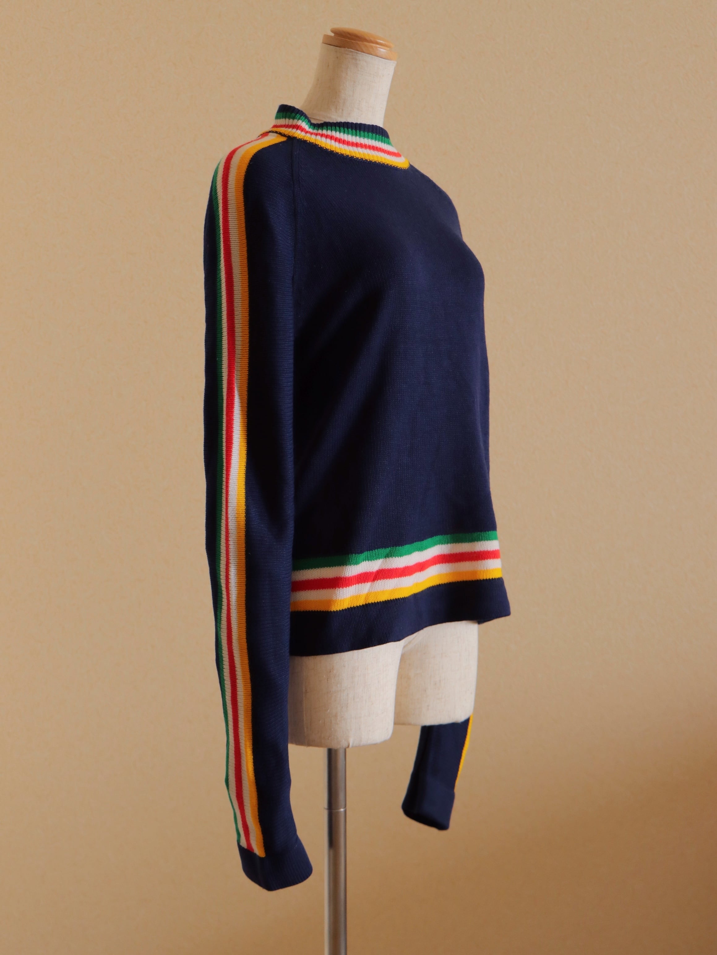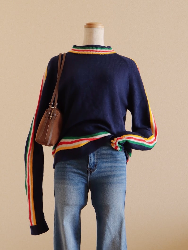 ●80s color striped design long sleeve knitted sweater