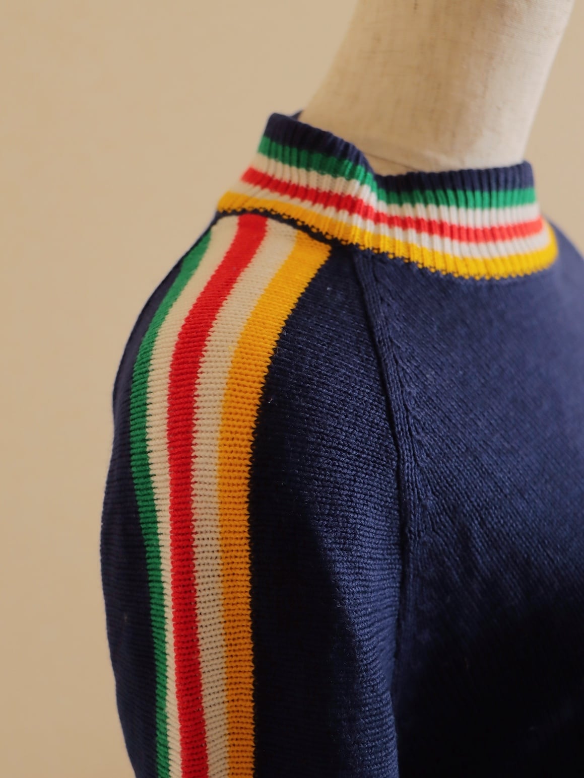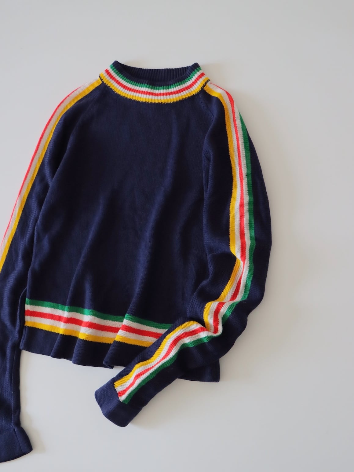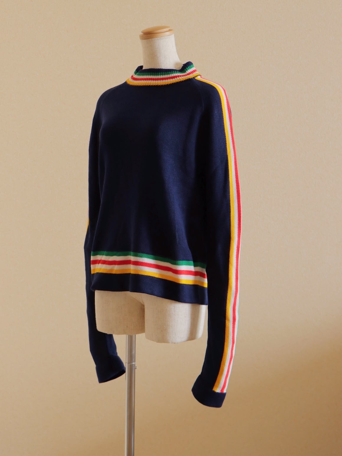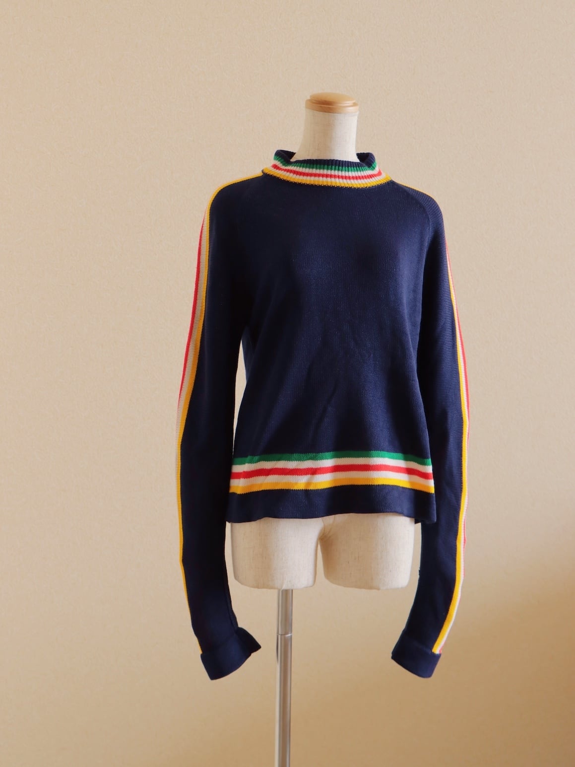 ●80s color striped design long sleeve knitted sweater