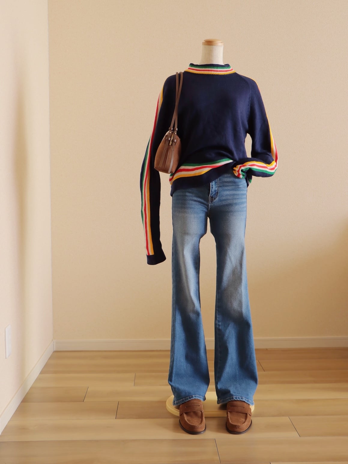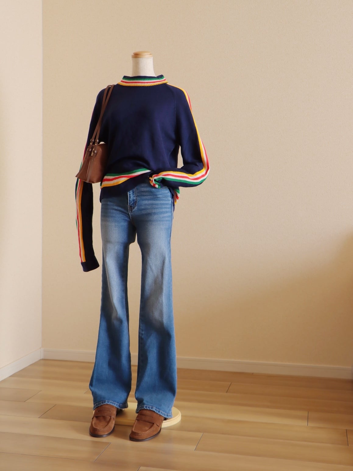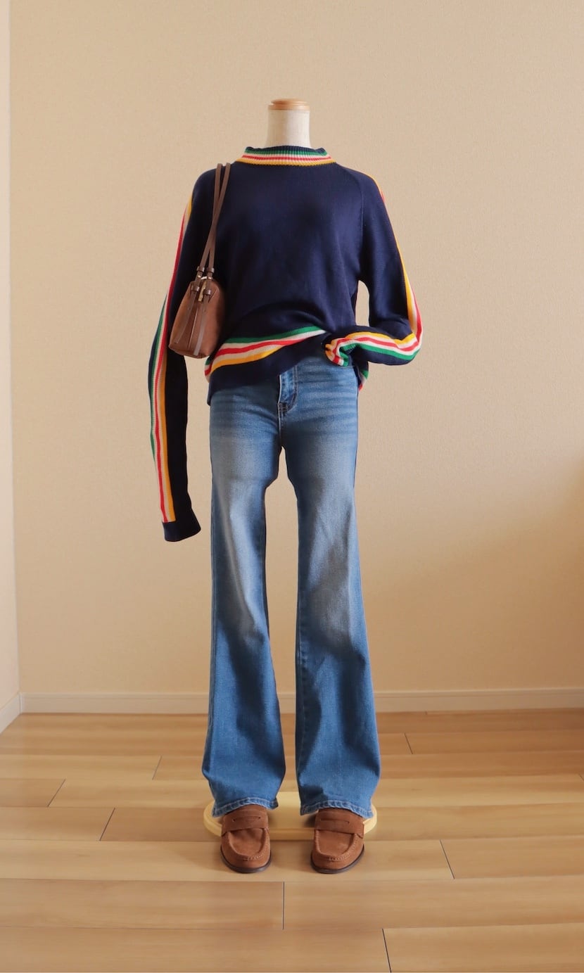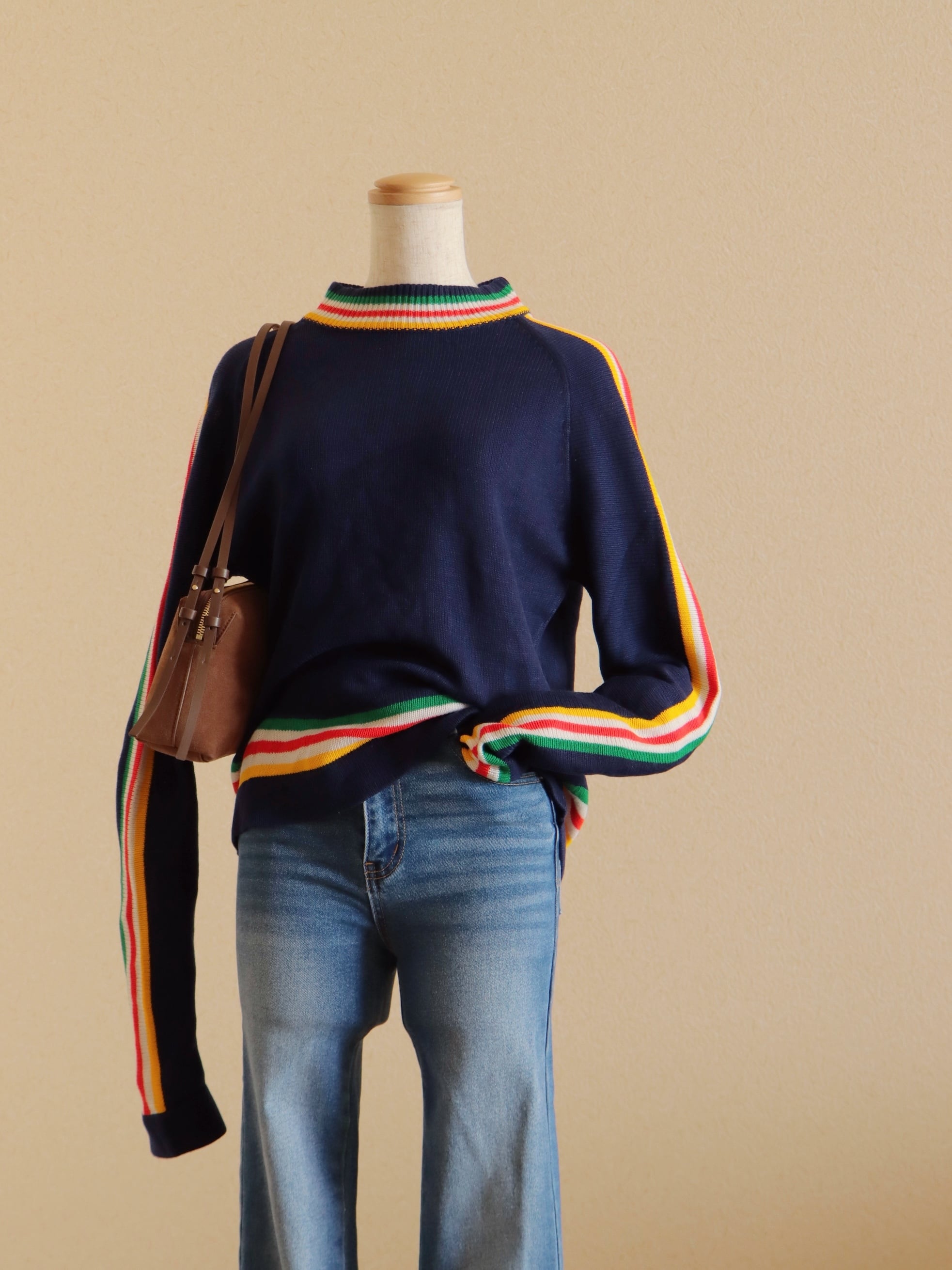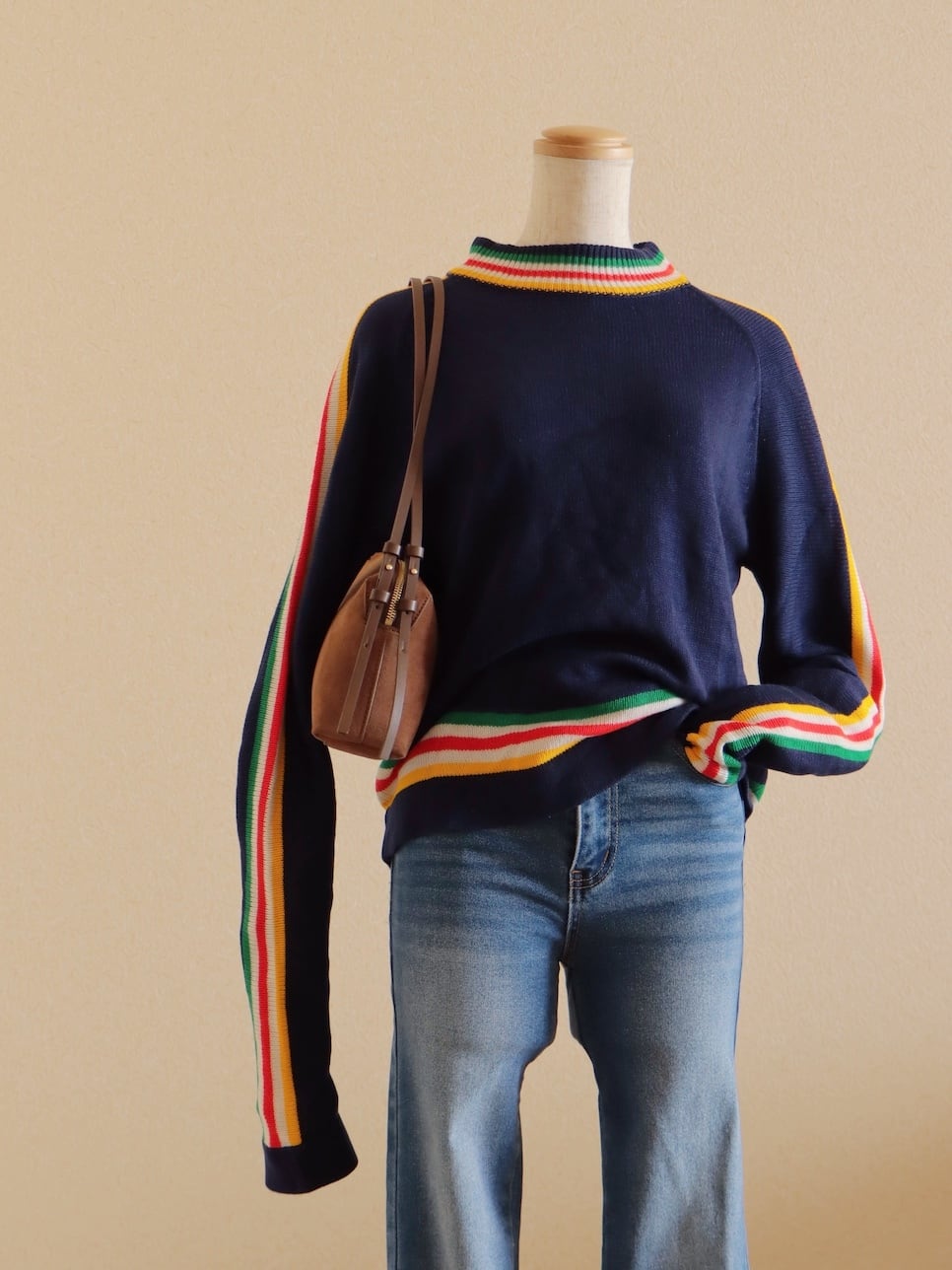 ●80s color striped design long sleeve knitted sweater
