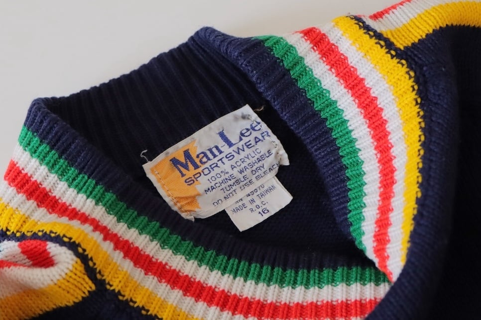 ●80s color striped design long sleeve knitted sweater.