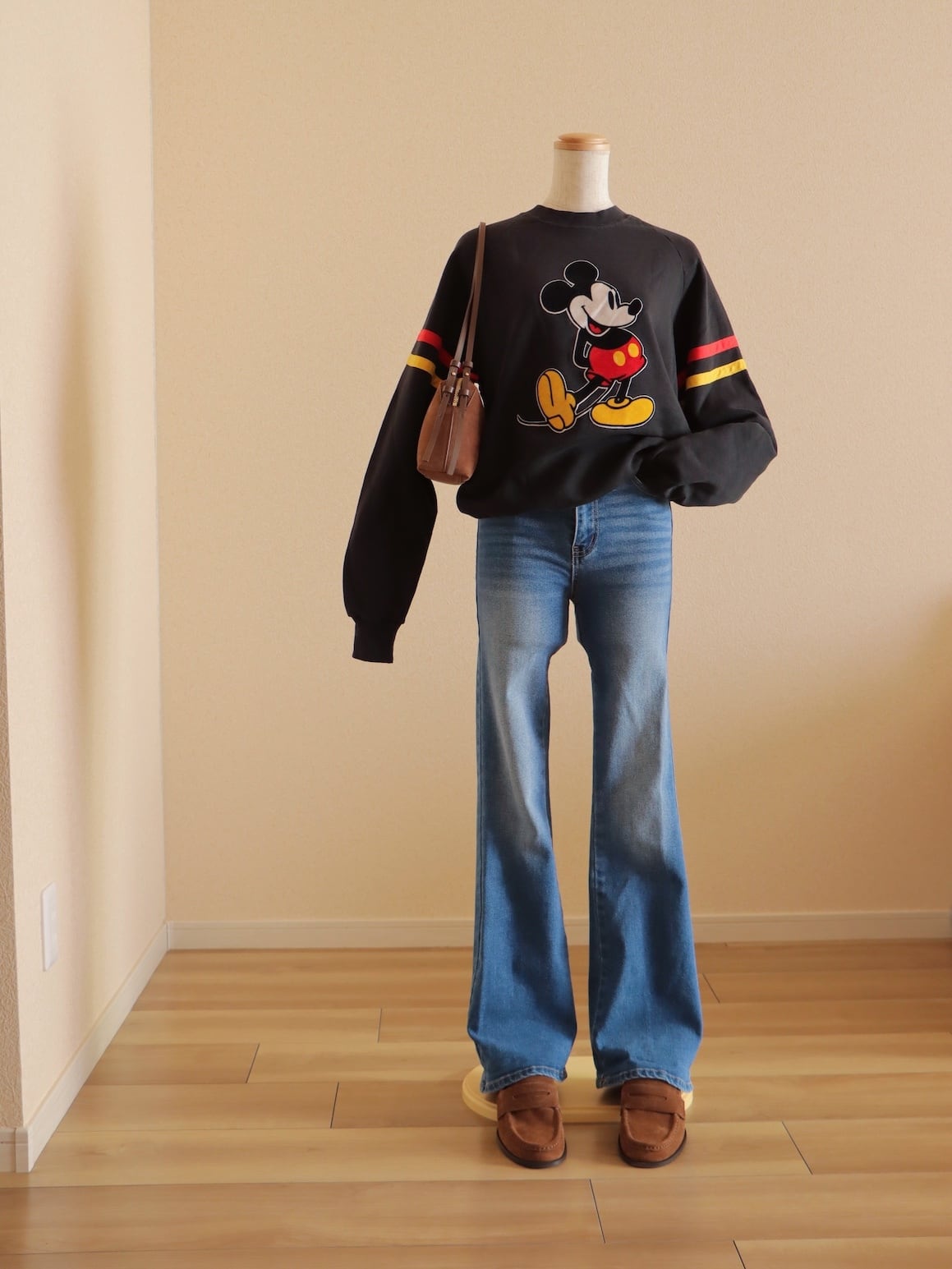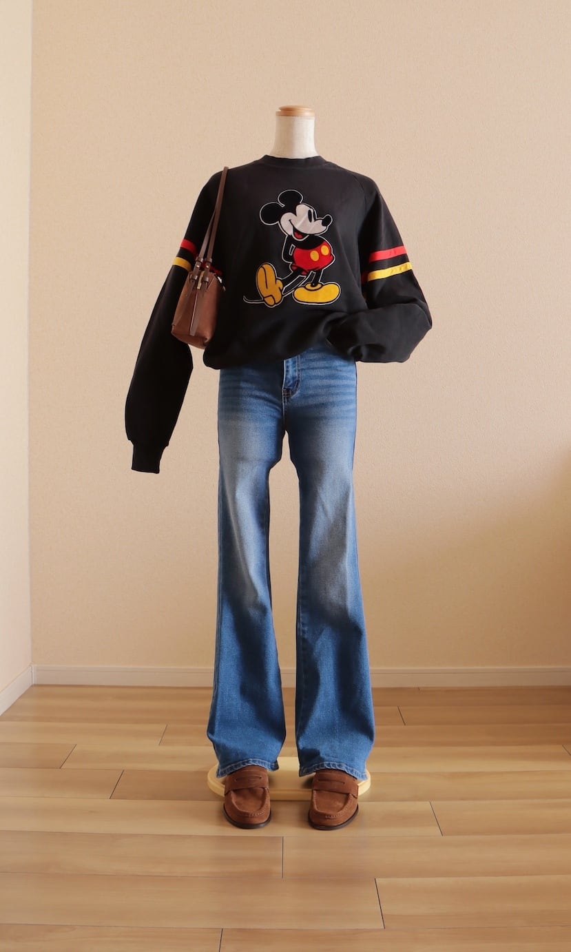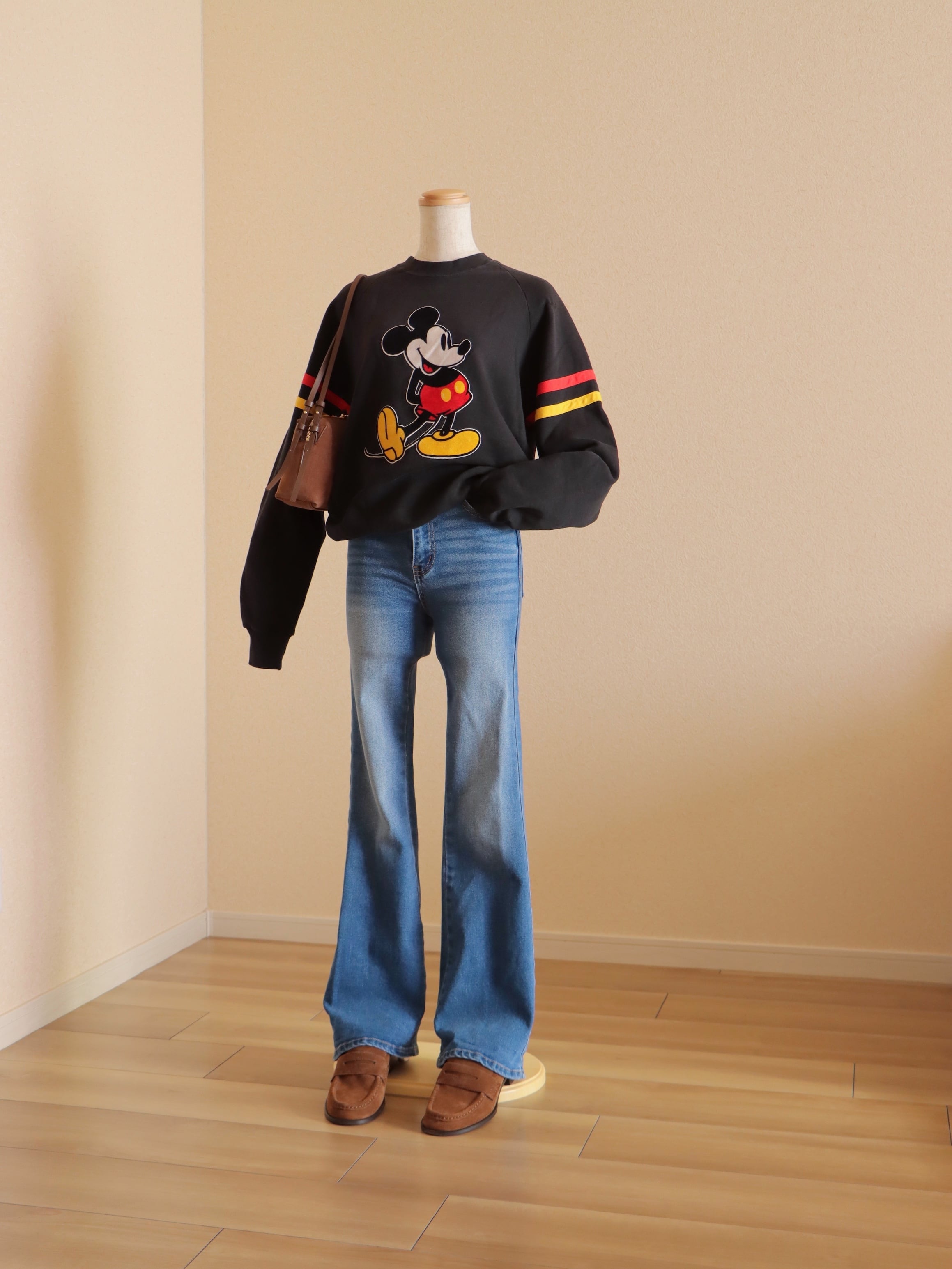 ミッキーの配色と合わせたお袖のラインテープ使いもアクセントになっている、スタイリングの主役になってくれるお勧めの1着です。