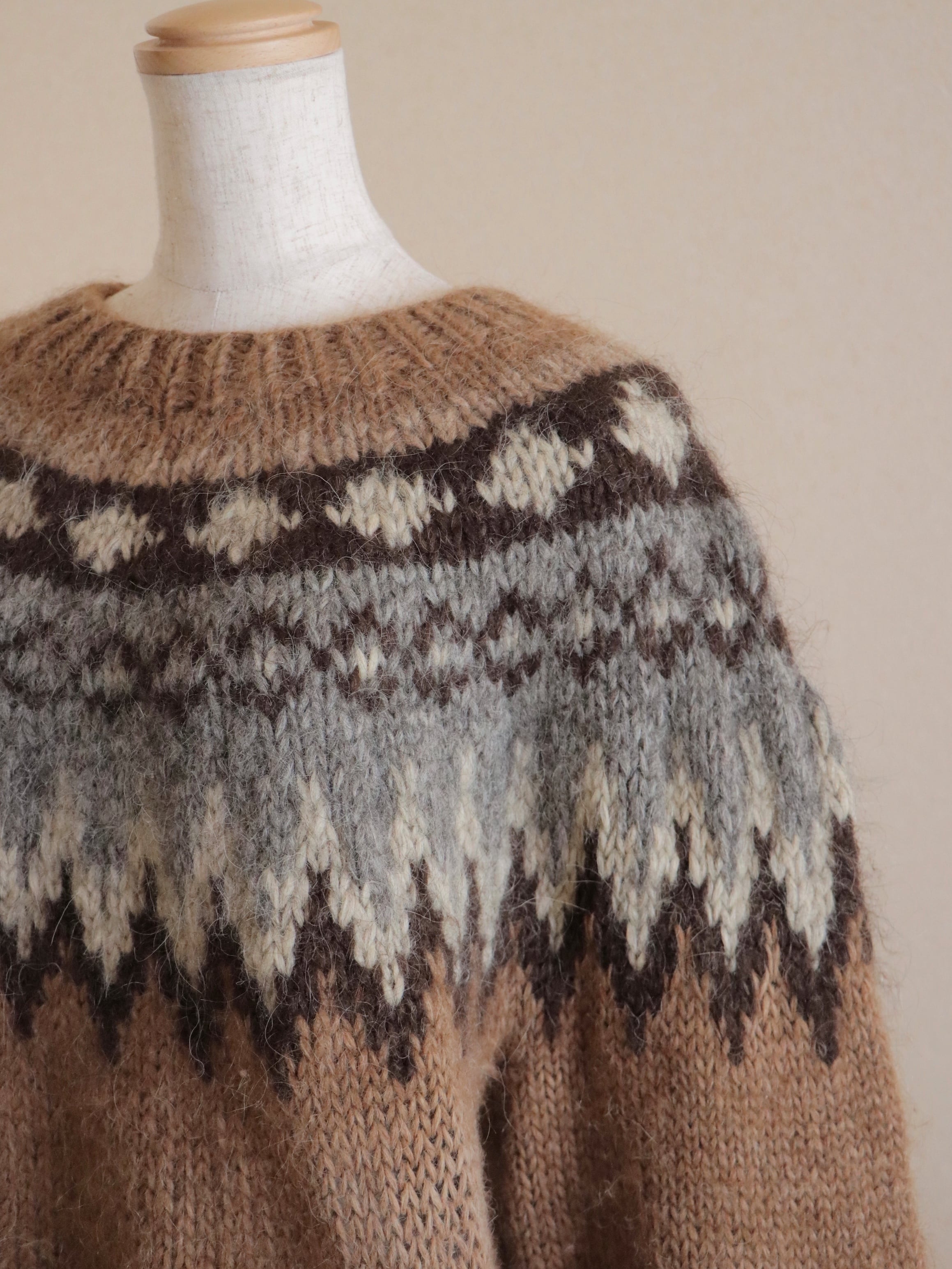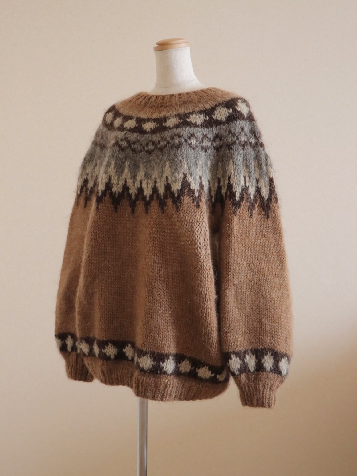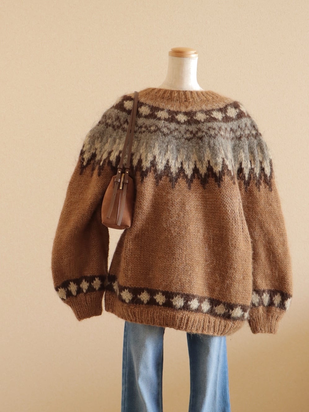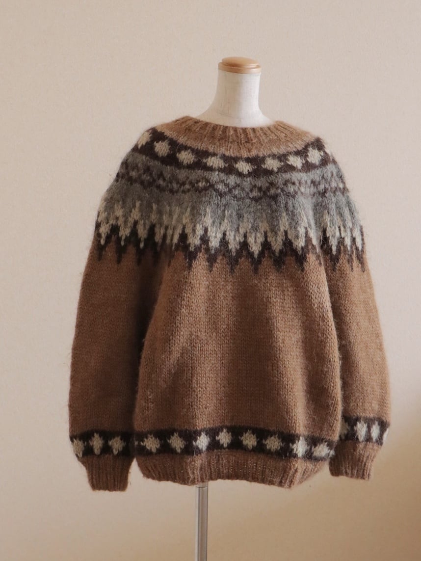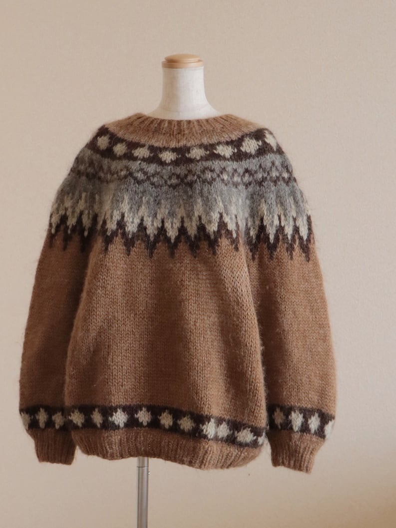 ●Hand made in ICELAND pure new wool brown color nordic sweater