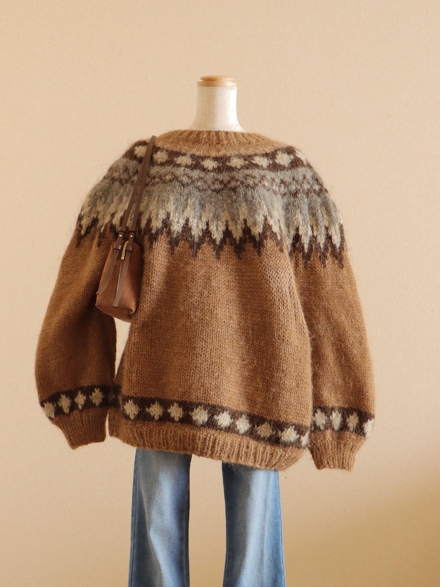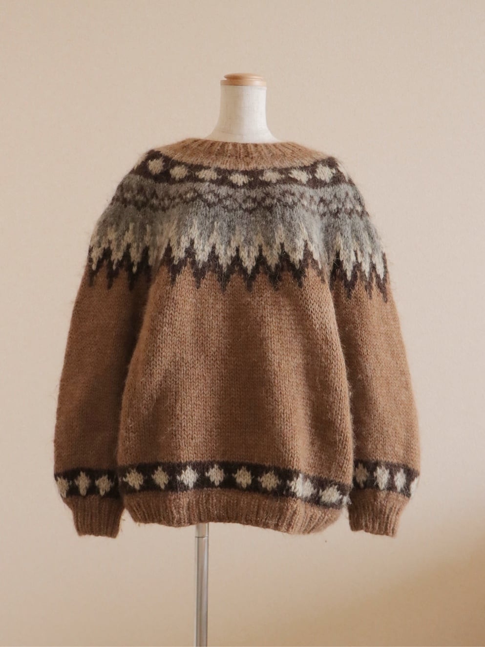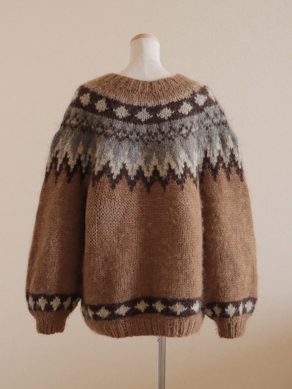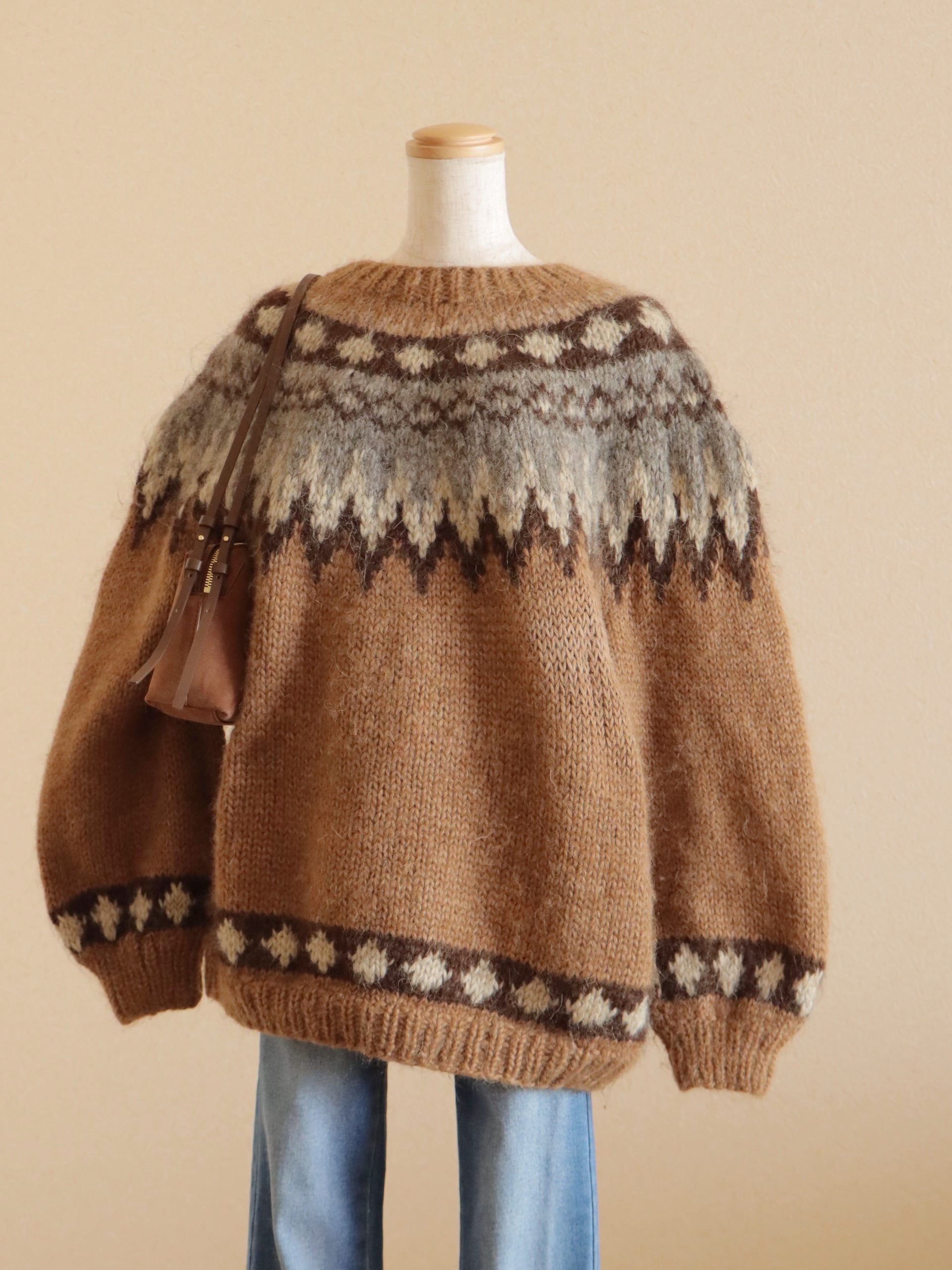 ●Hand made in ICELAND pure new wool brown color nordic sweater