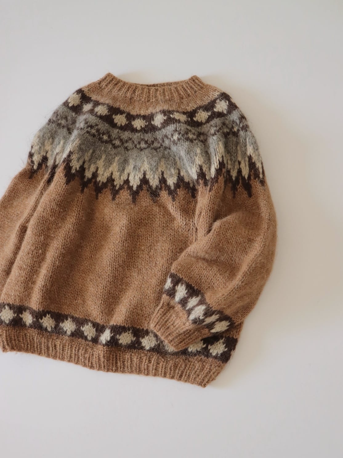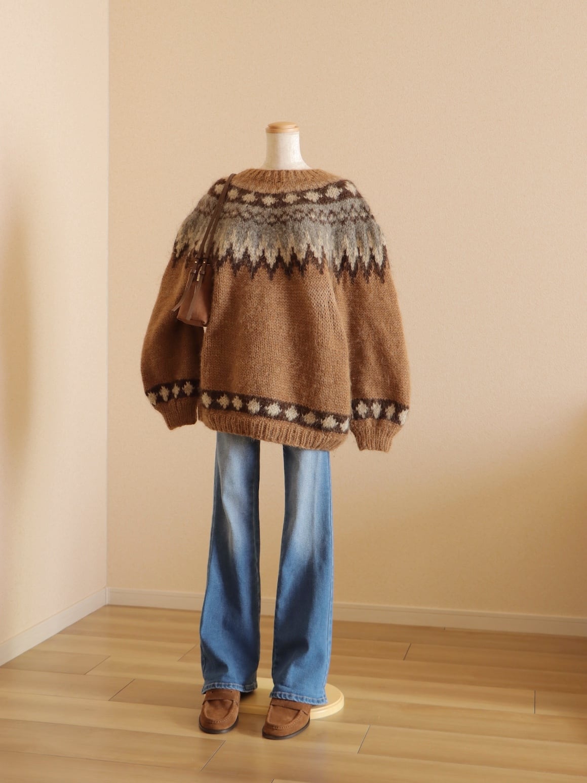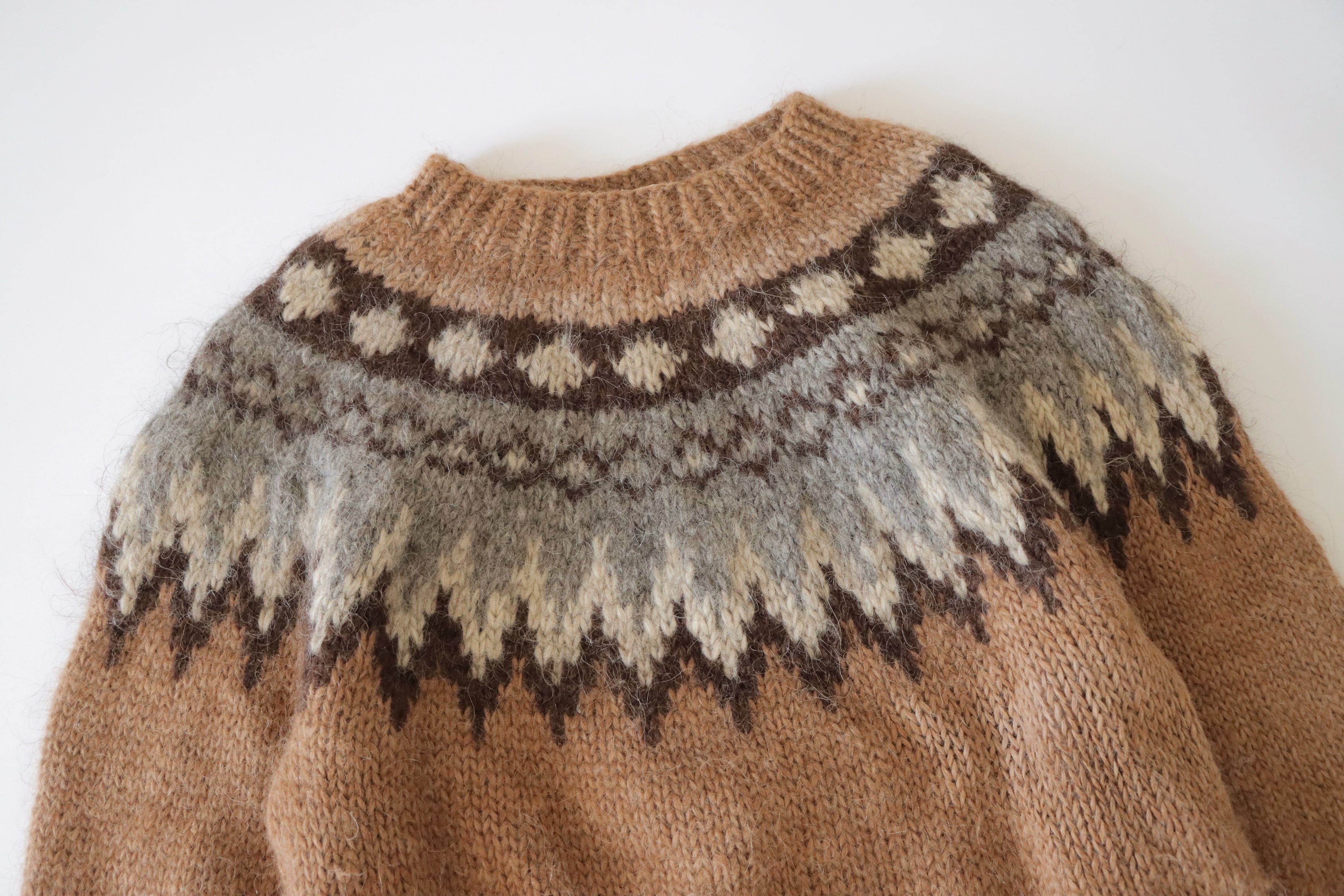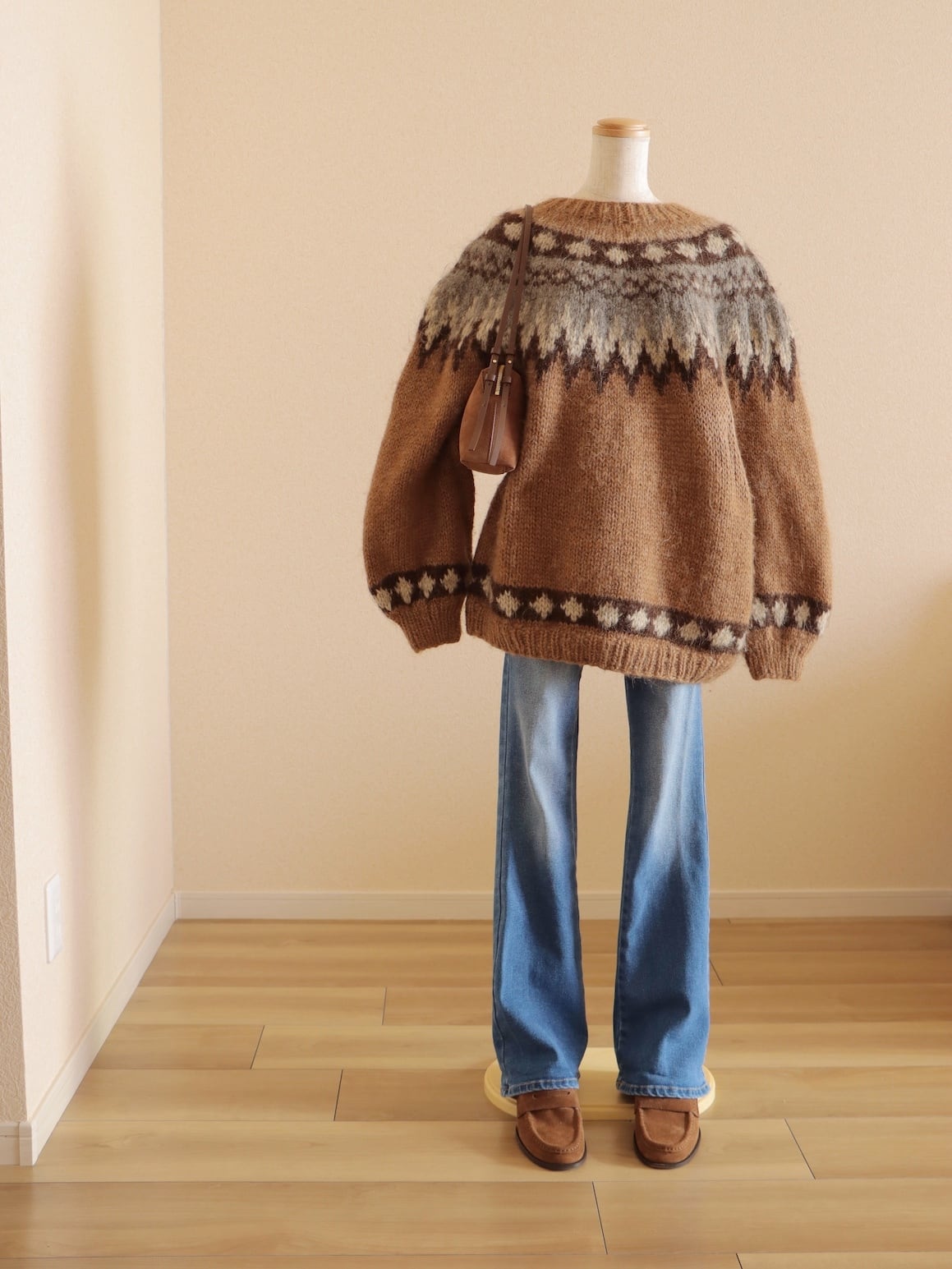 ●Hand made in ICELAND pure new wool brown color nordic sweater