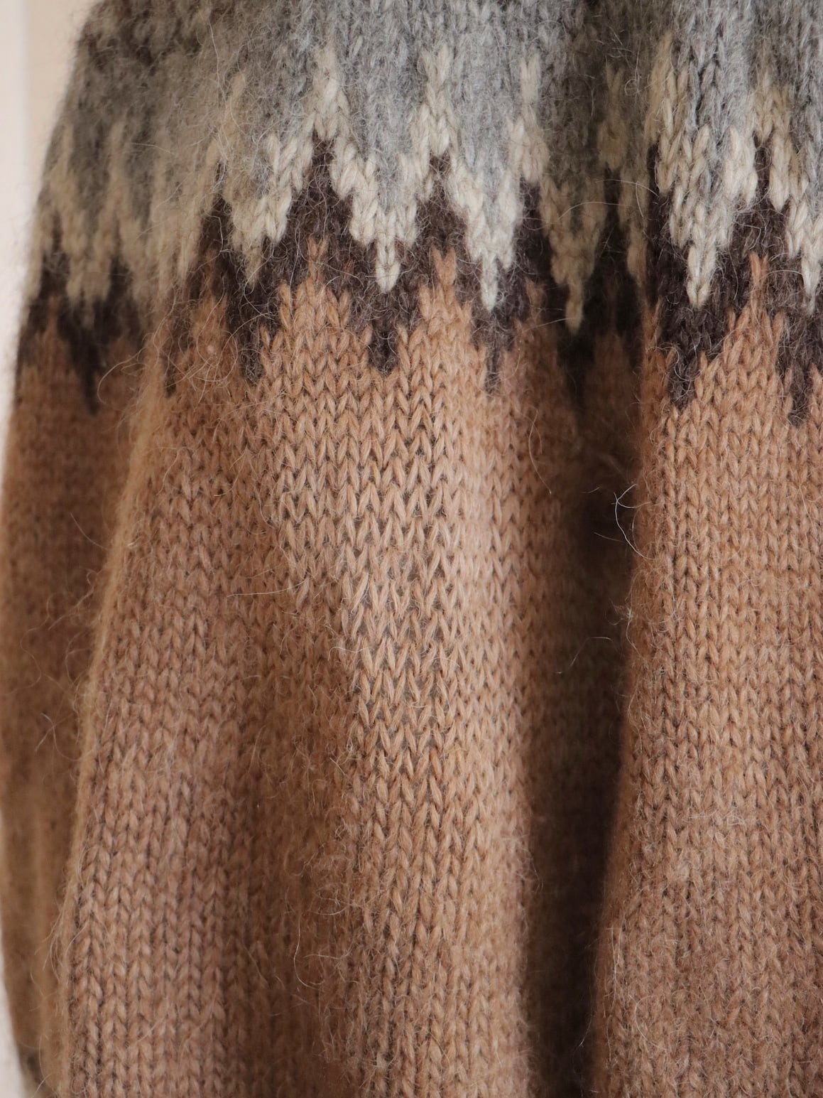 ●Hand made in ICELAND pure new wool brown color nordic sweater.
