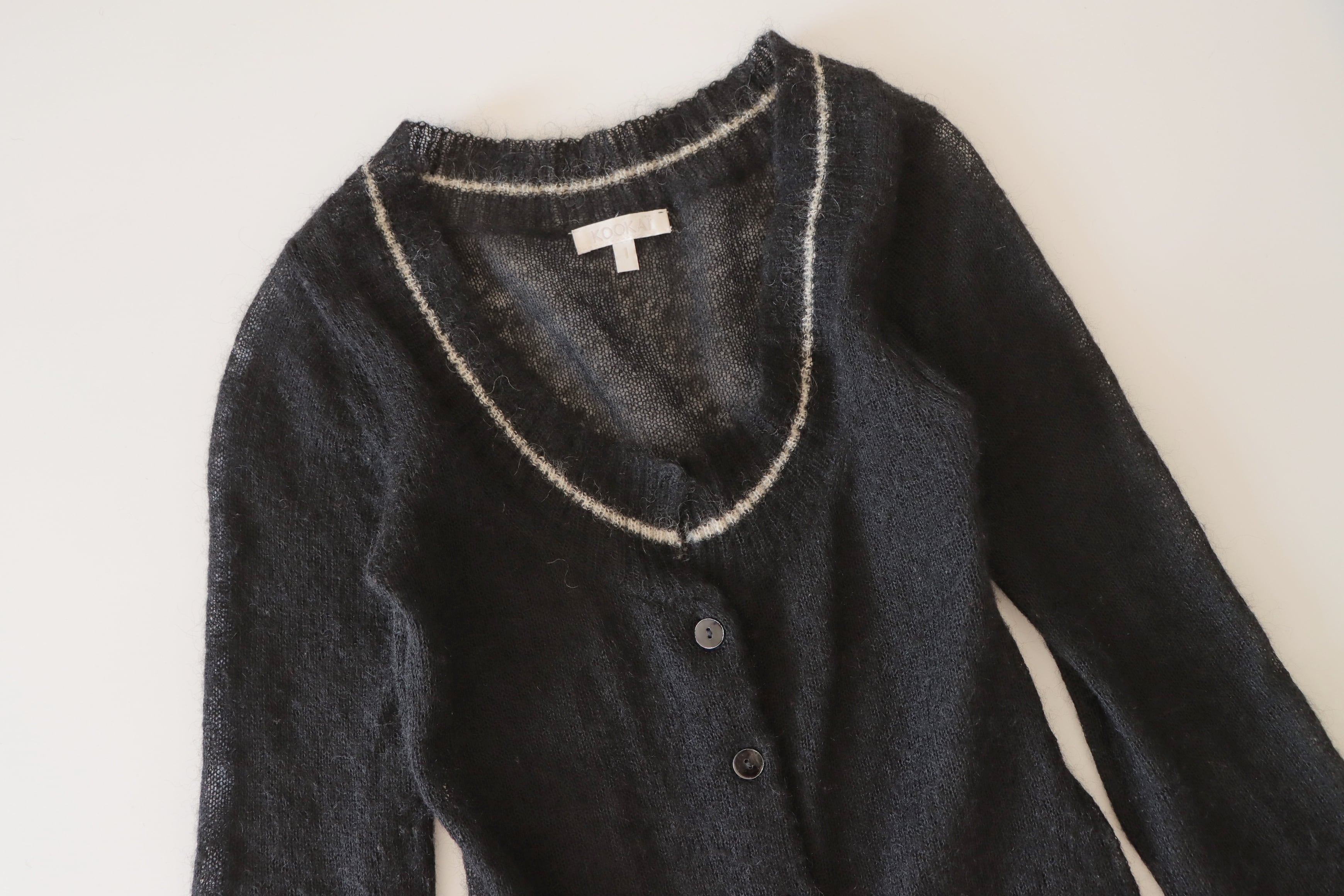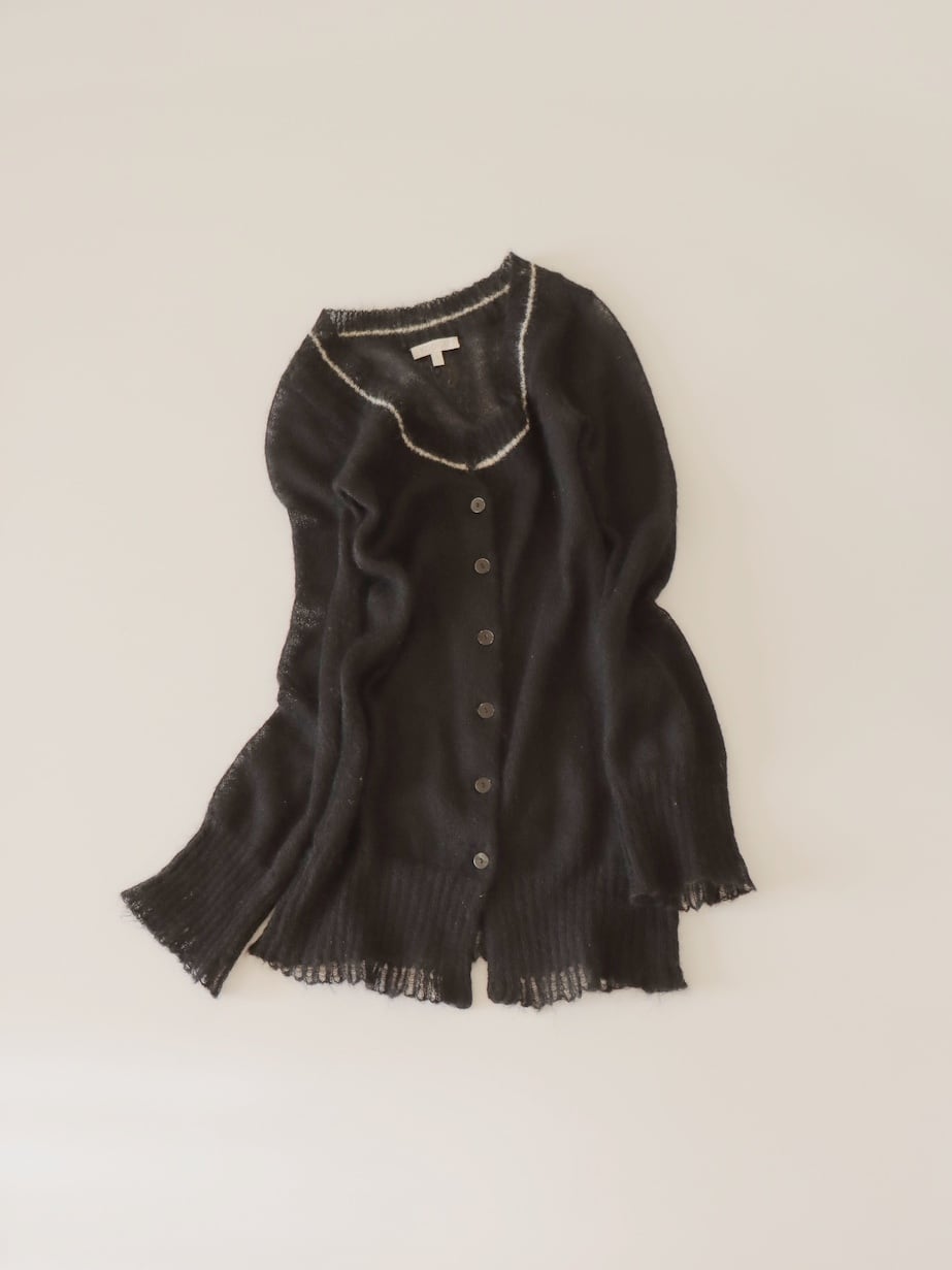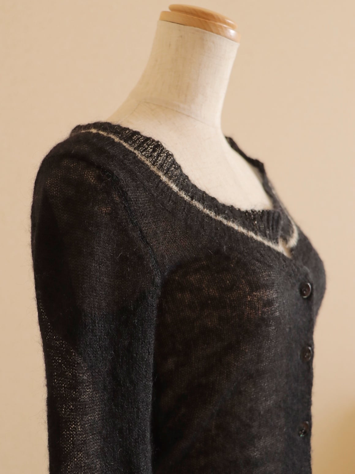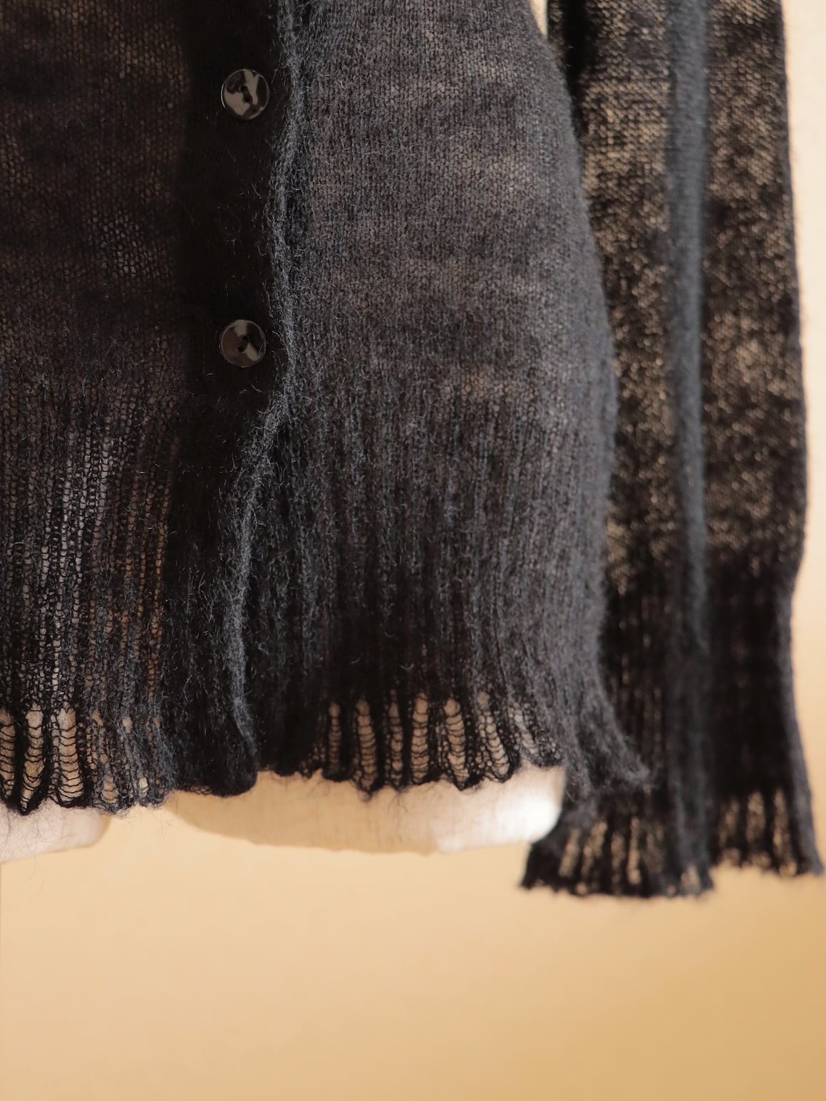 ●KOOKAI sheer mohair black color design knitted cardigan.