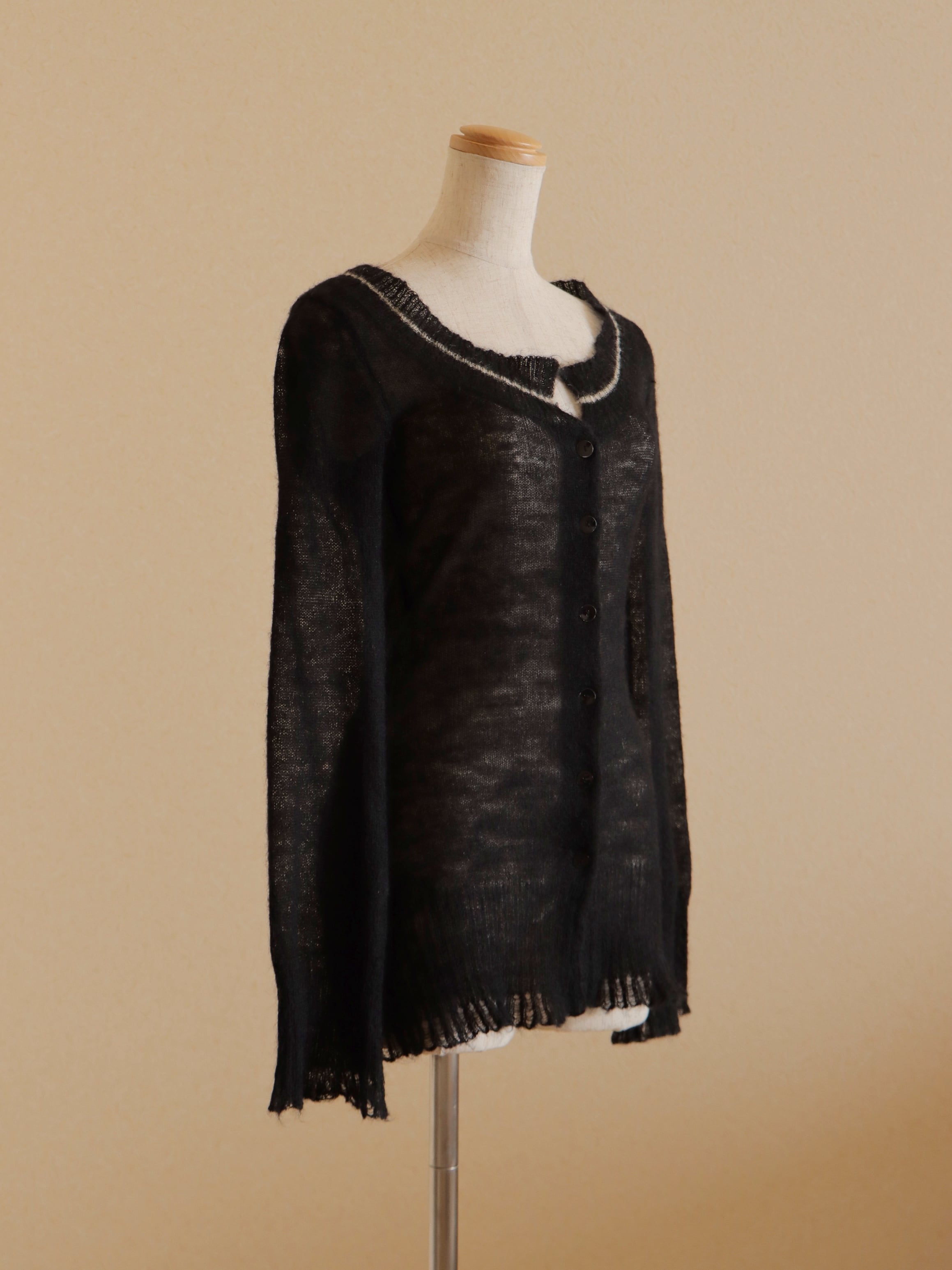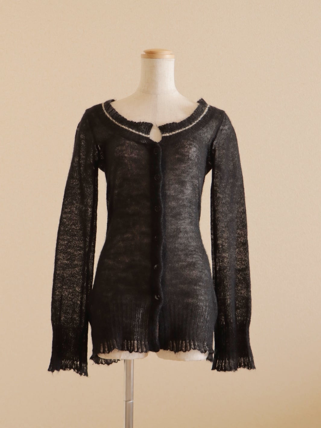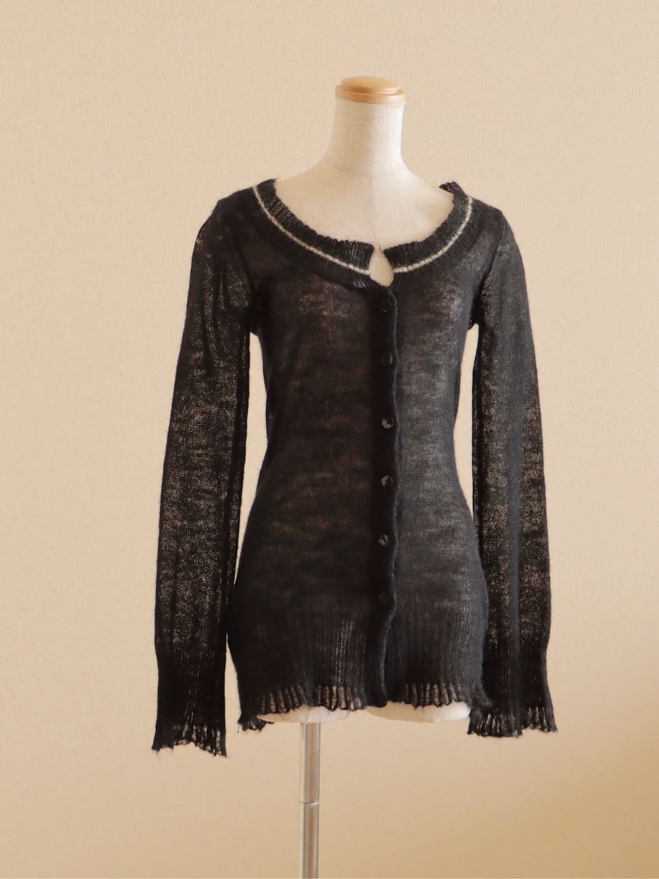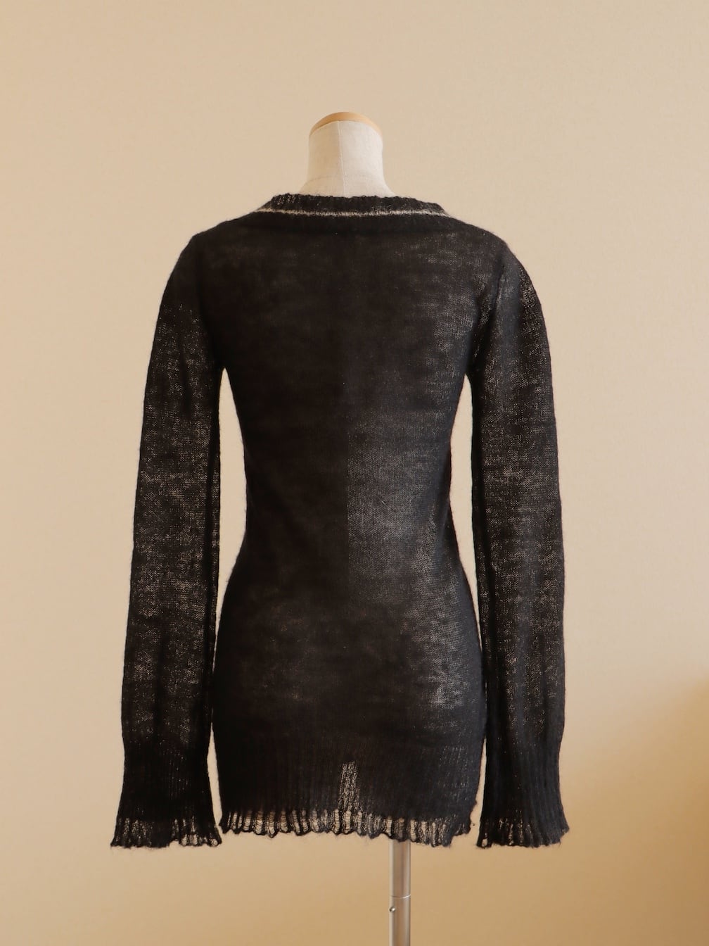 ●KOOKAI sheer mohair black color design knitted cardigan.