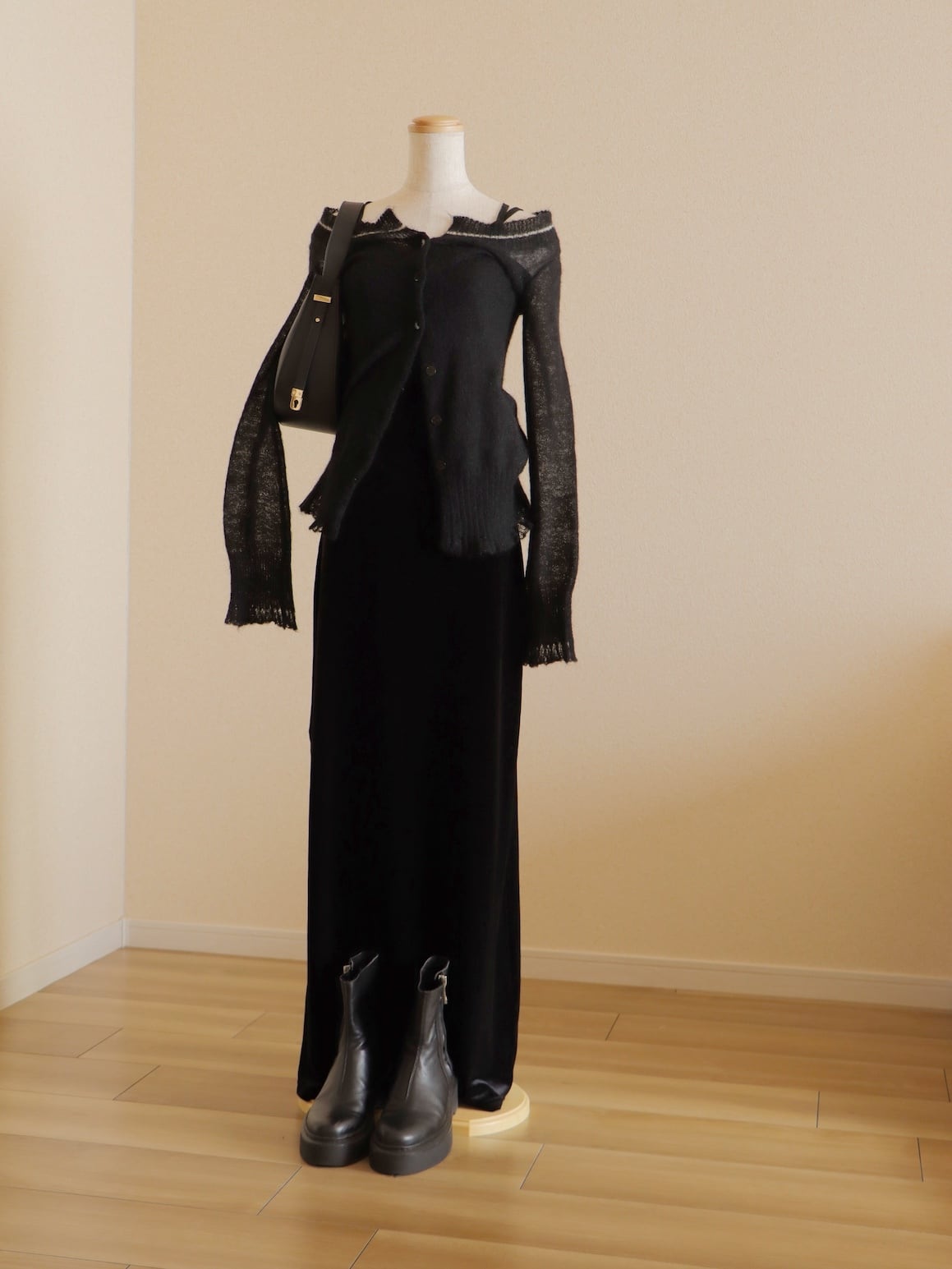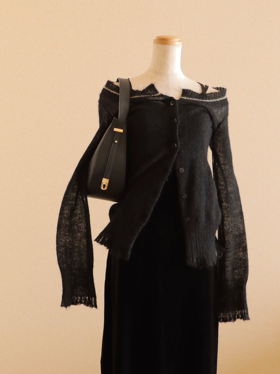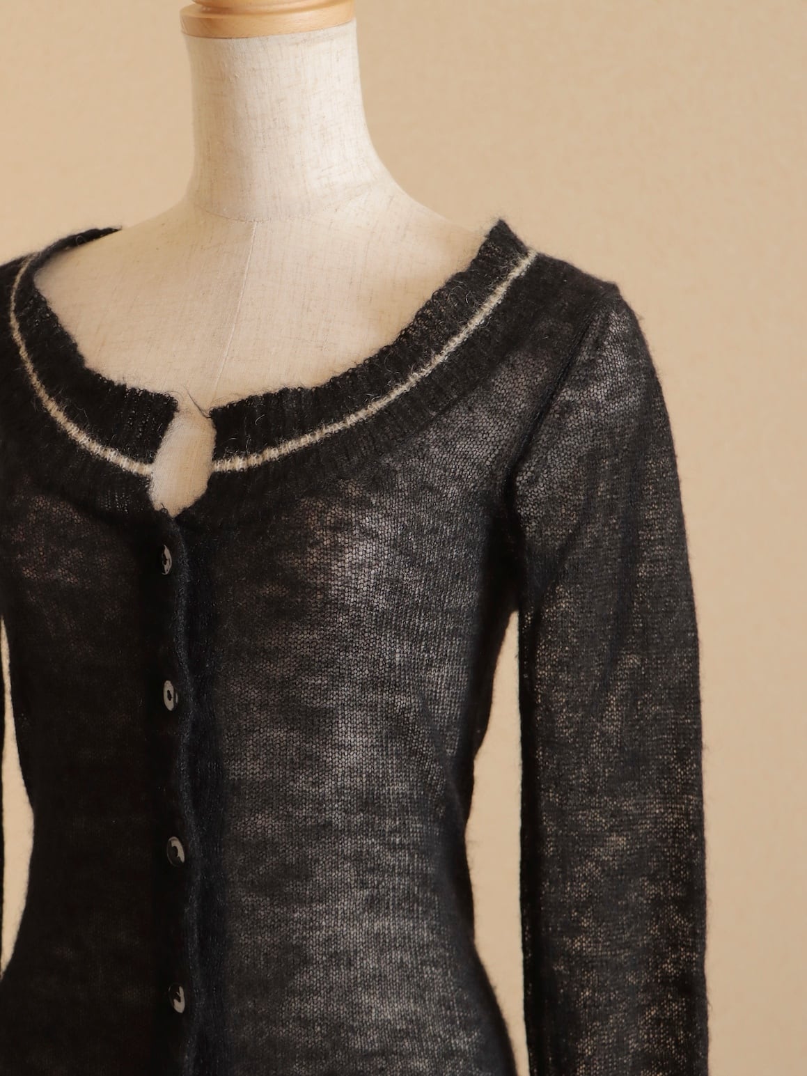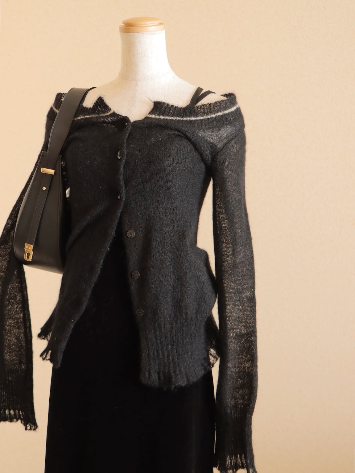 ●KOOKAI sheer mohair black color design knitted cardigan.