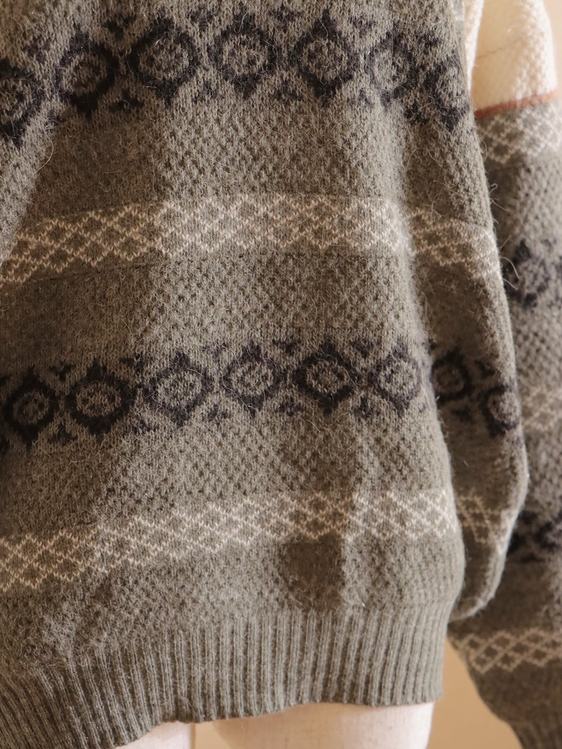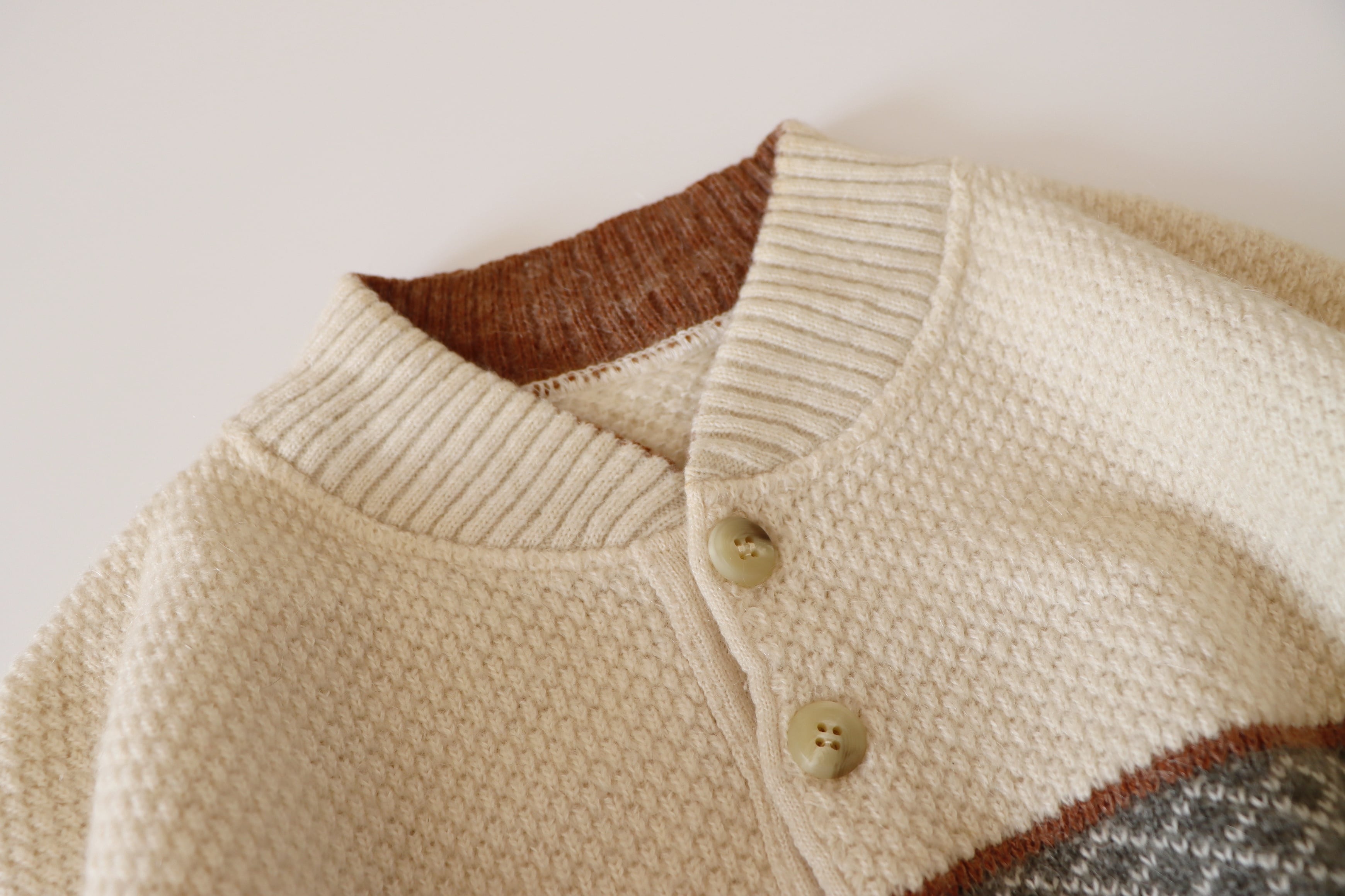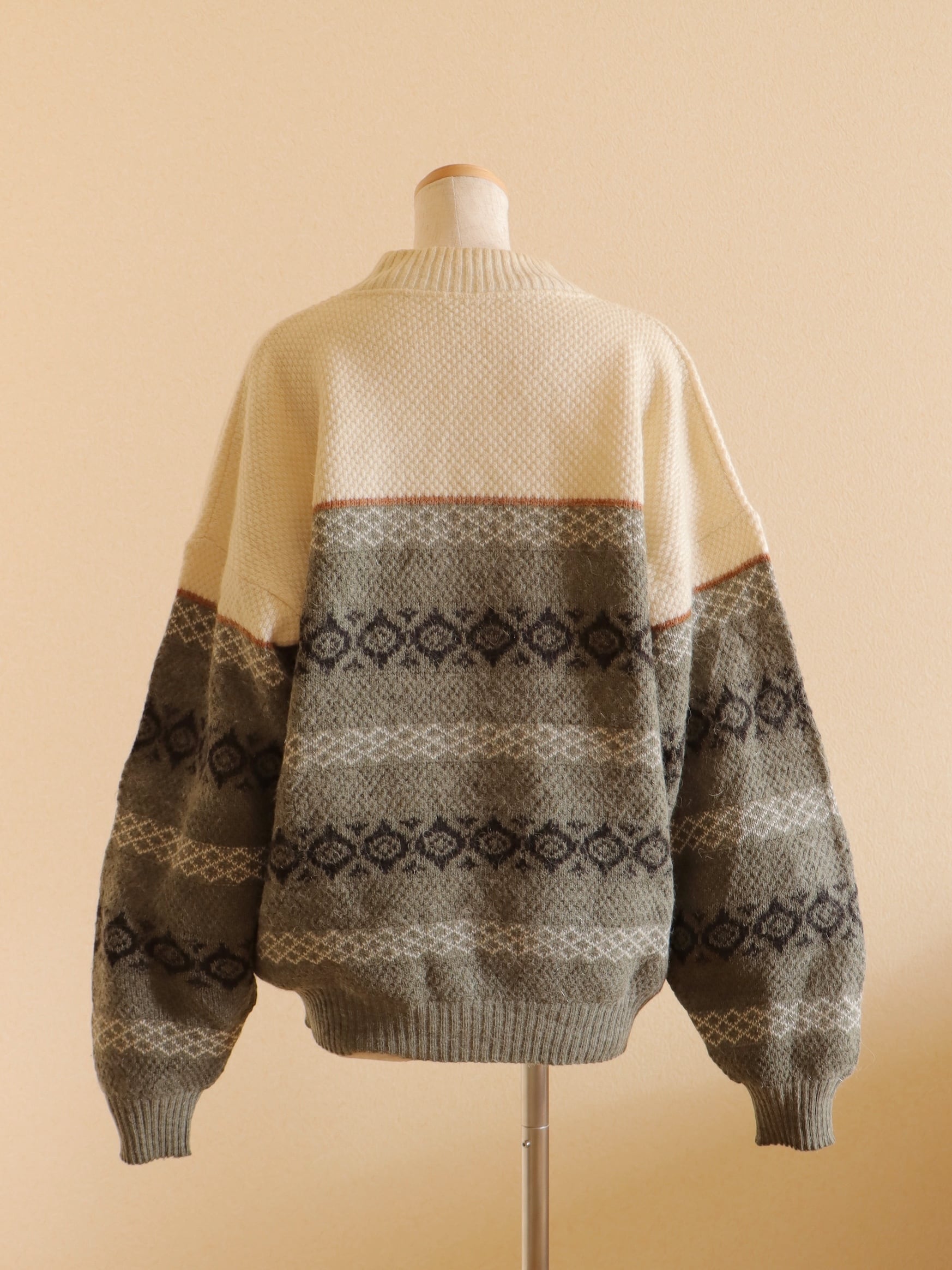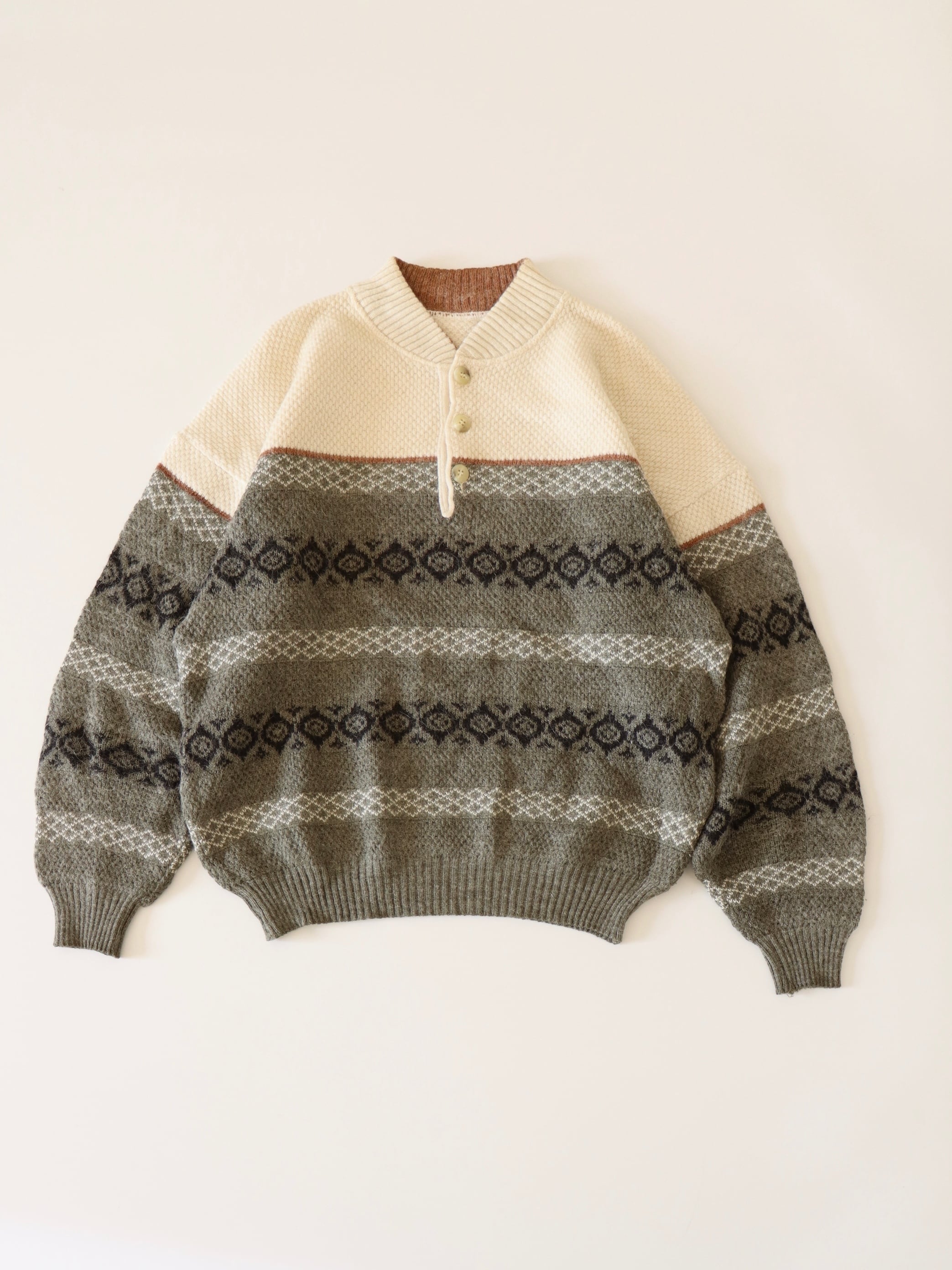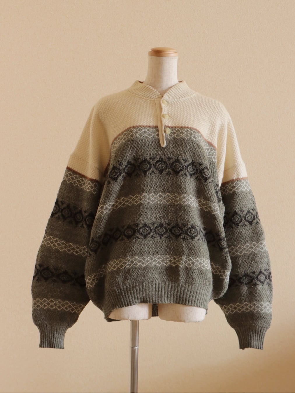 ●fair isle design half button wool sweater.