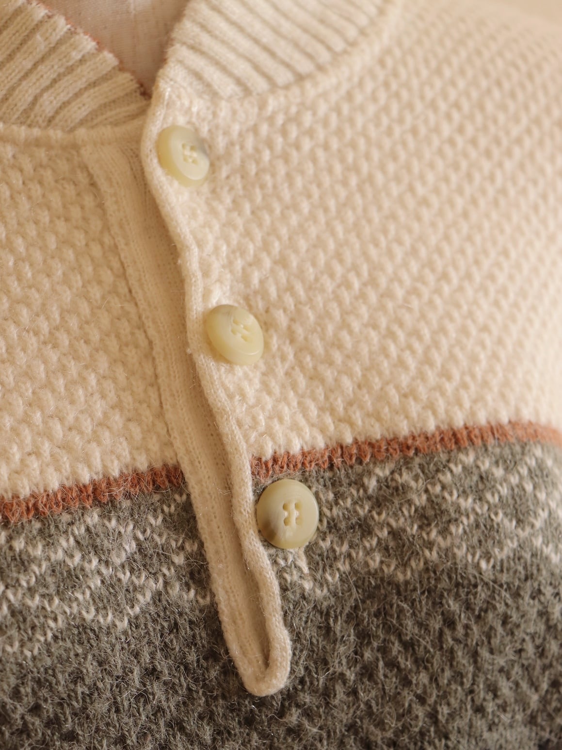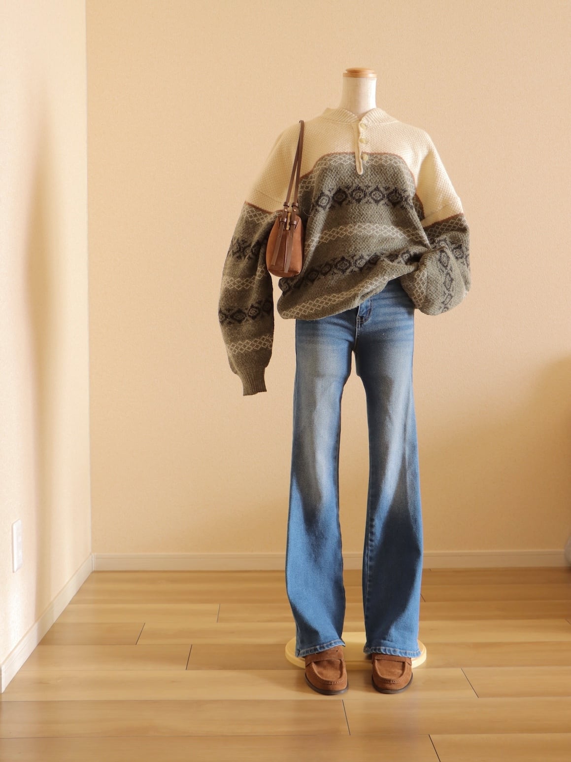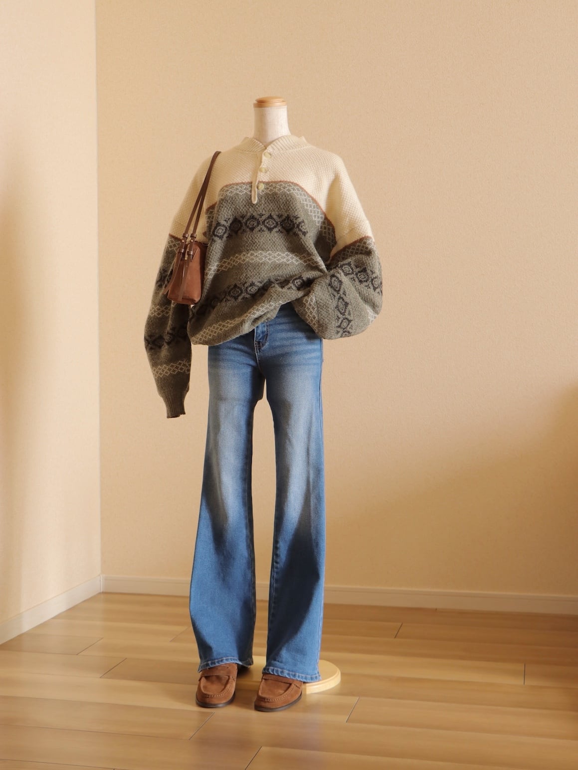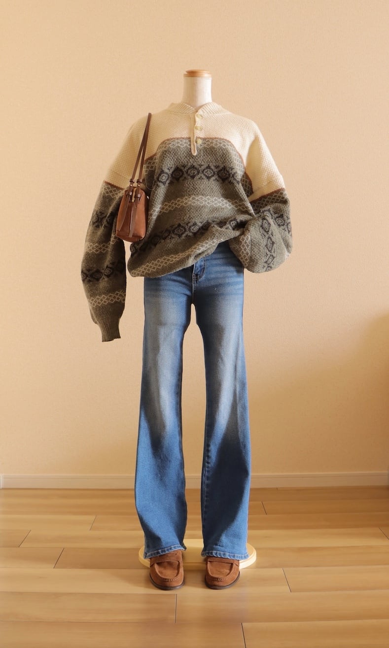 ●fair isle design half button wool sweater