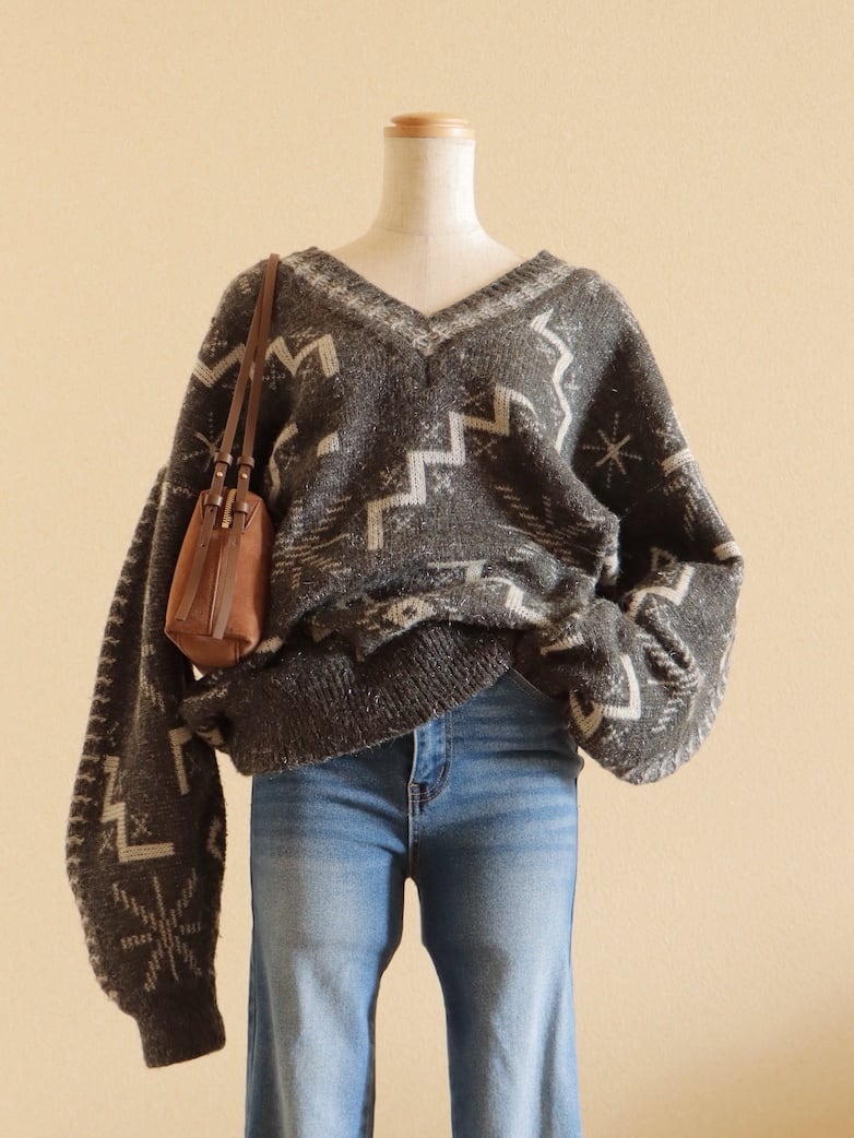 ●made in ITALY wool geometric jacquard design sweater