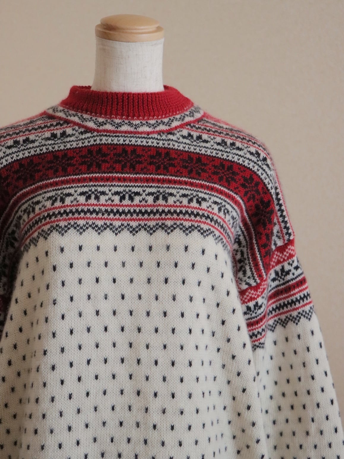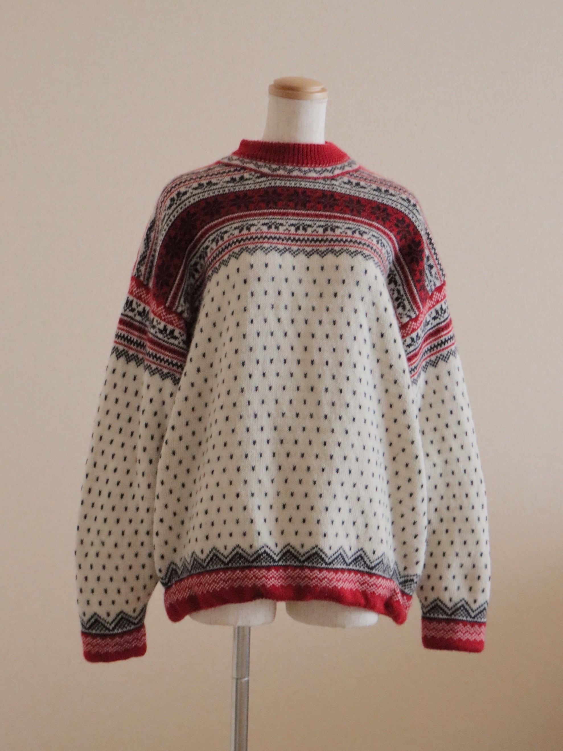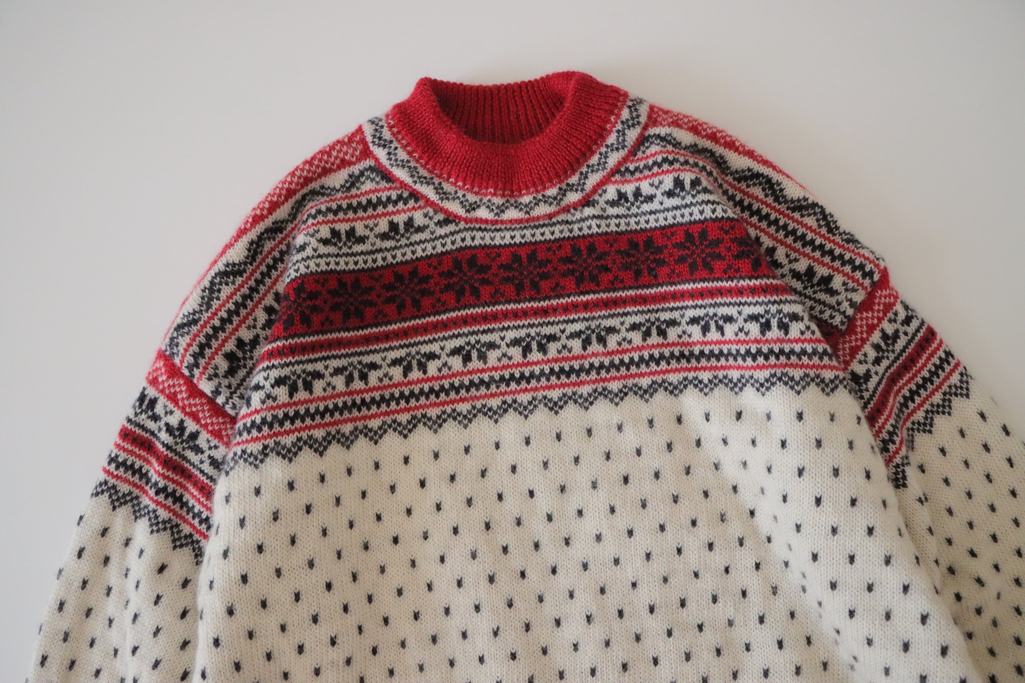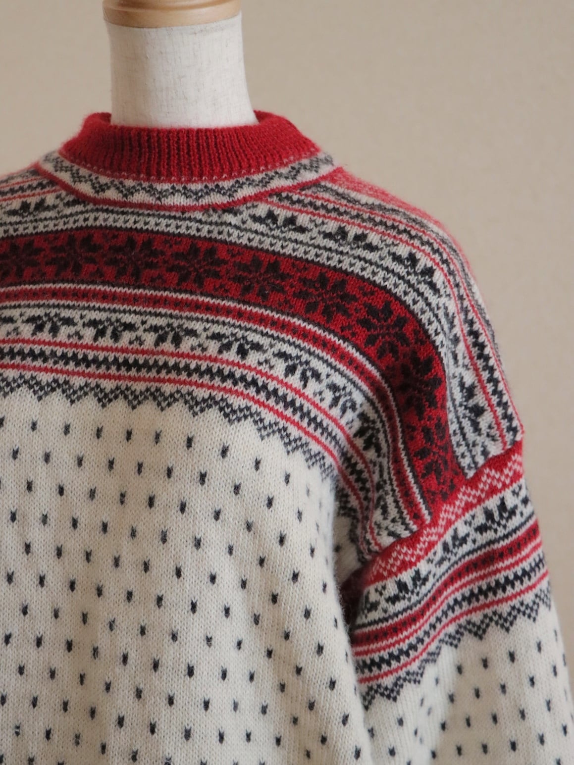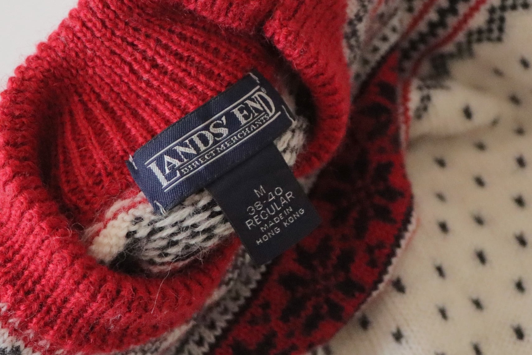 ●LAND'S END red color nordic design knitted wool 100% sweater