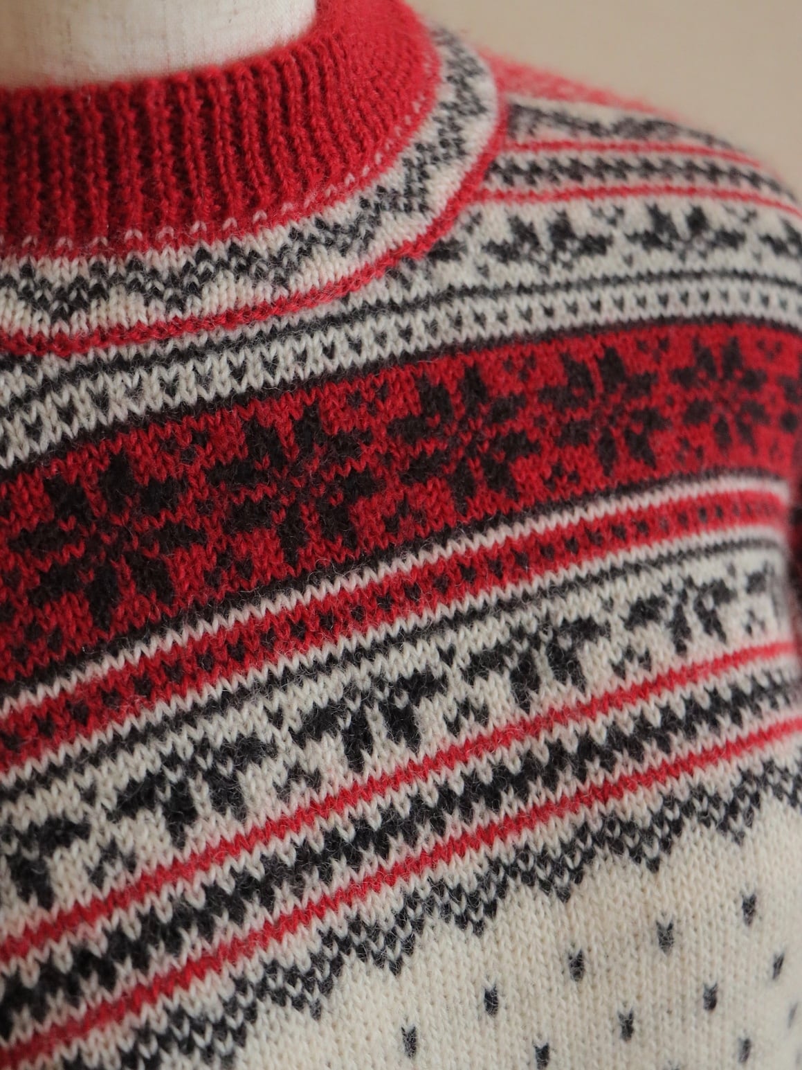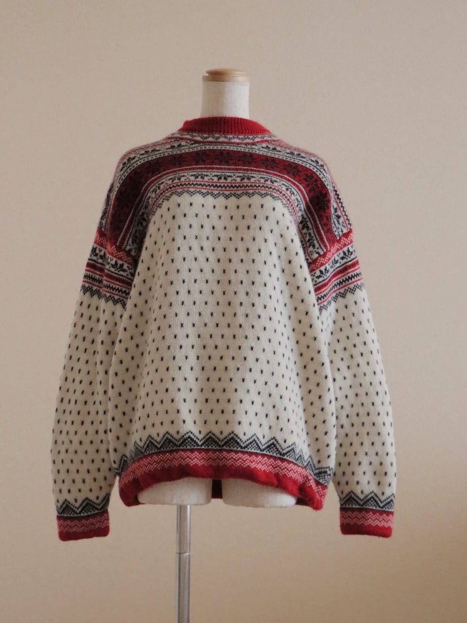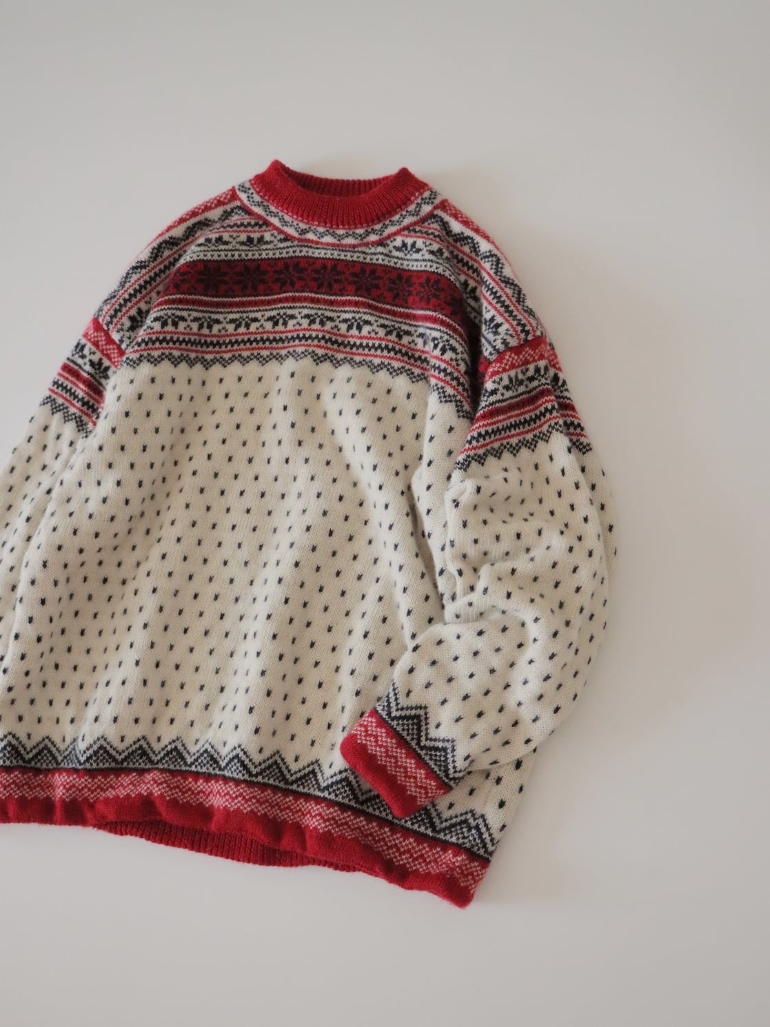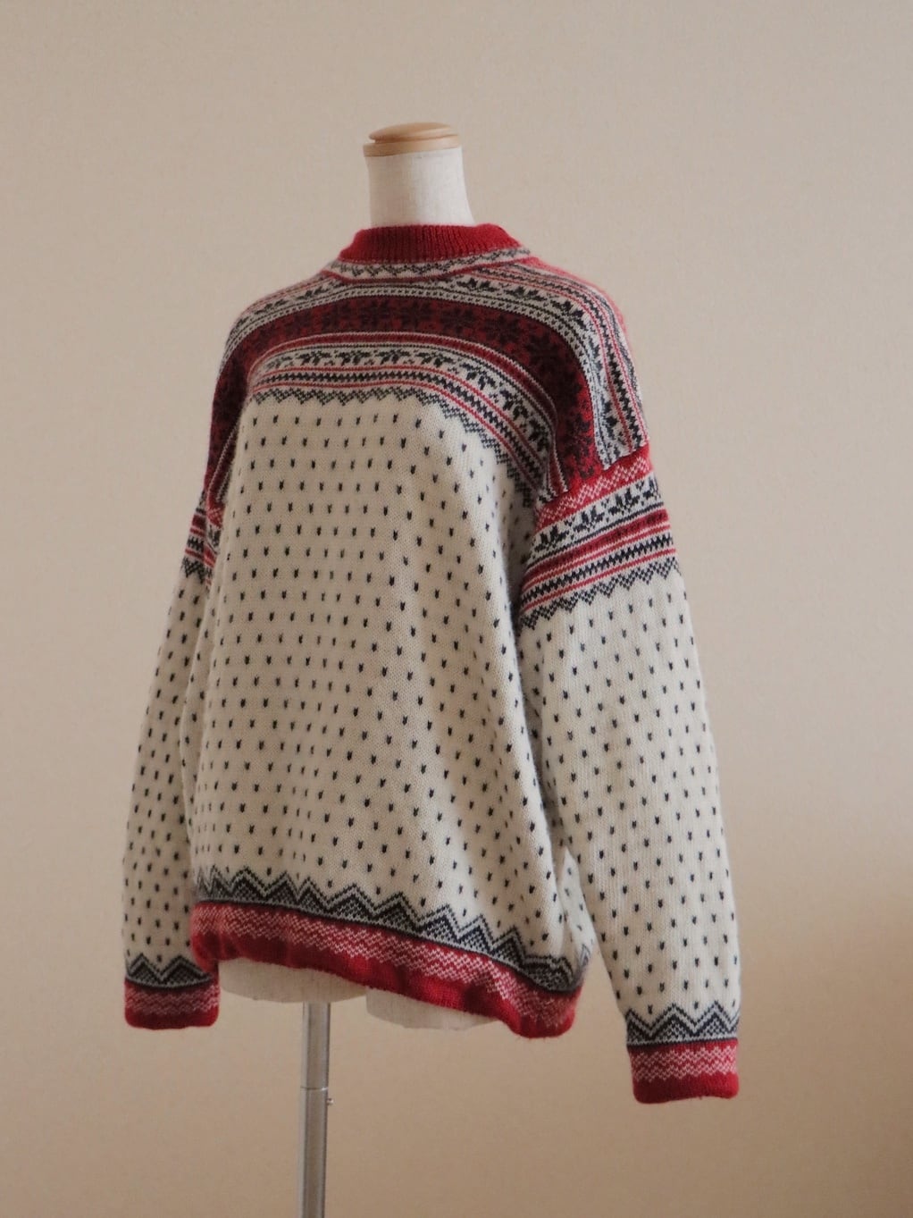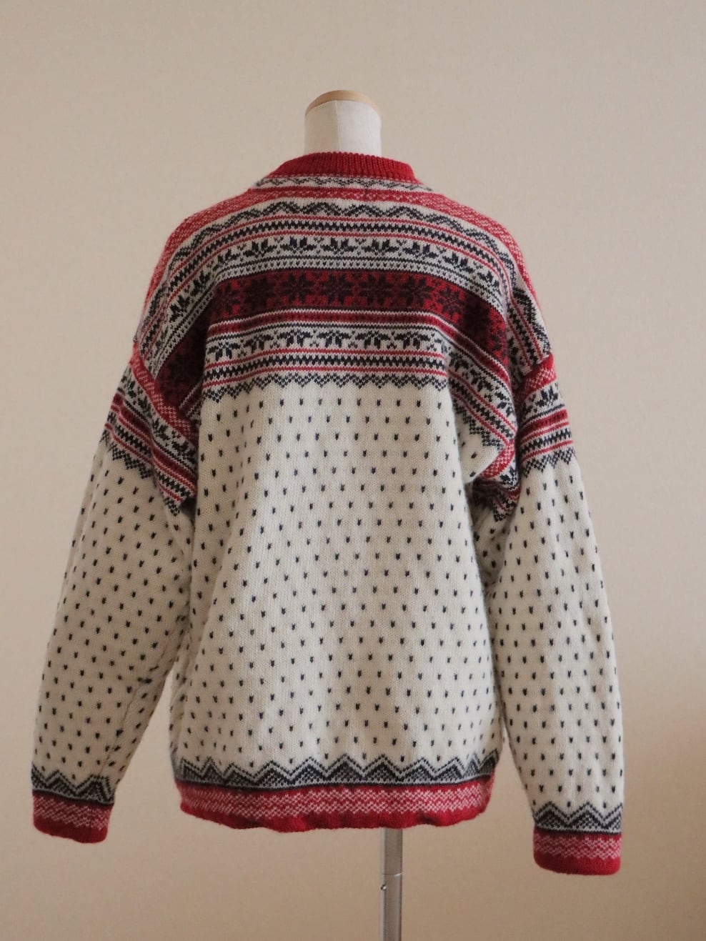 ●LAND'S END red color nordic design knitted wool 100% sweater