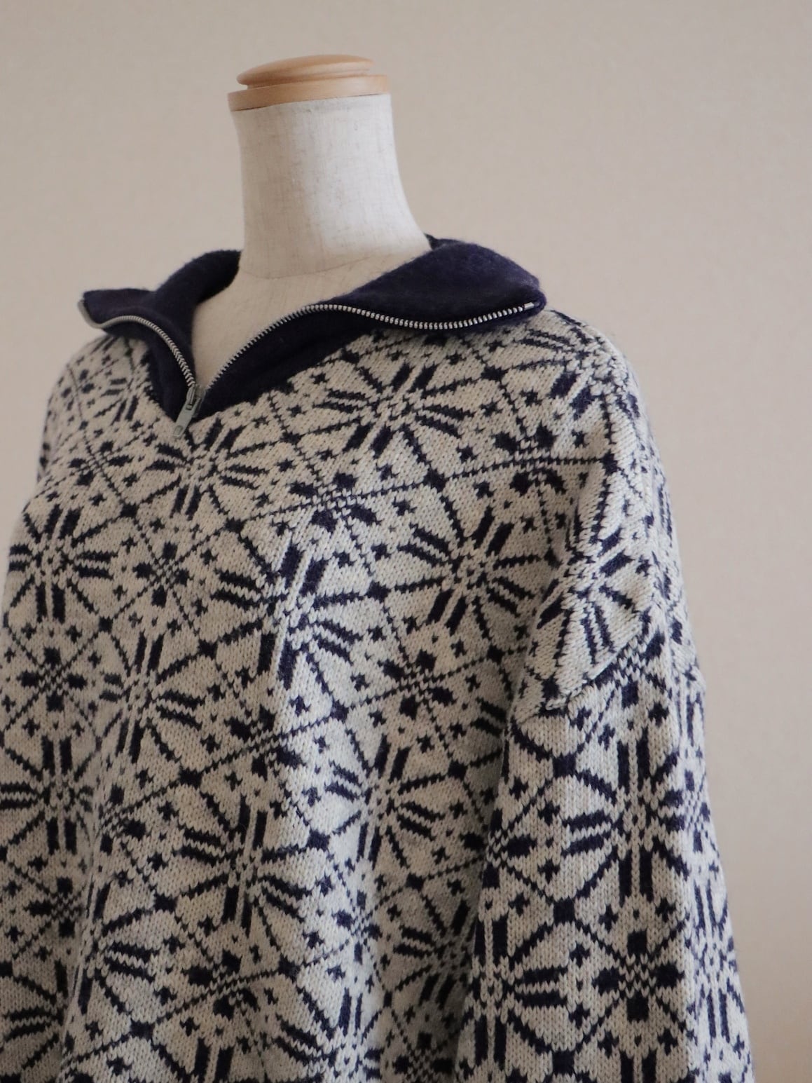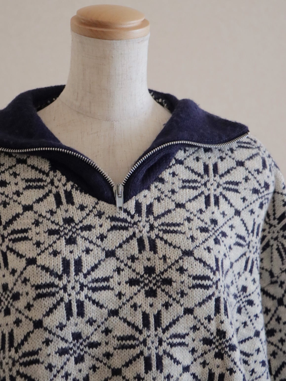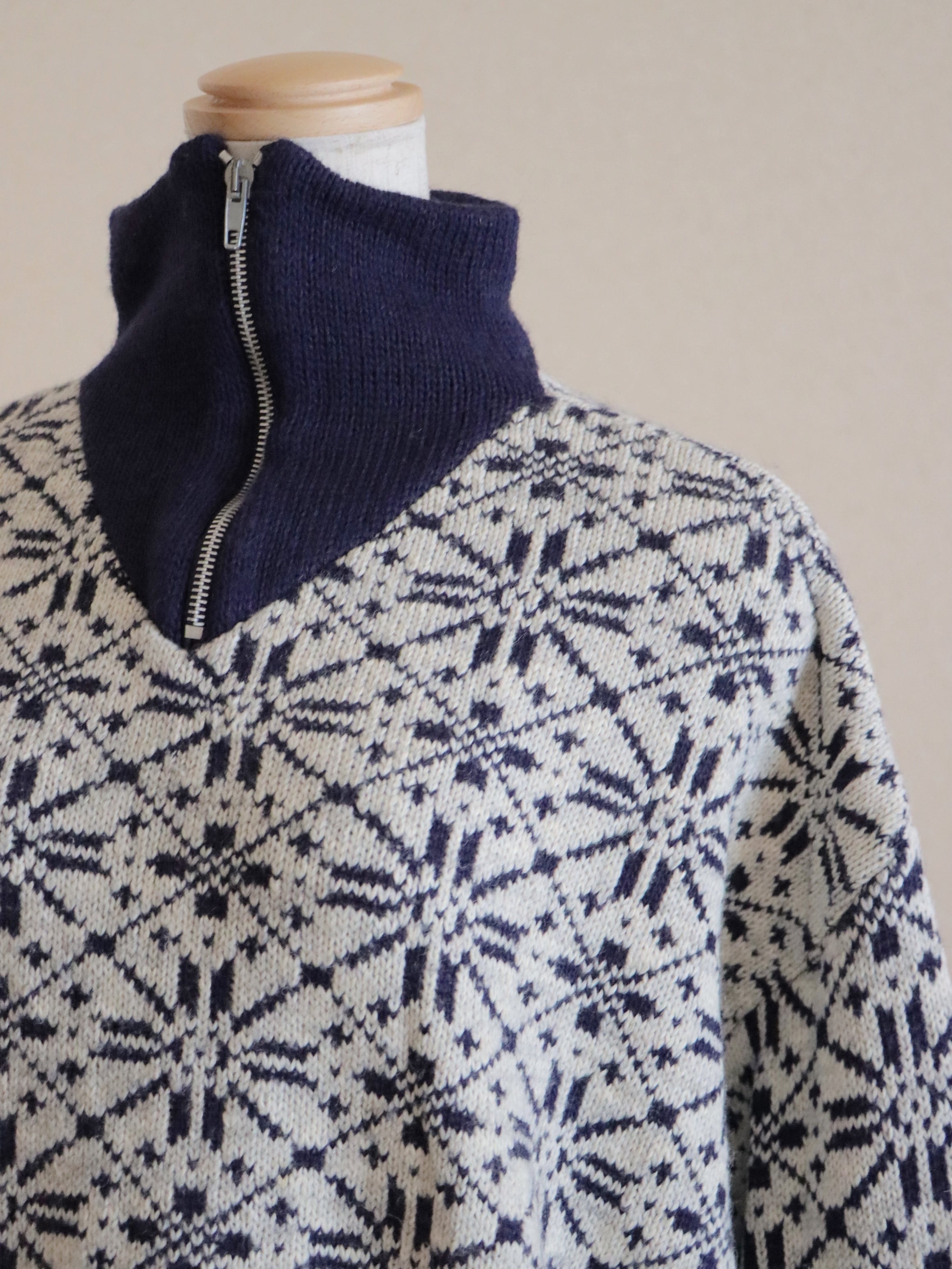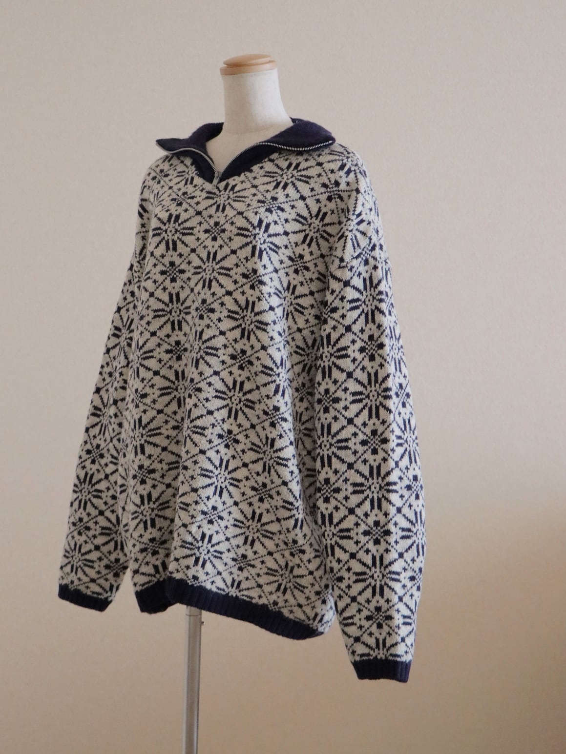 ●made in ITALY wool snowflake knitted half zipper sweater.