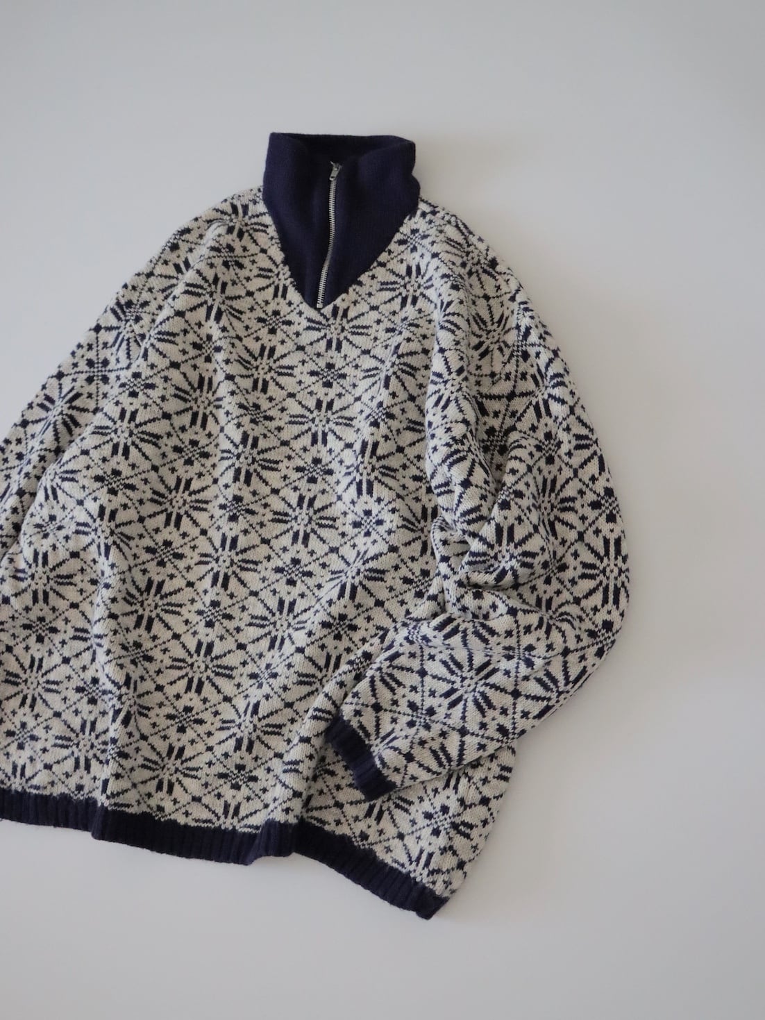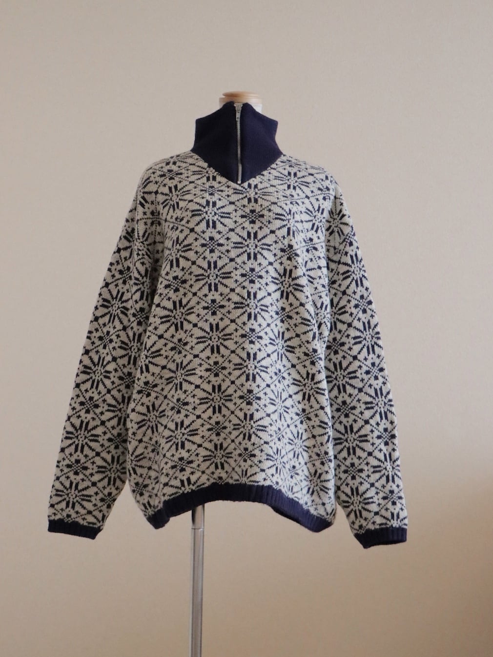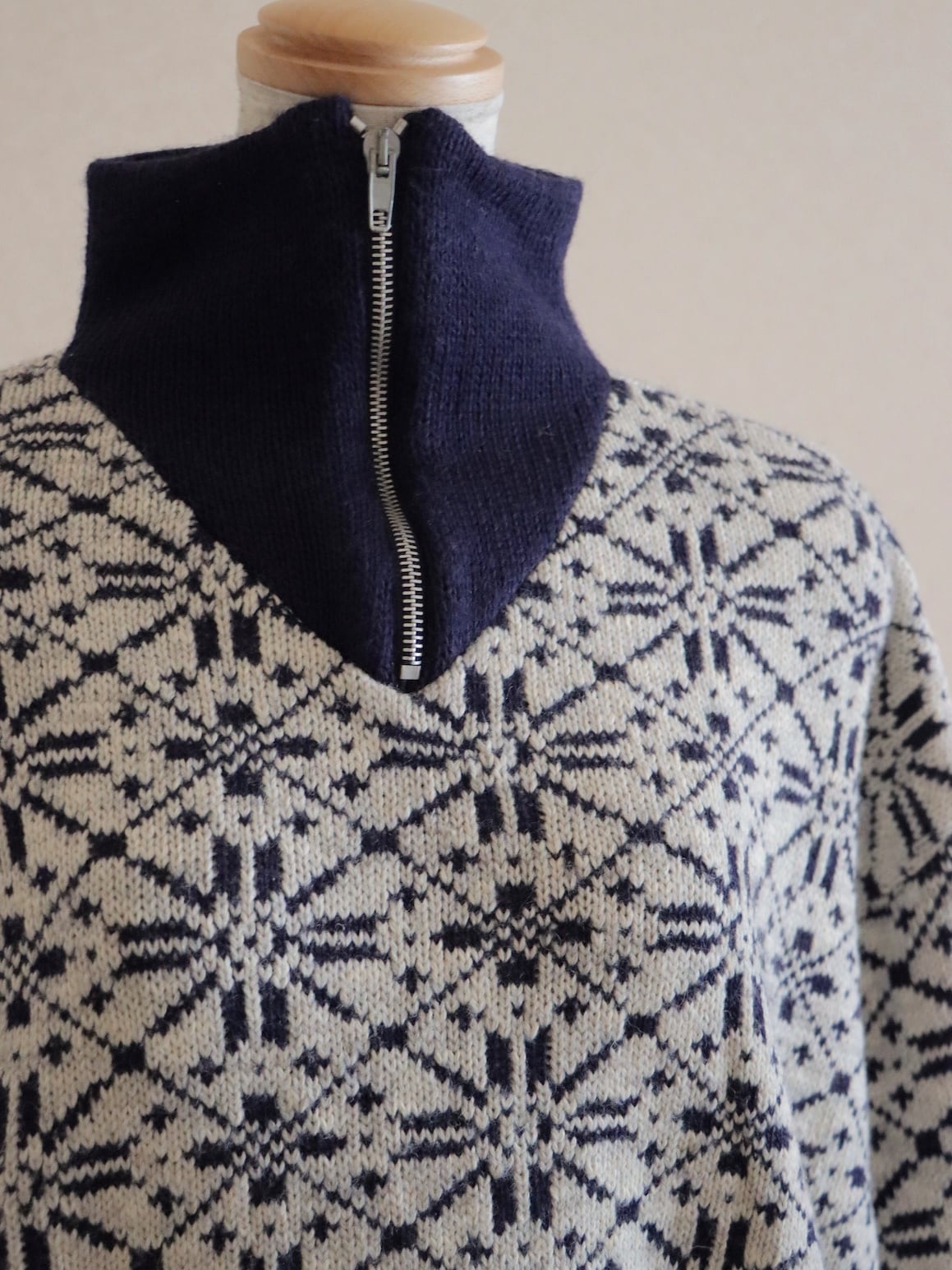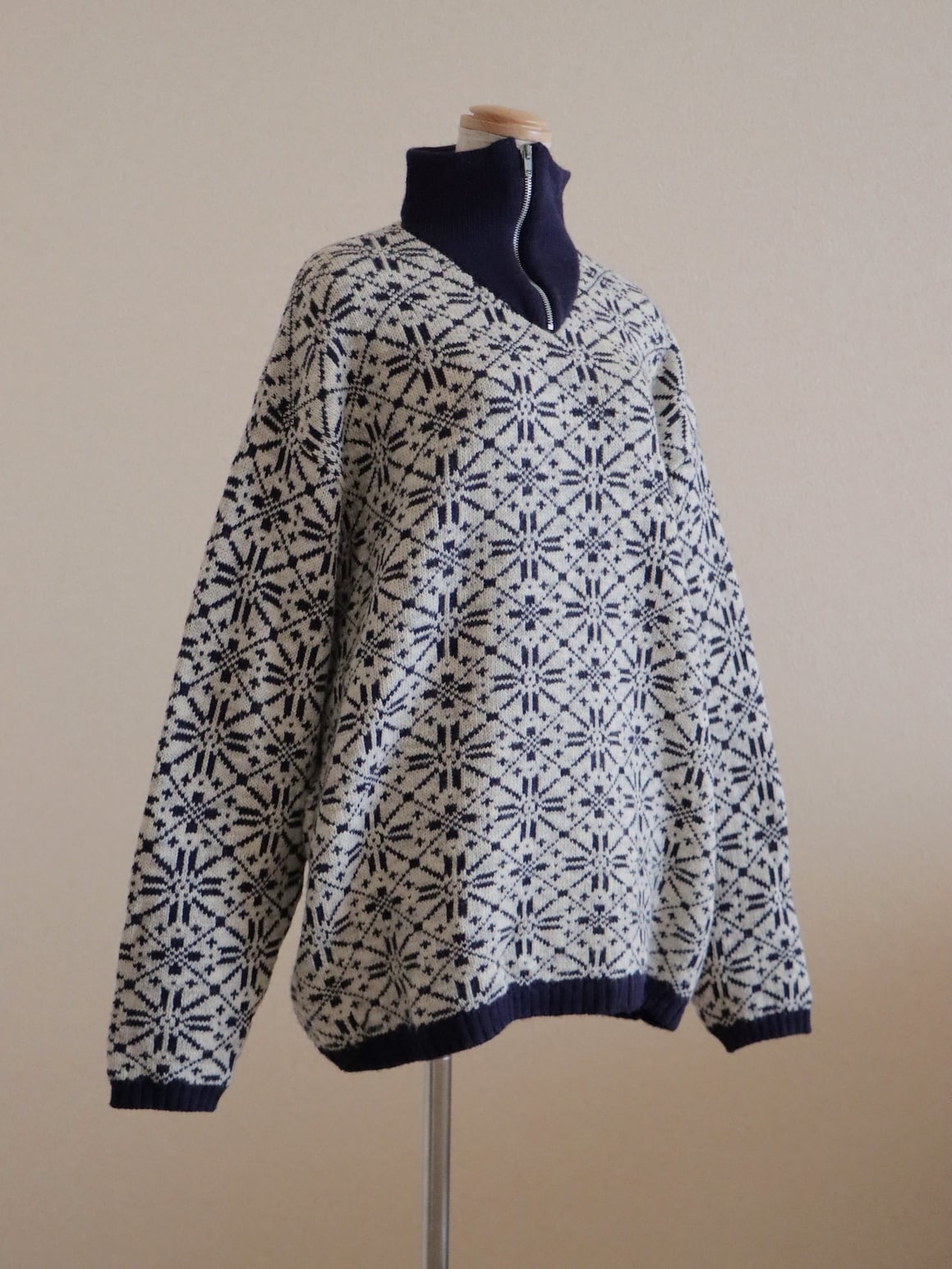 ●made in ITALY wool snowflake knitted half zipper sweater.