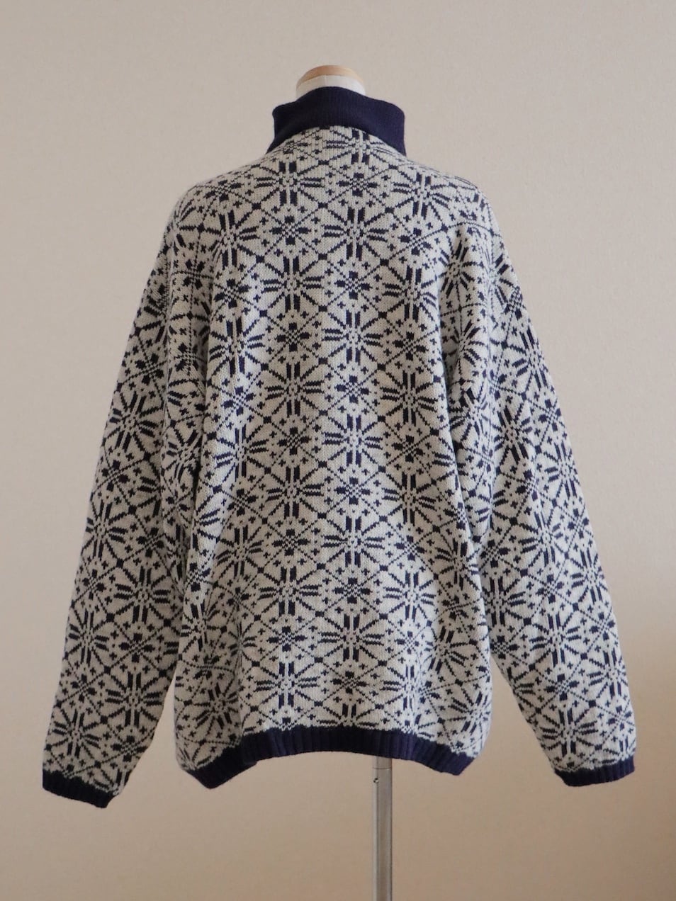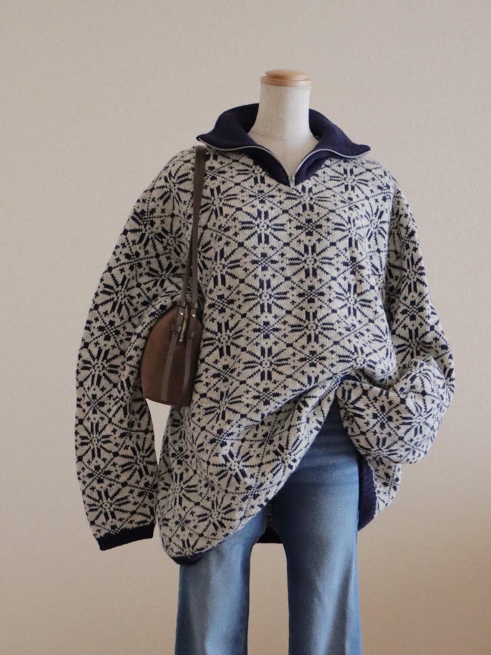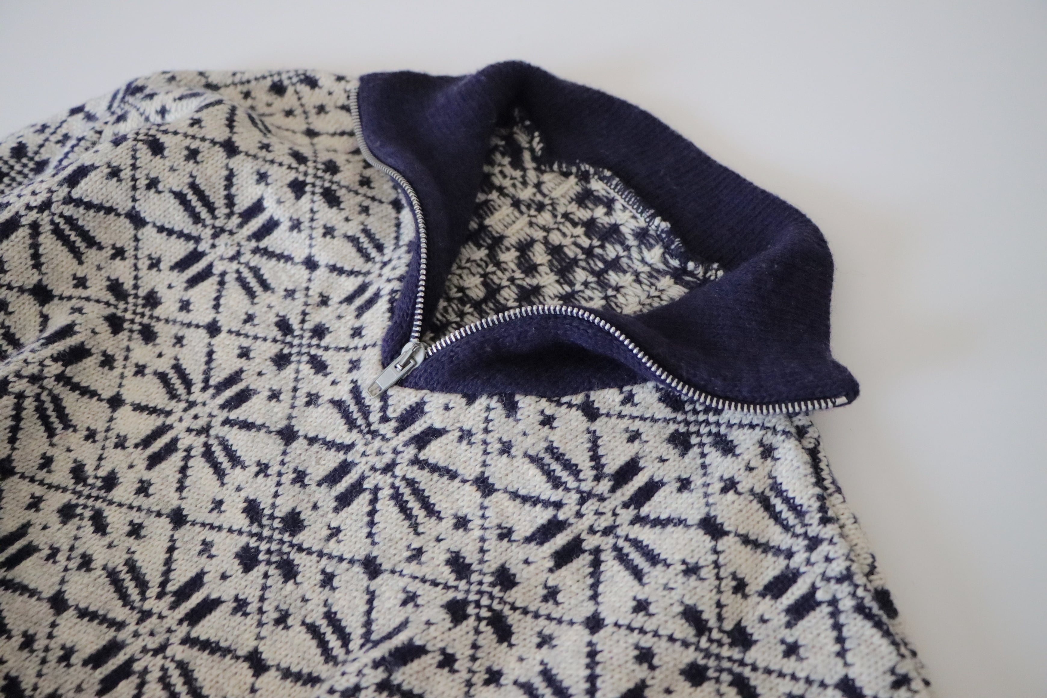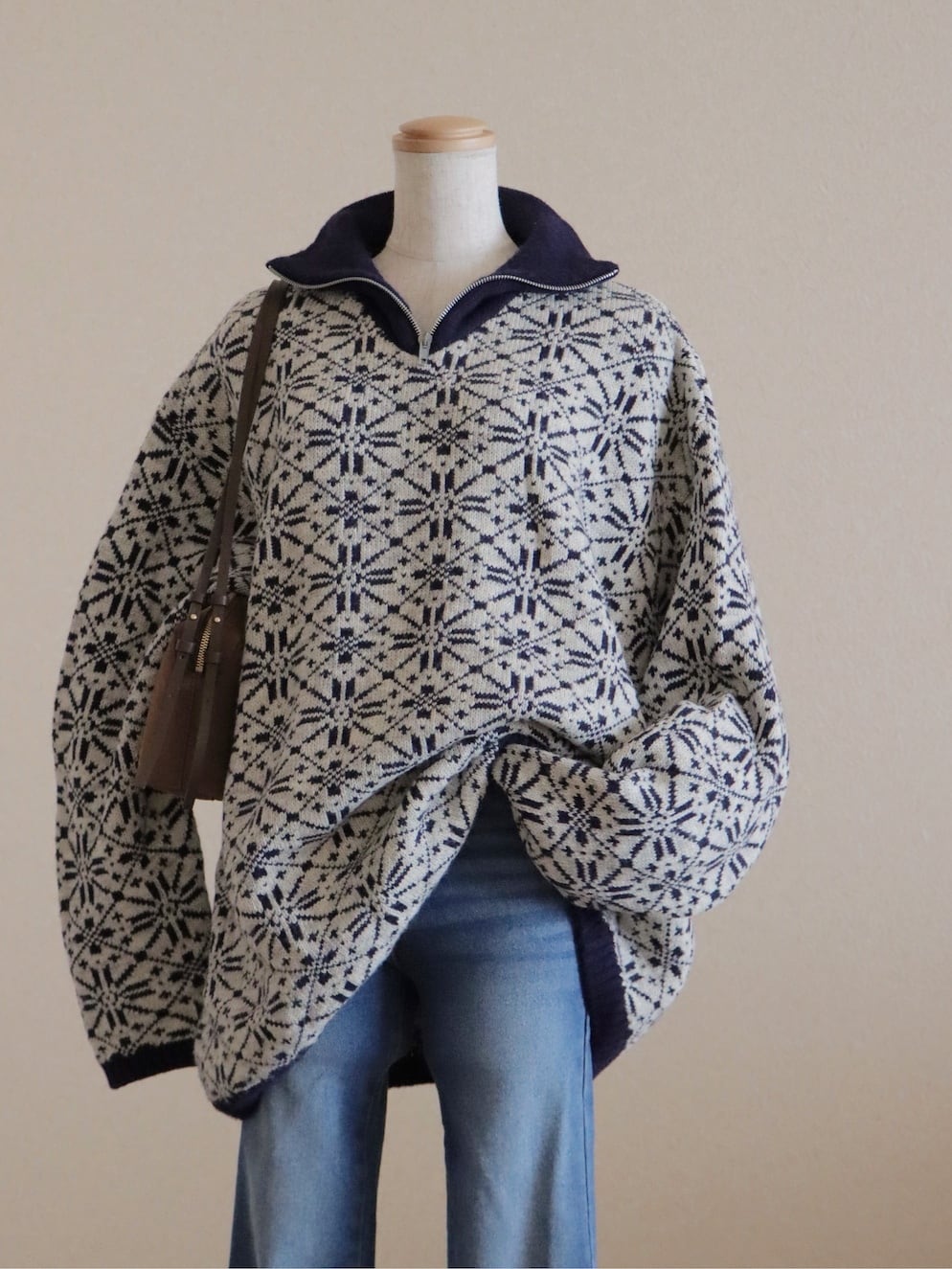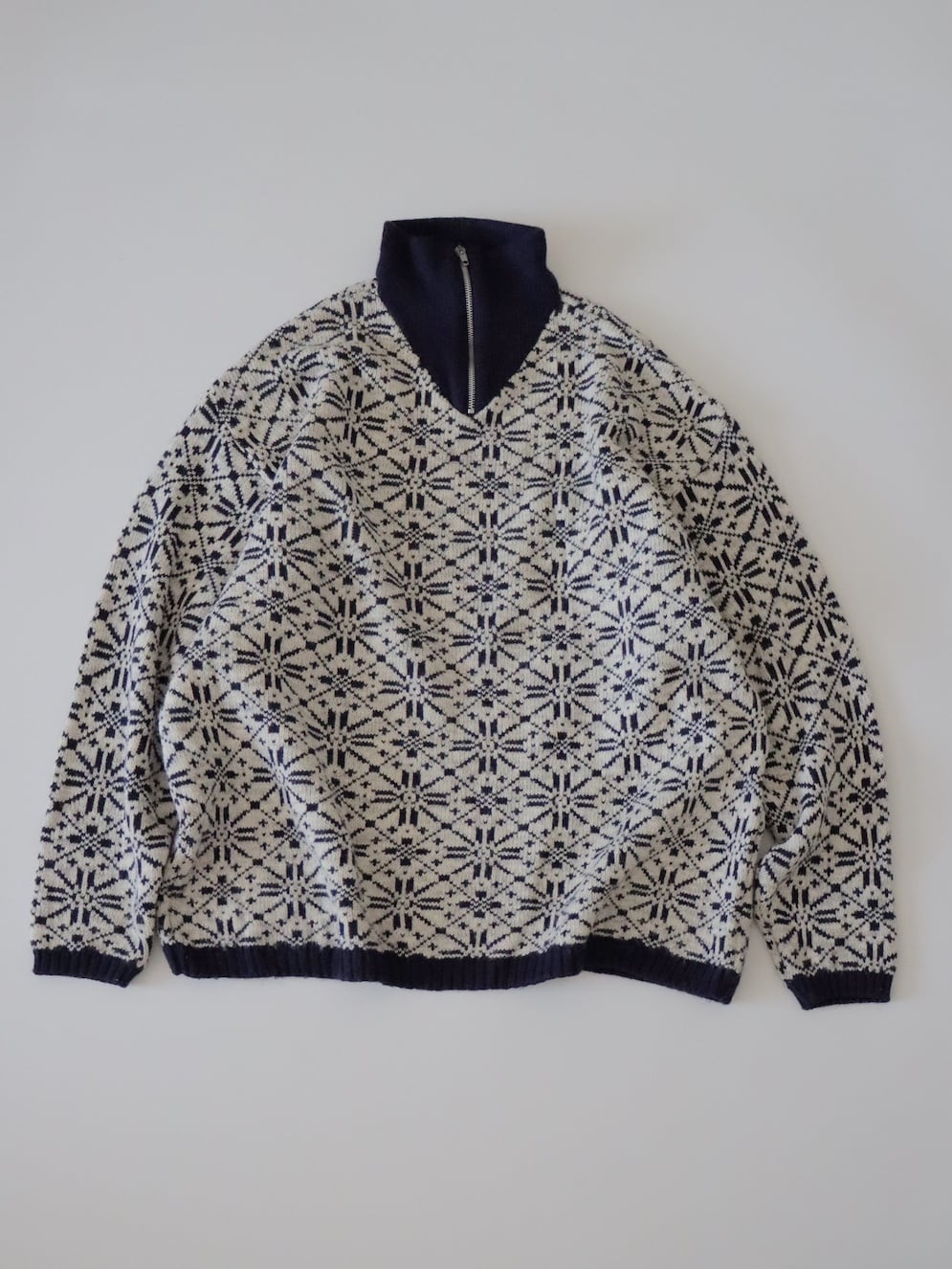 ●made in ITALY wool snowflake knitted half zipper sweater.