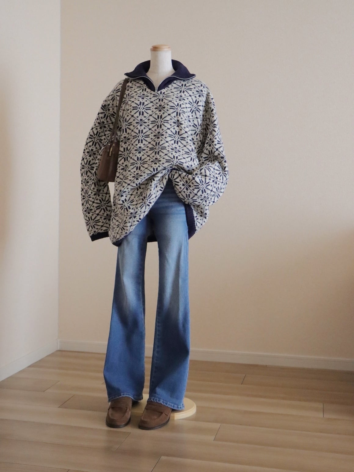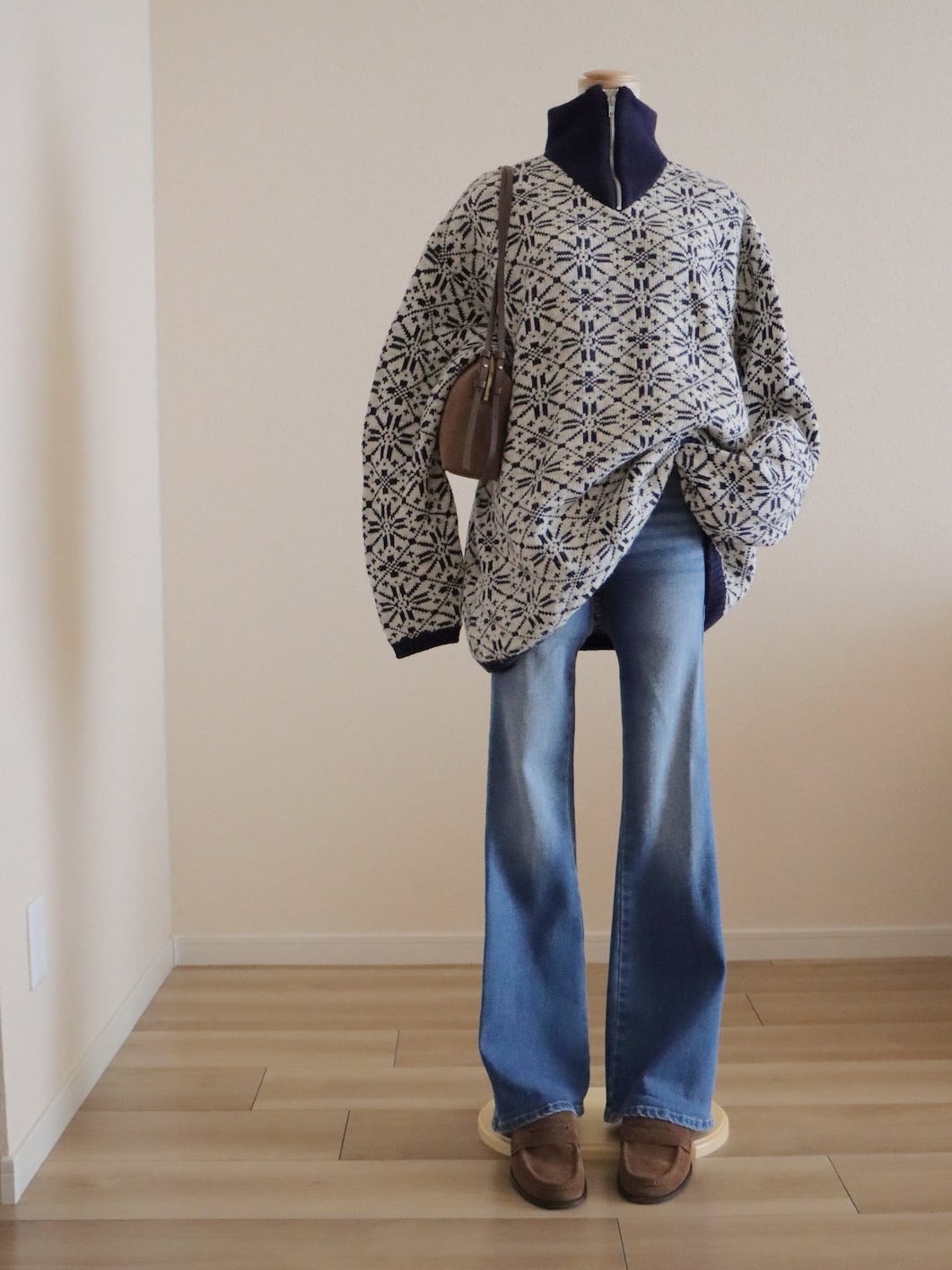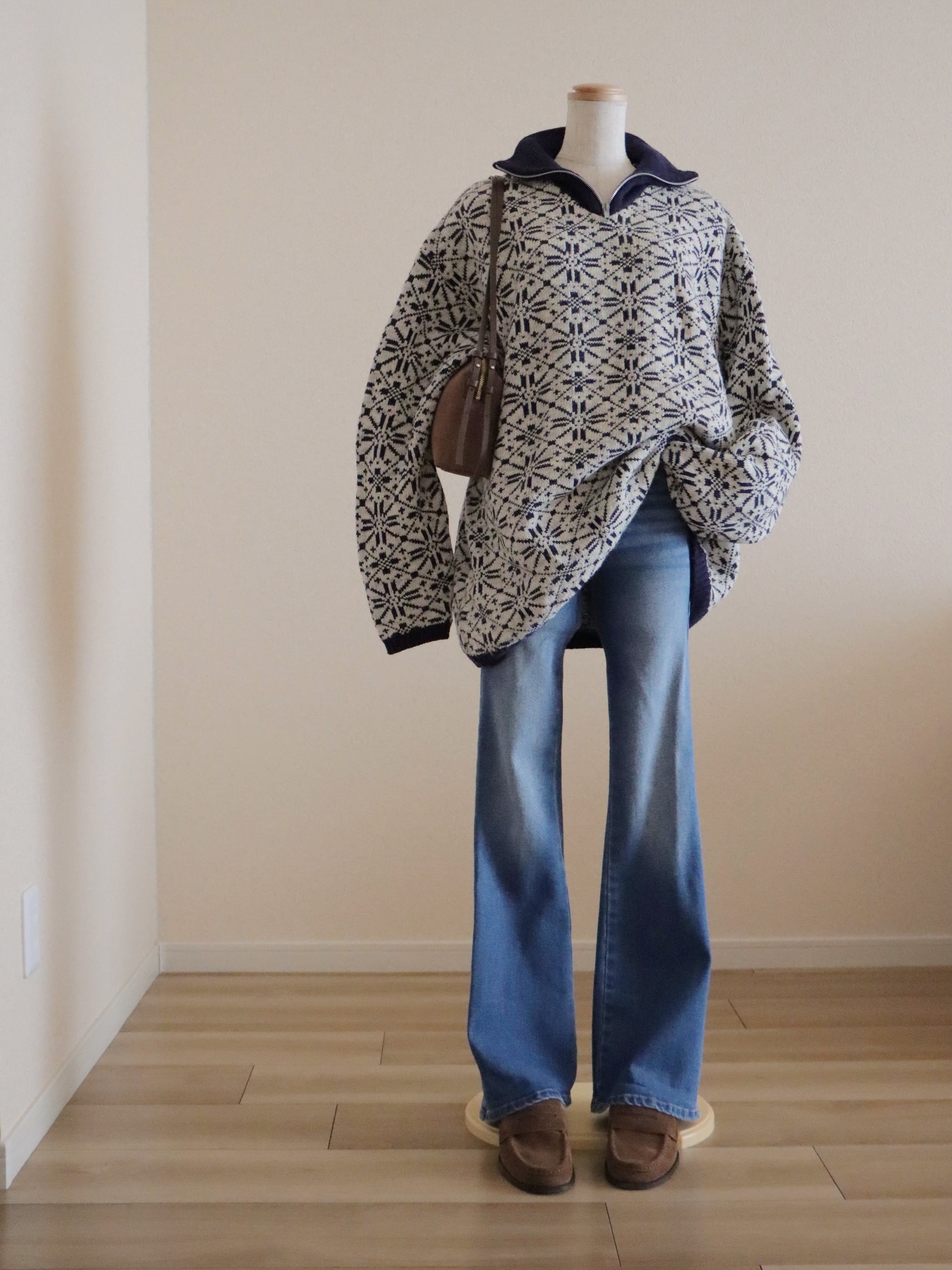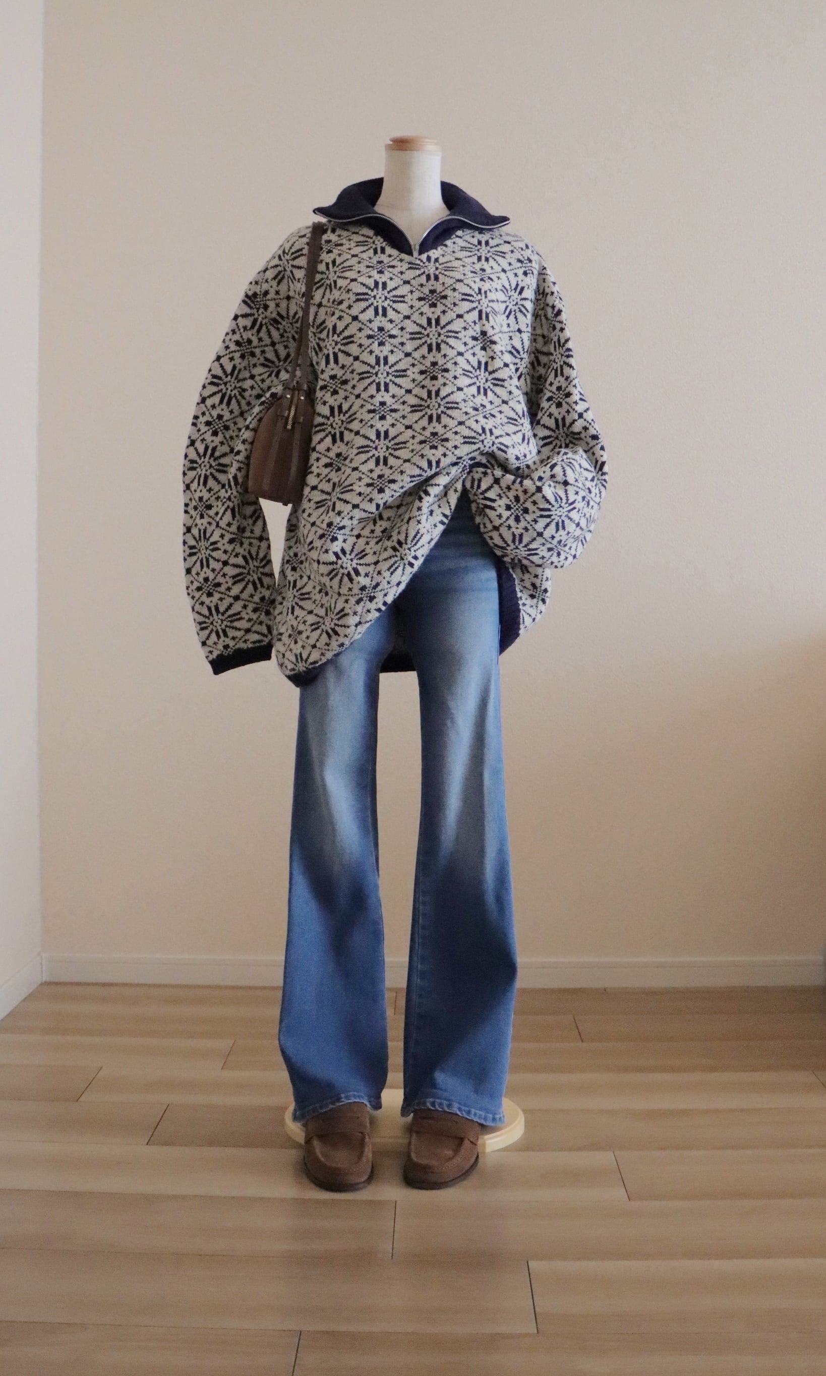 ●made in ITALY wool snowflake knitted half zipper sweater.