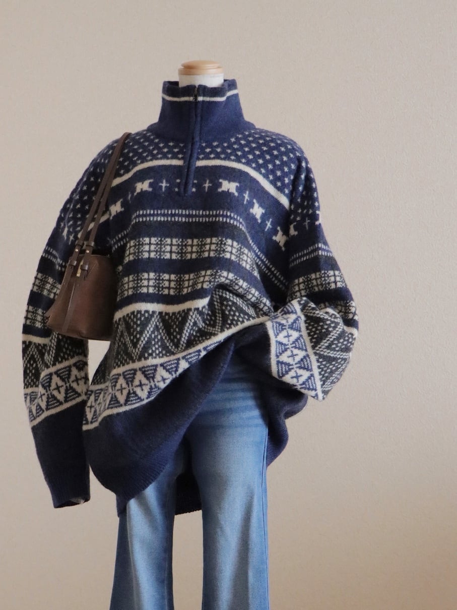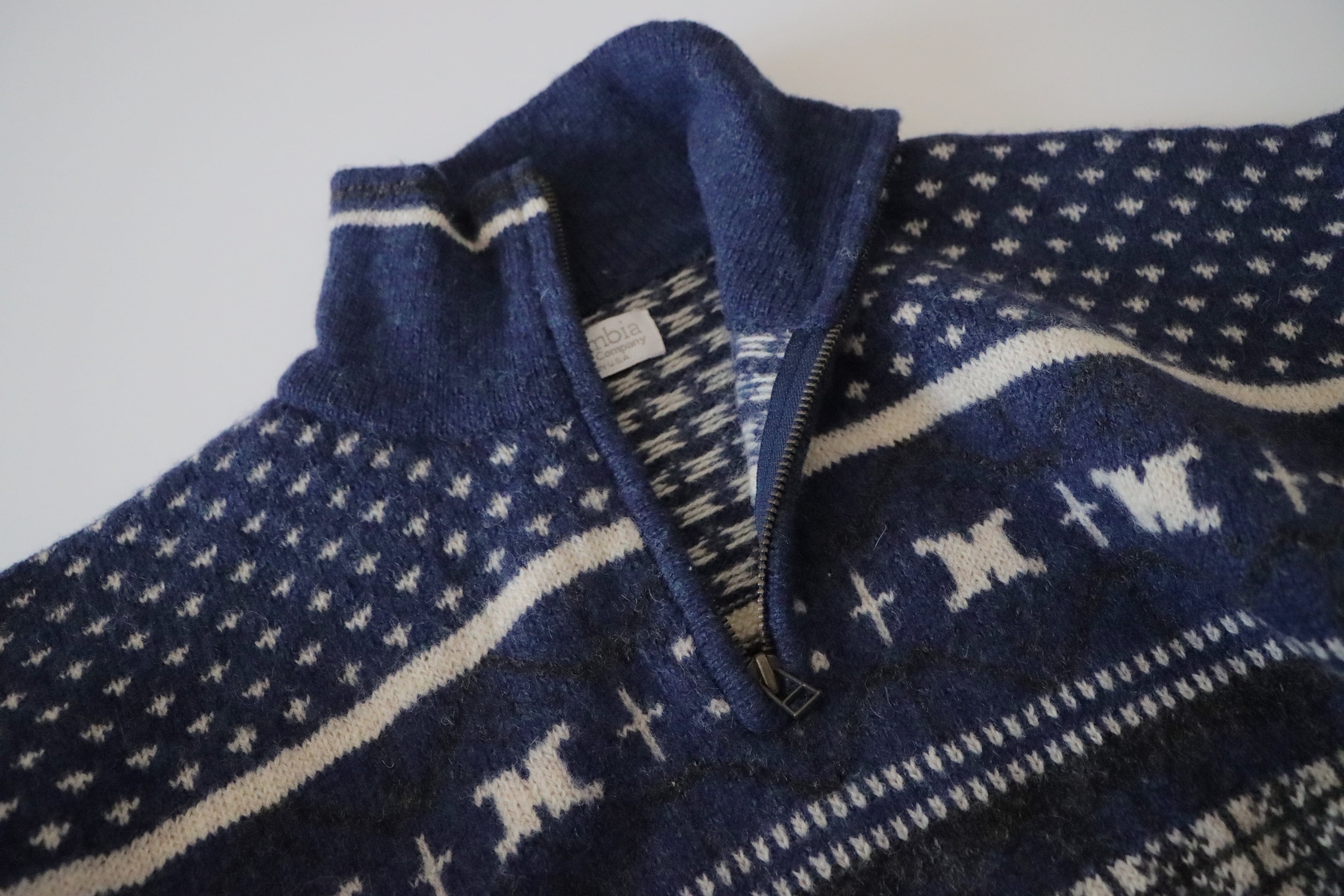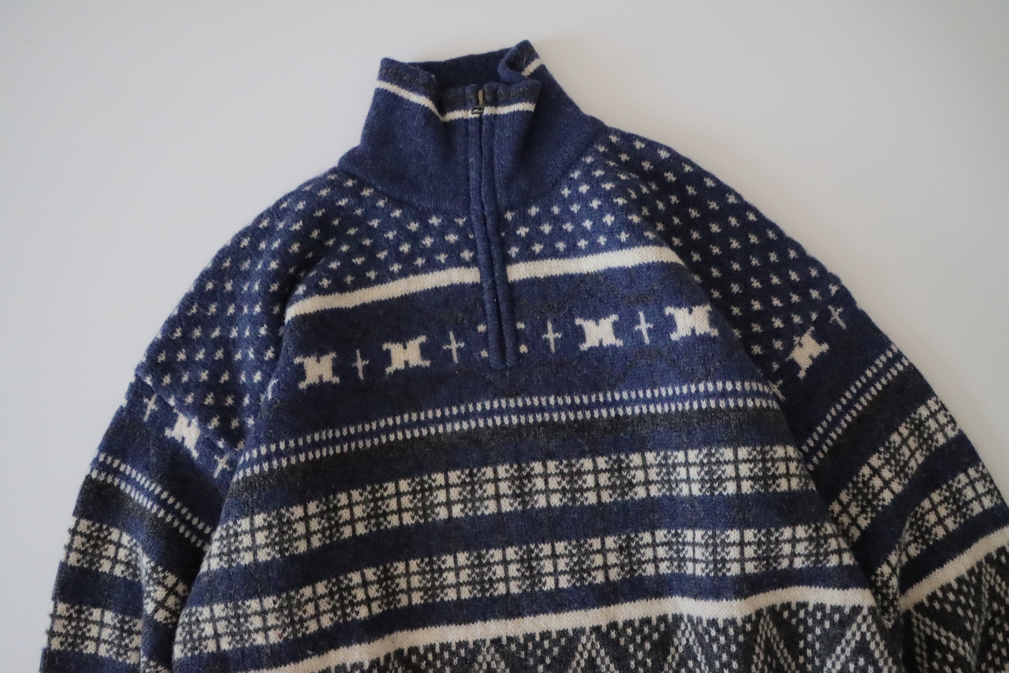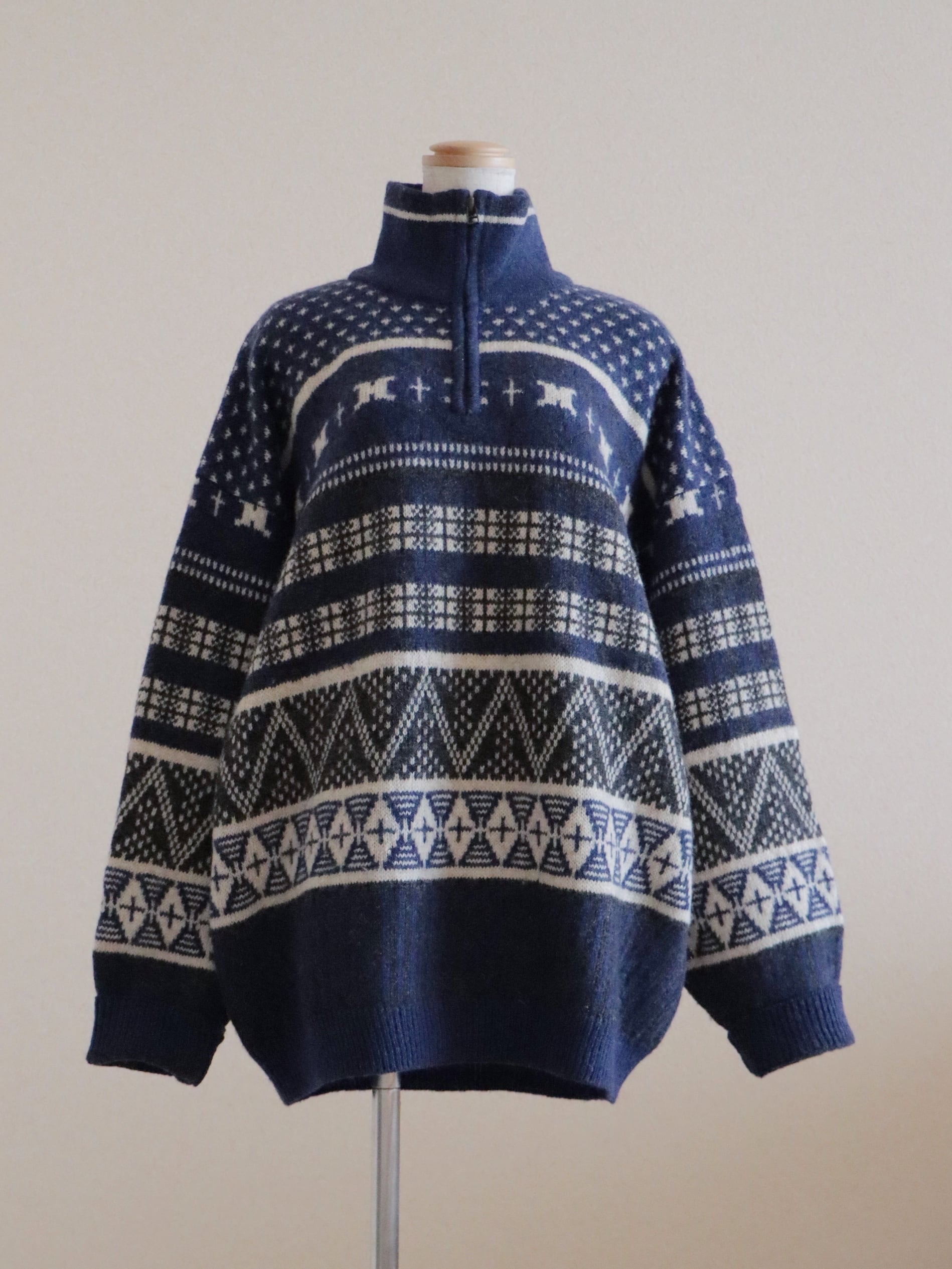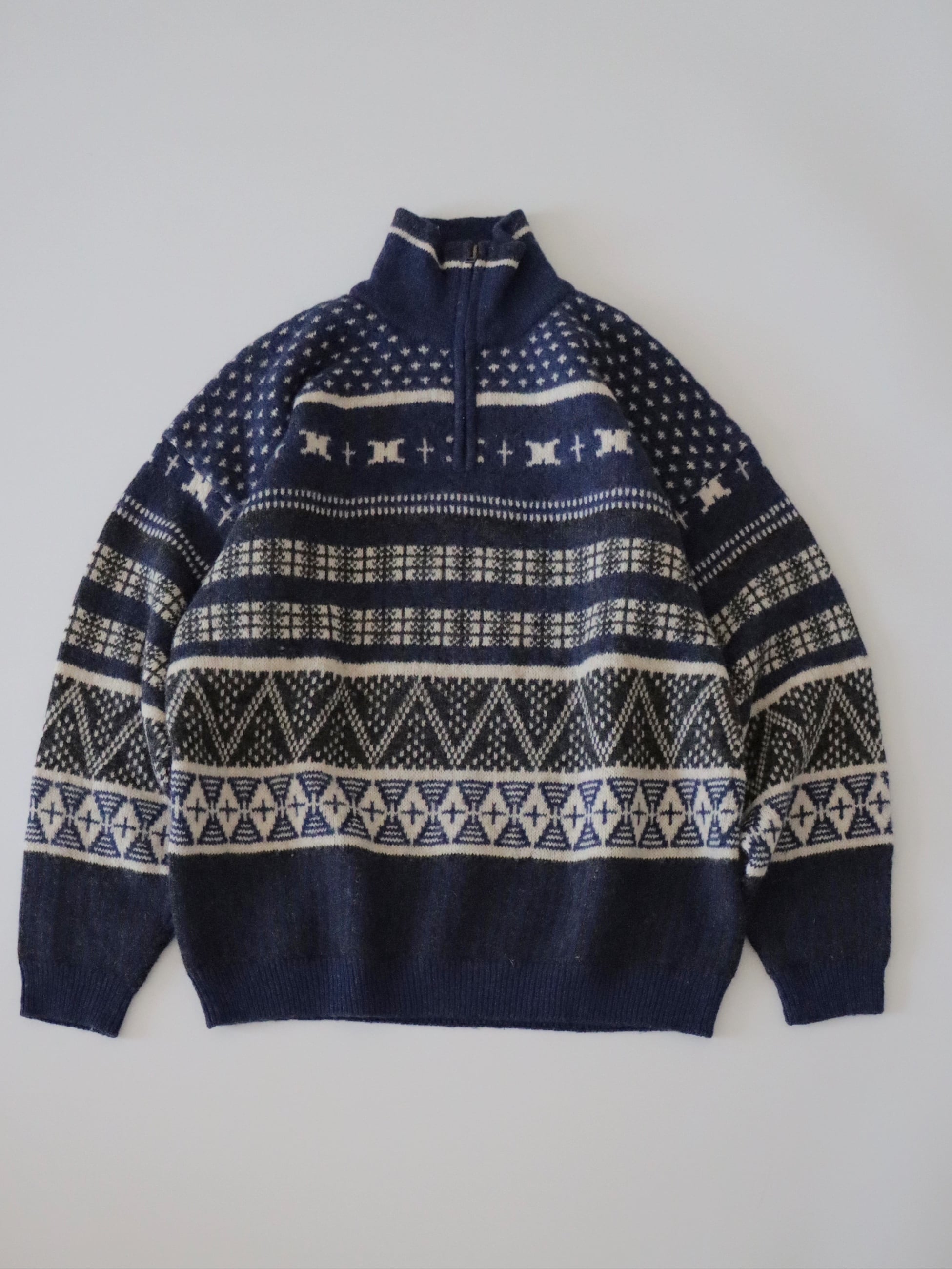 ●Columbia fair isle wool knitted navy color half zipper sweater.