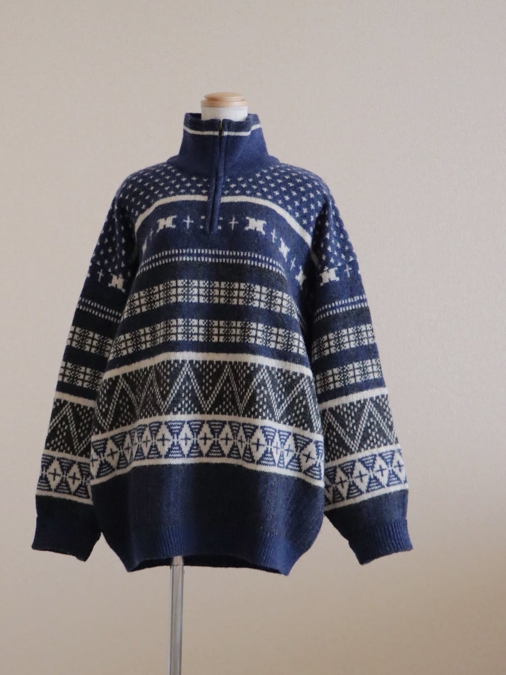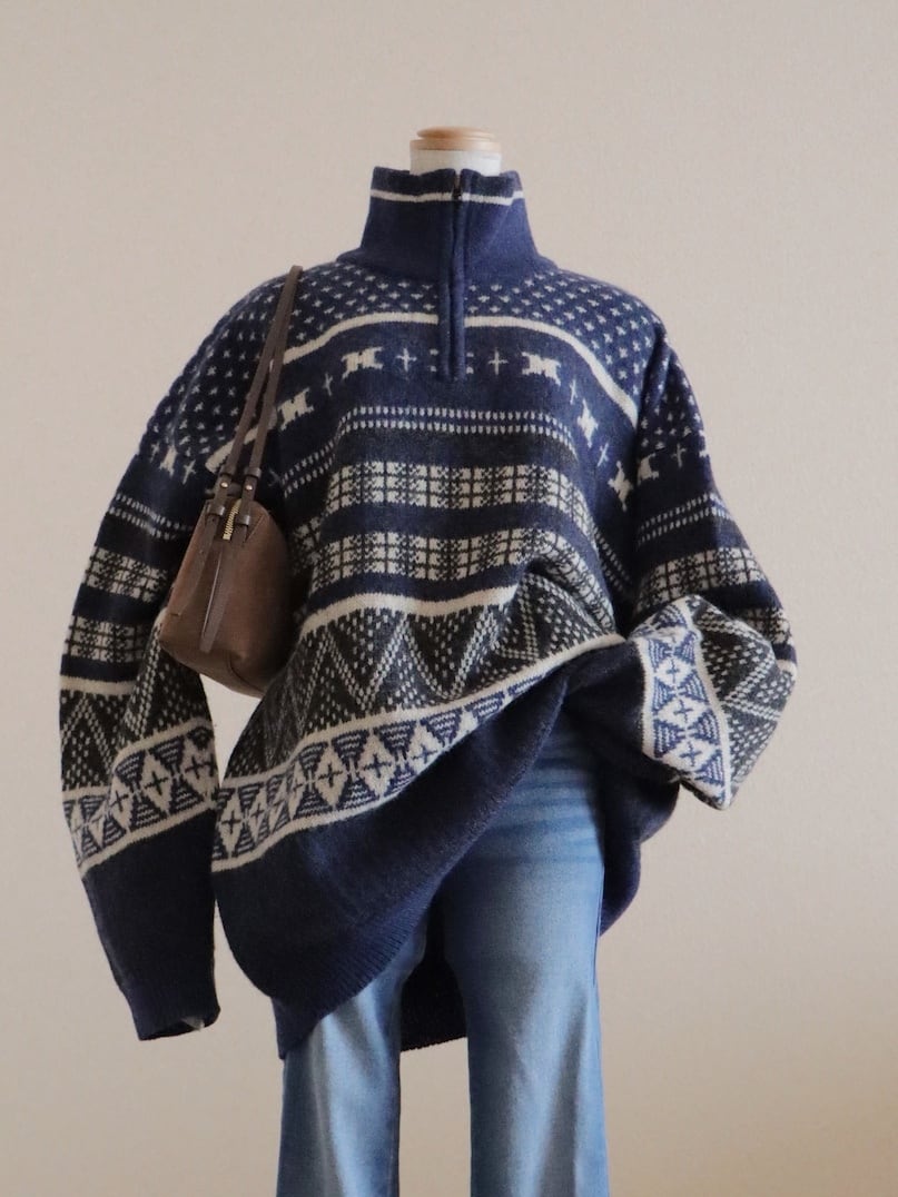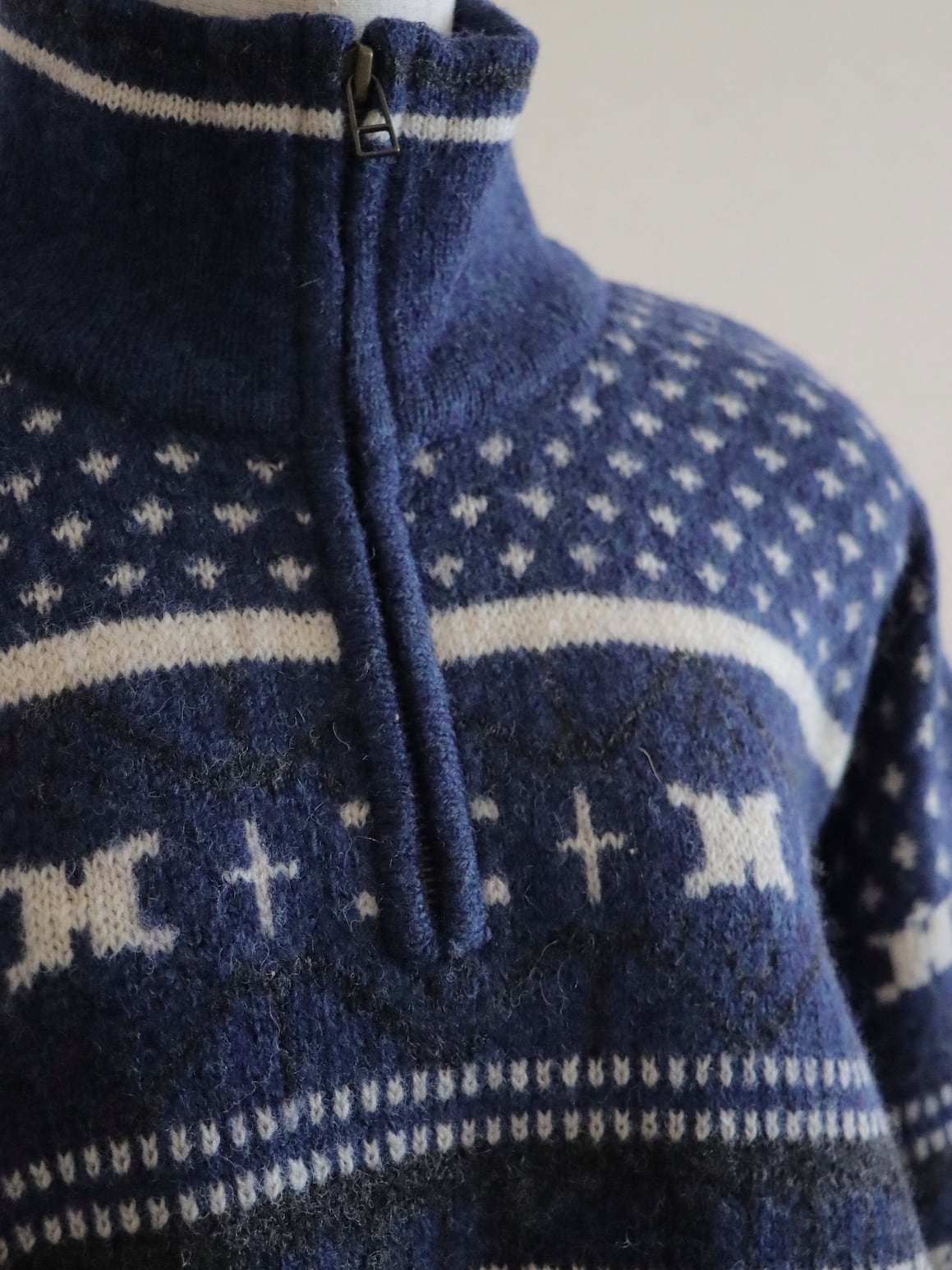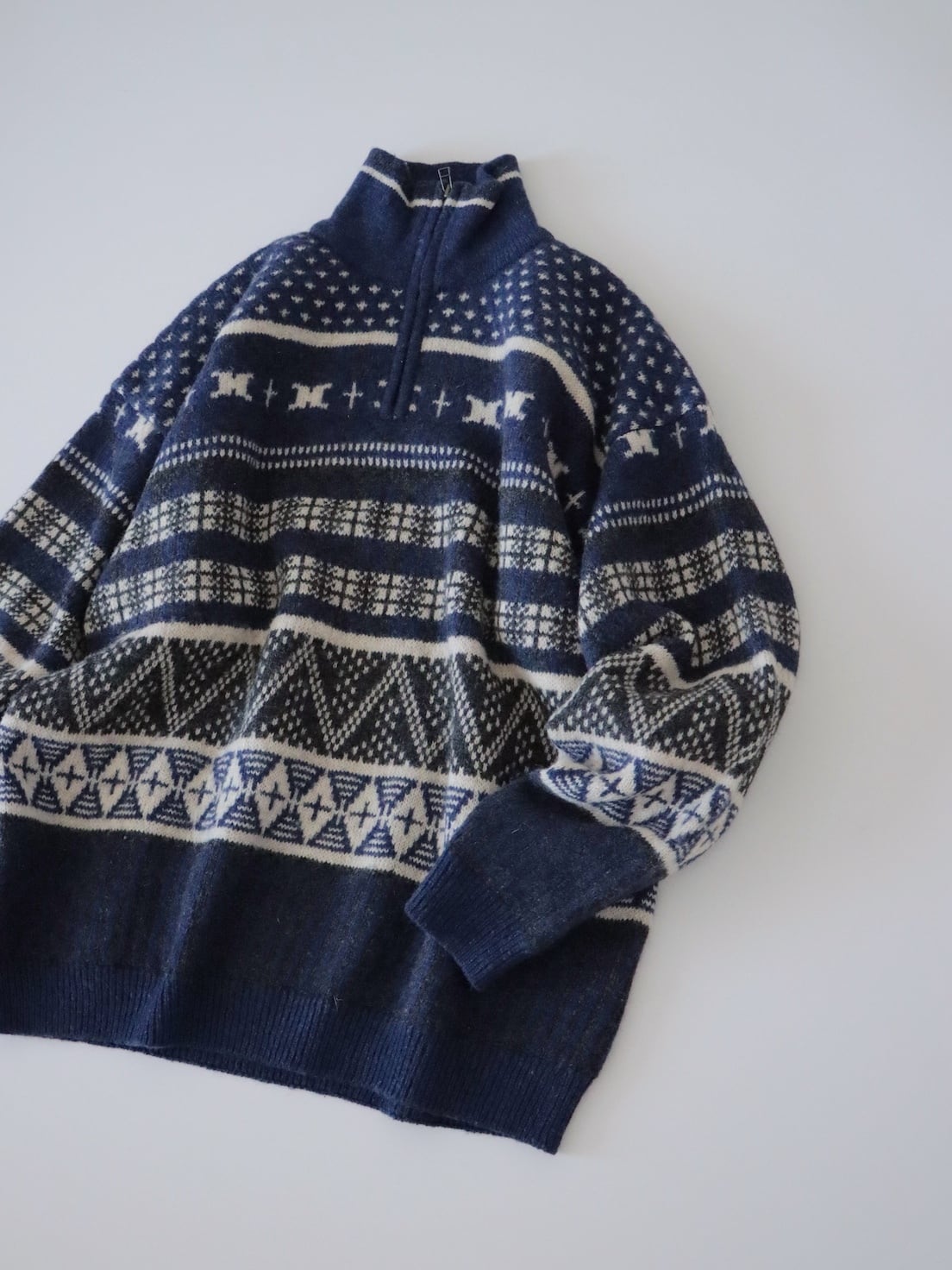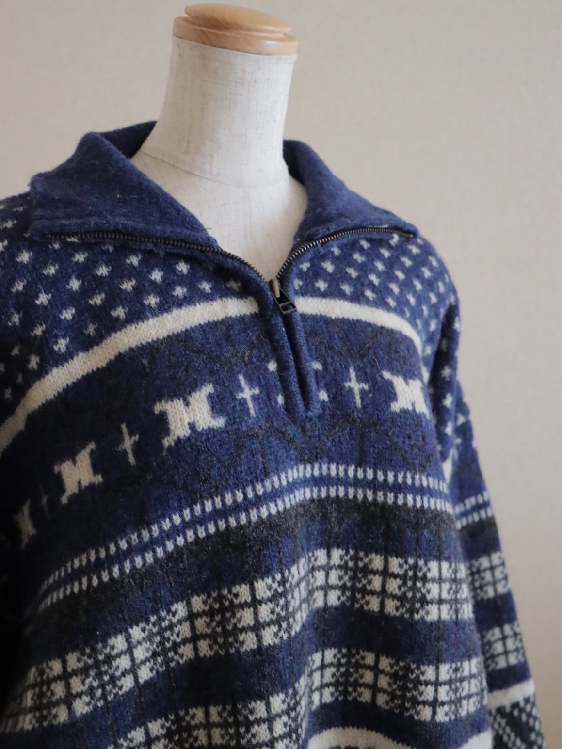 ●Columbia fair isle wool knitted navy color half zipper sweater.
