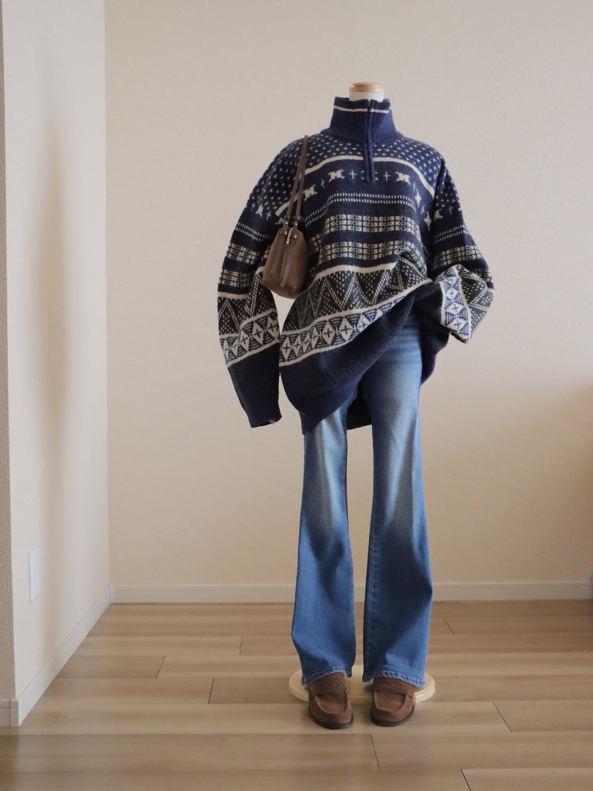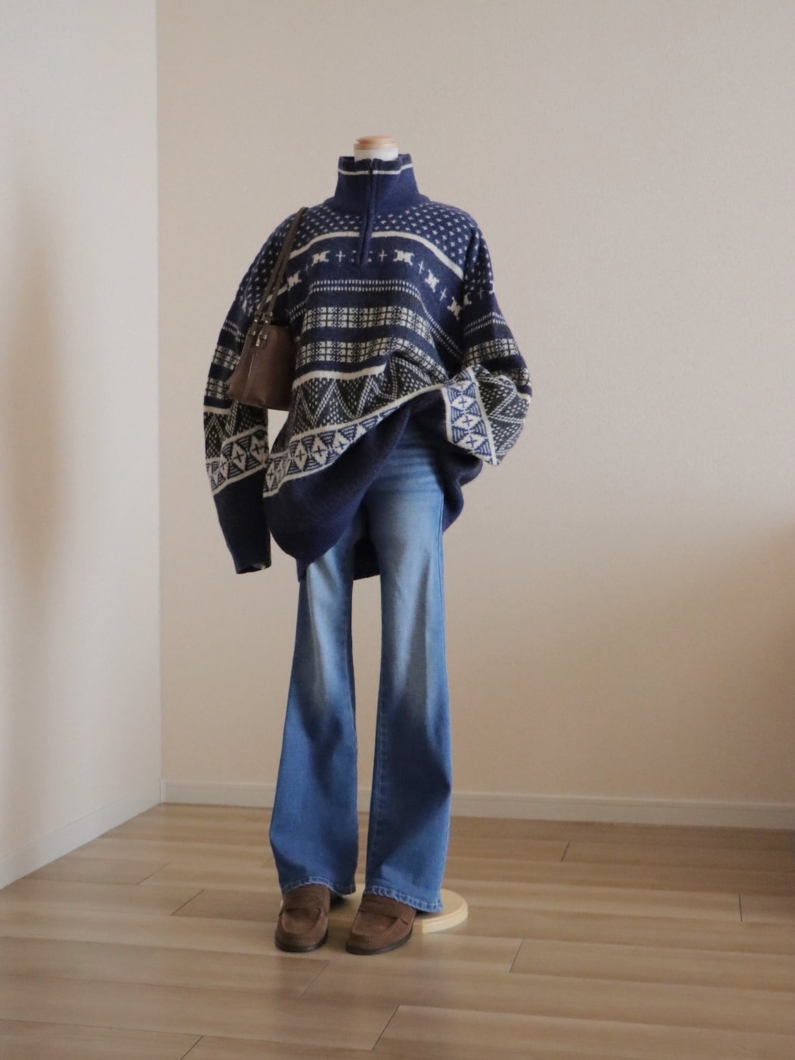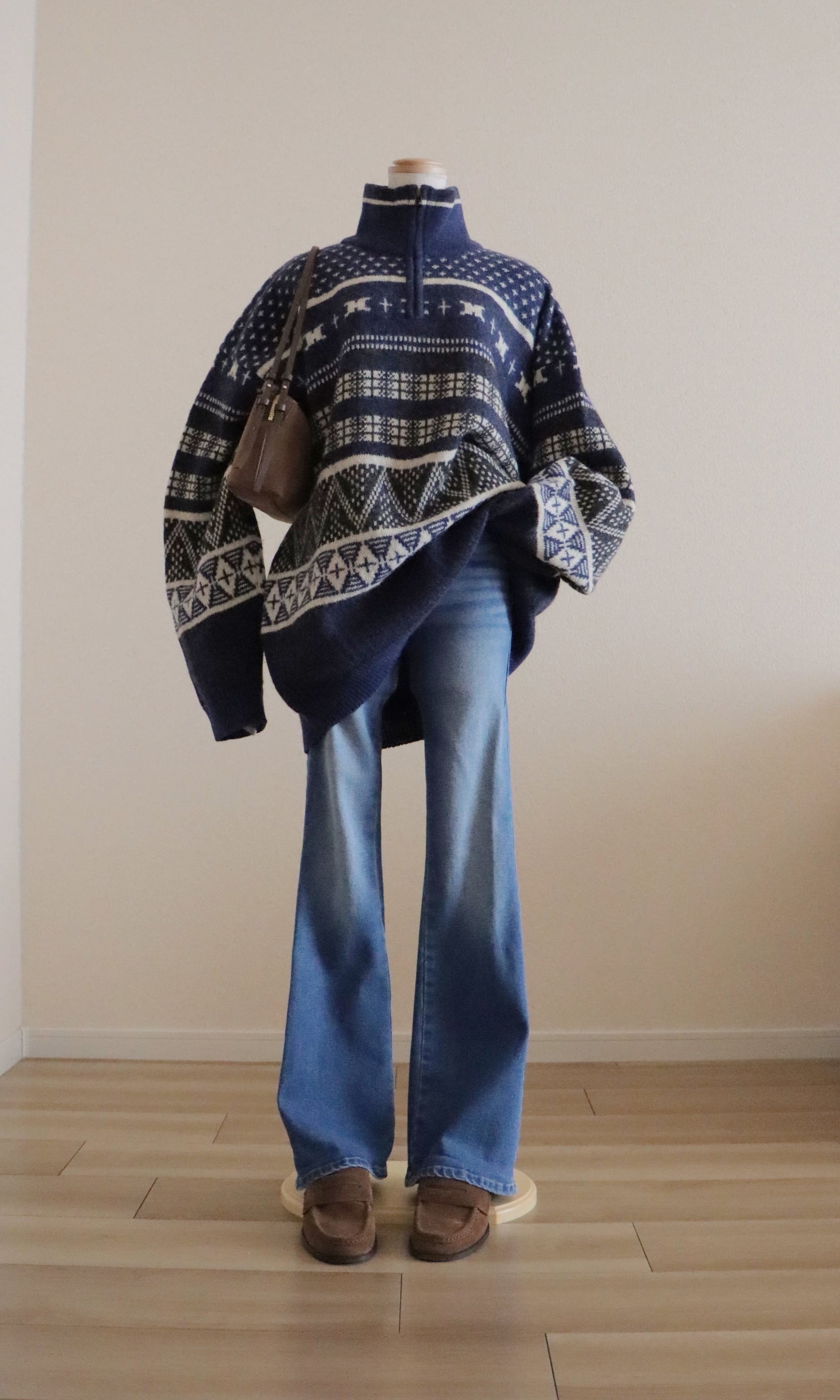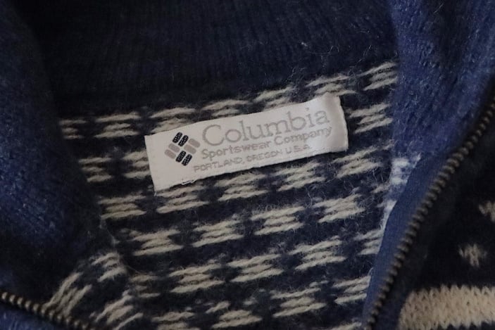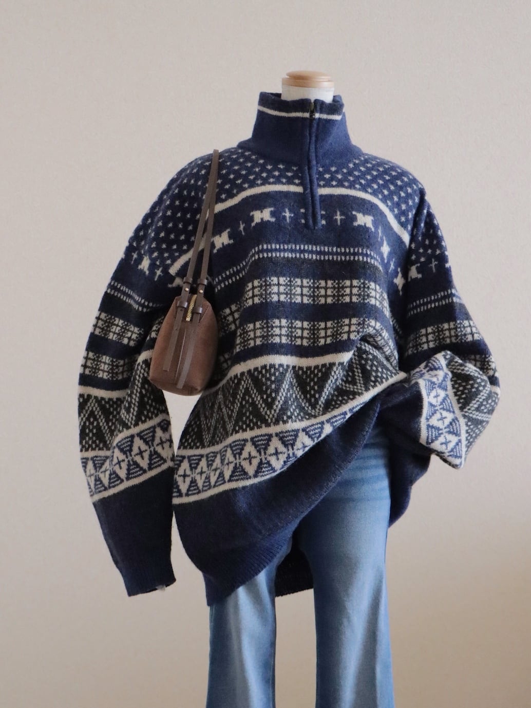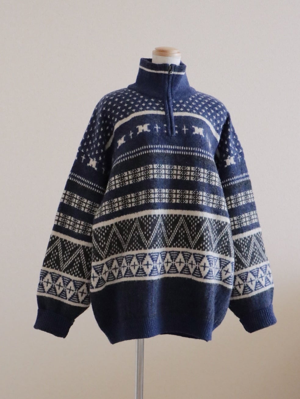 ●Columbia fair isle wool knitted navy color half zipper sweater.