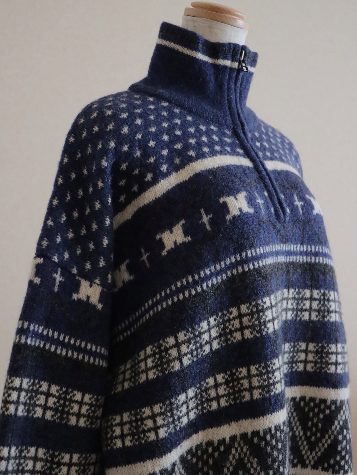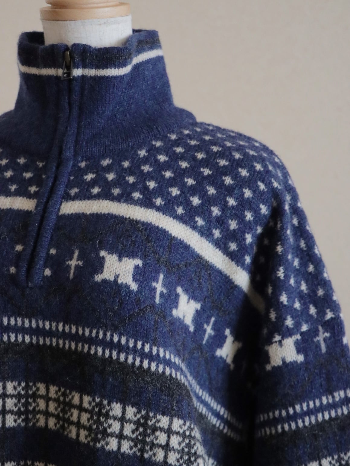 ●Columbia fair isle wool knitted navy color half zipper sweater