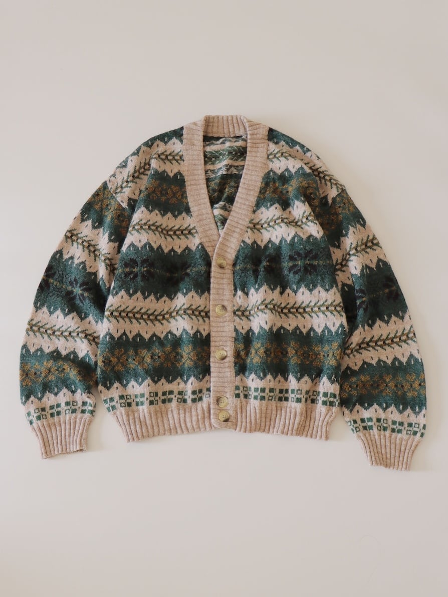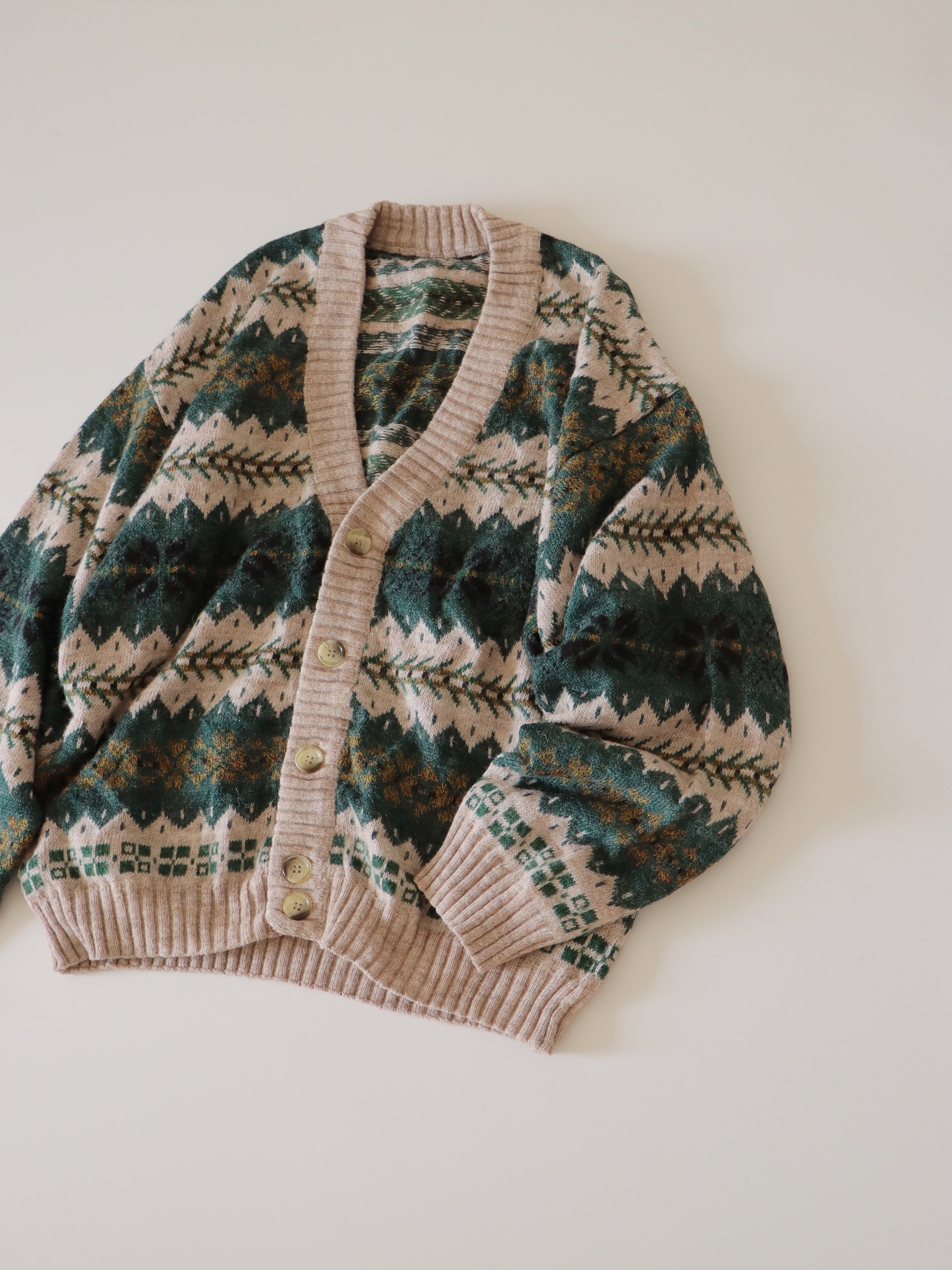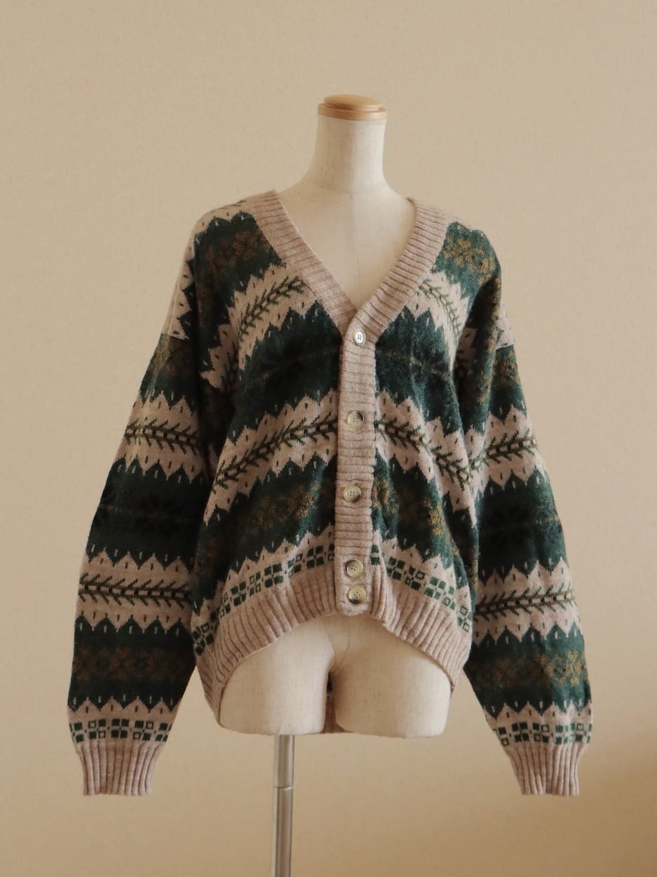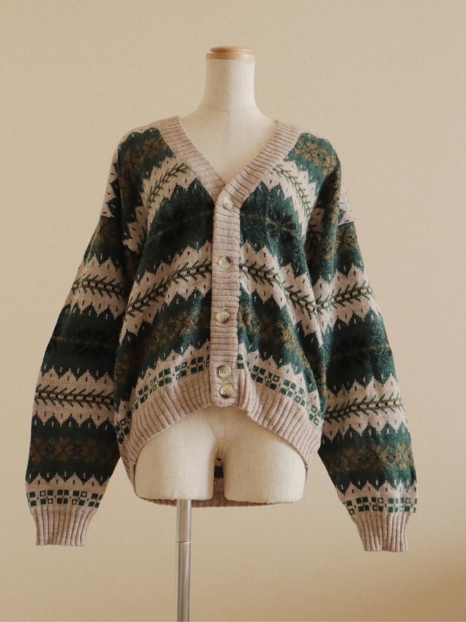 ●made in ITALY snowflake green color design wool cardigan
