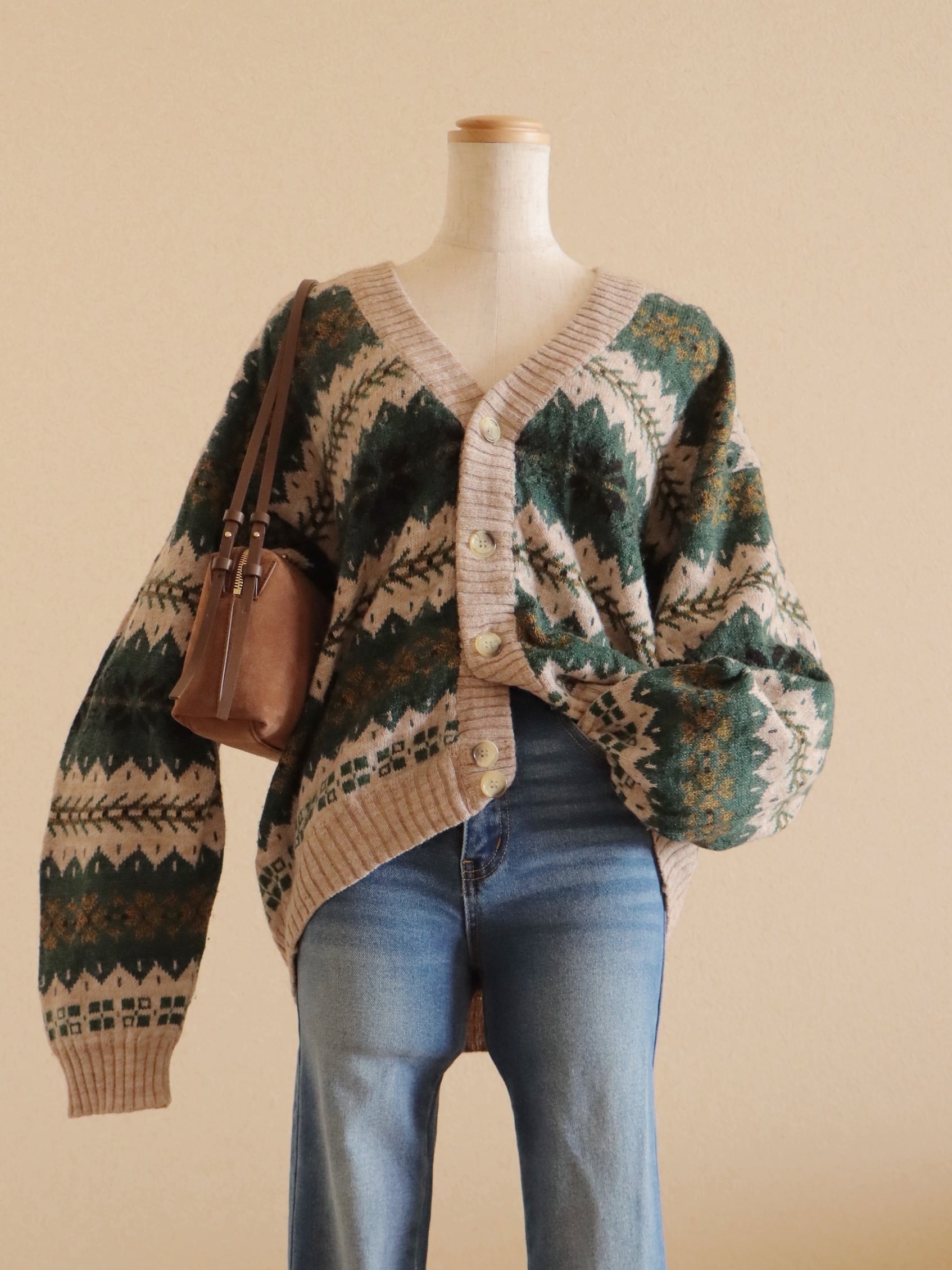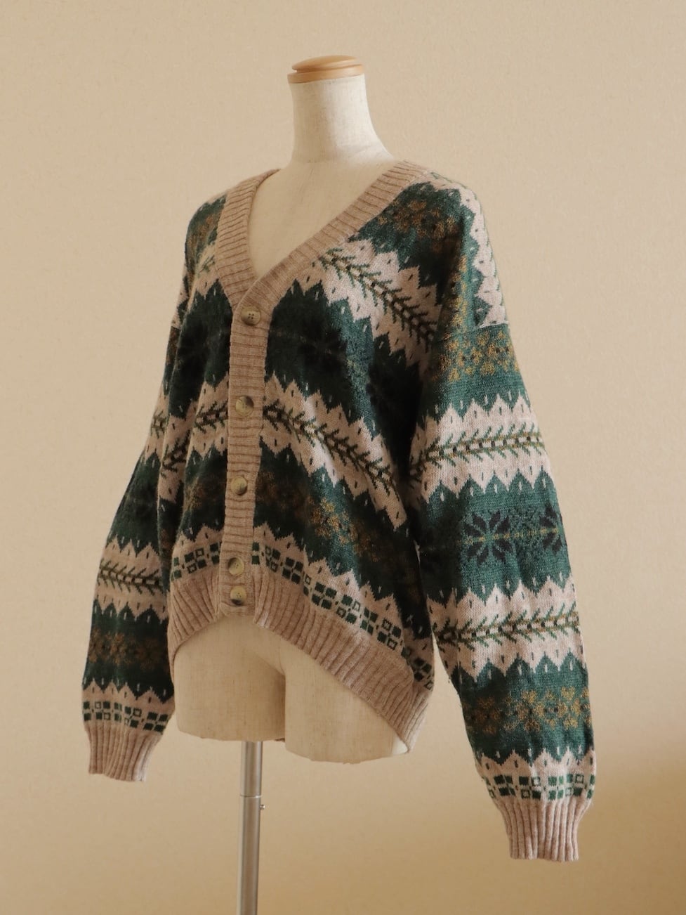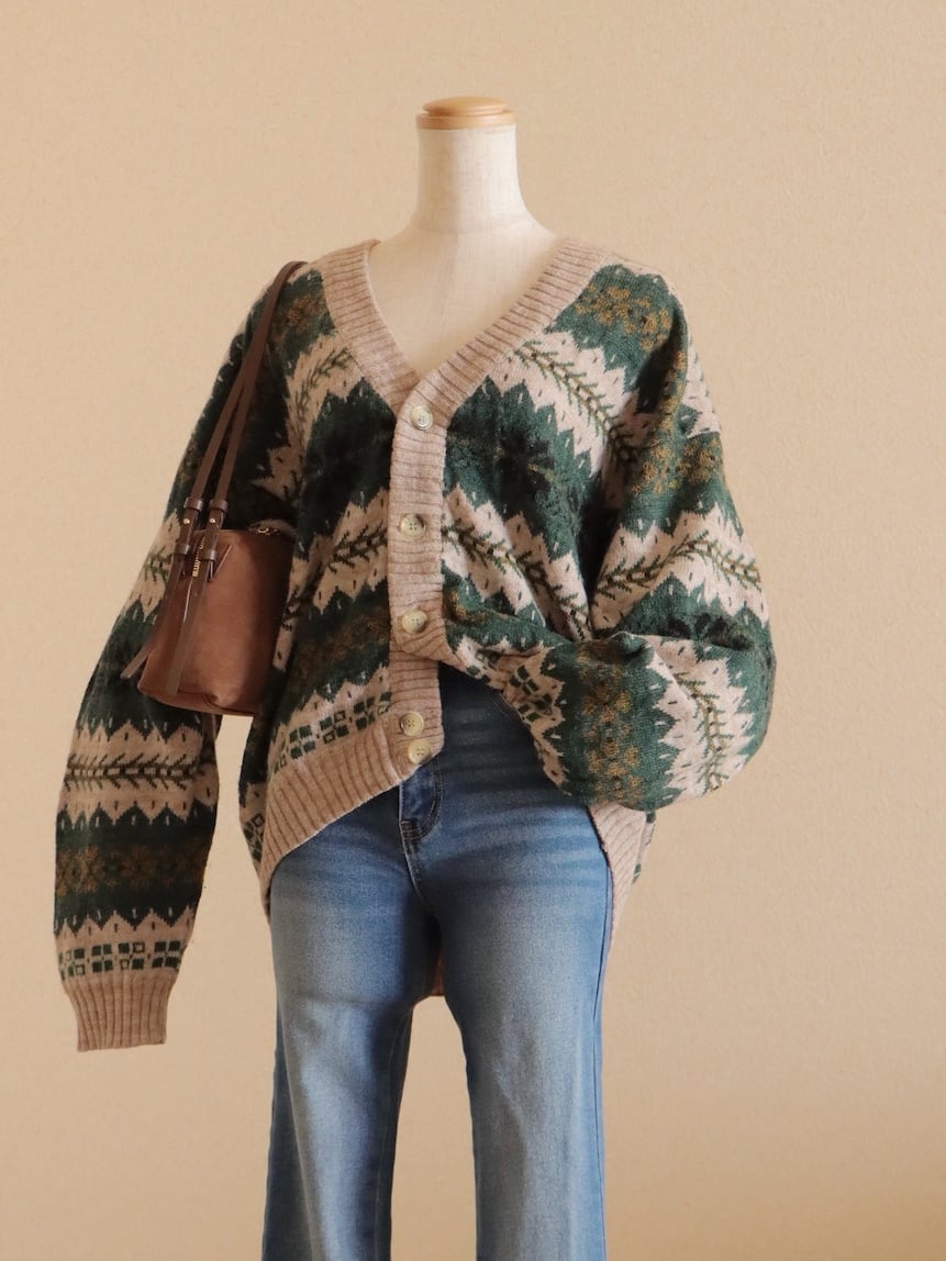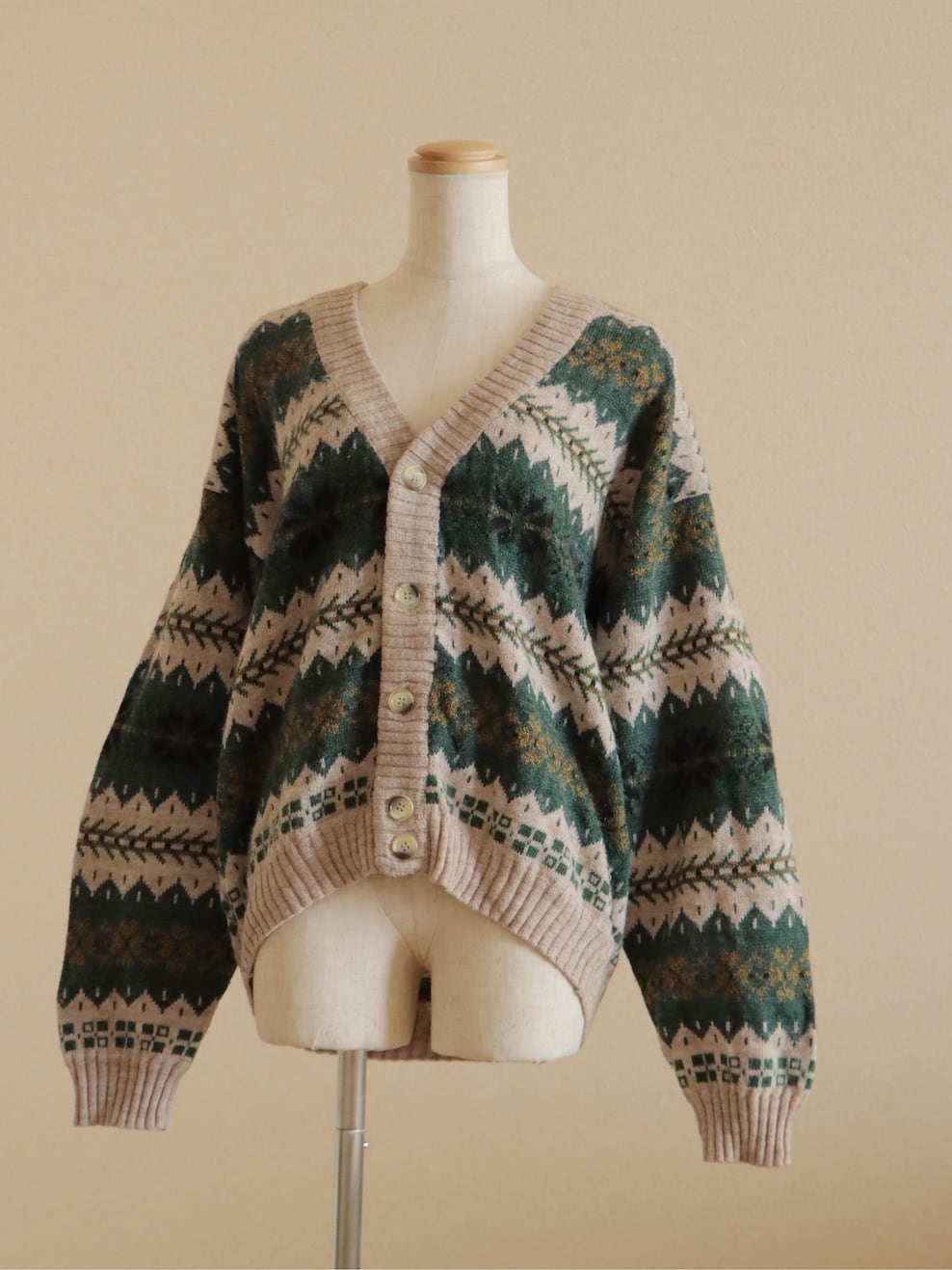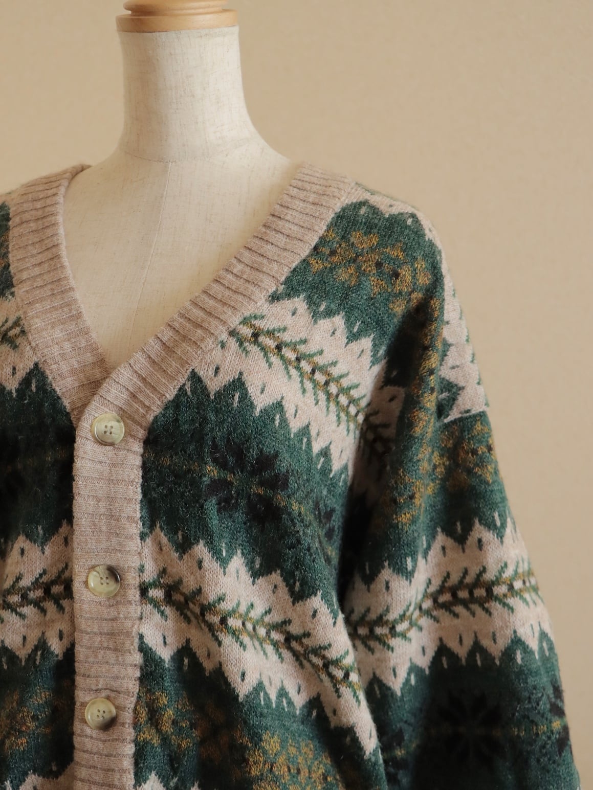 ●made in ITALY snowflake green color design wool cardigan