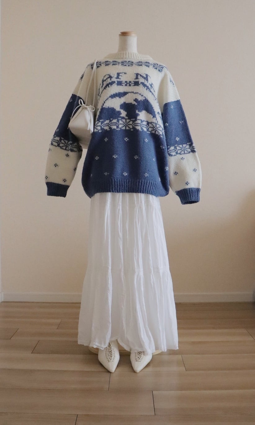 ●made in PERU wool NAFNAF design jacquard knitted sweater