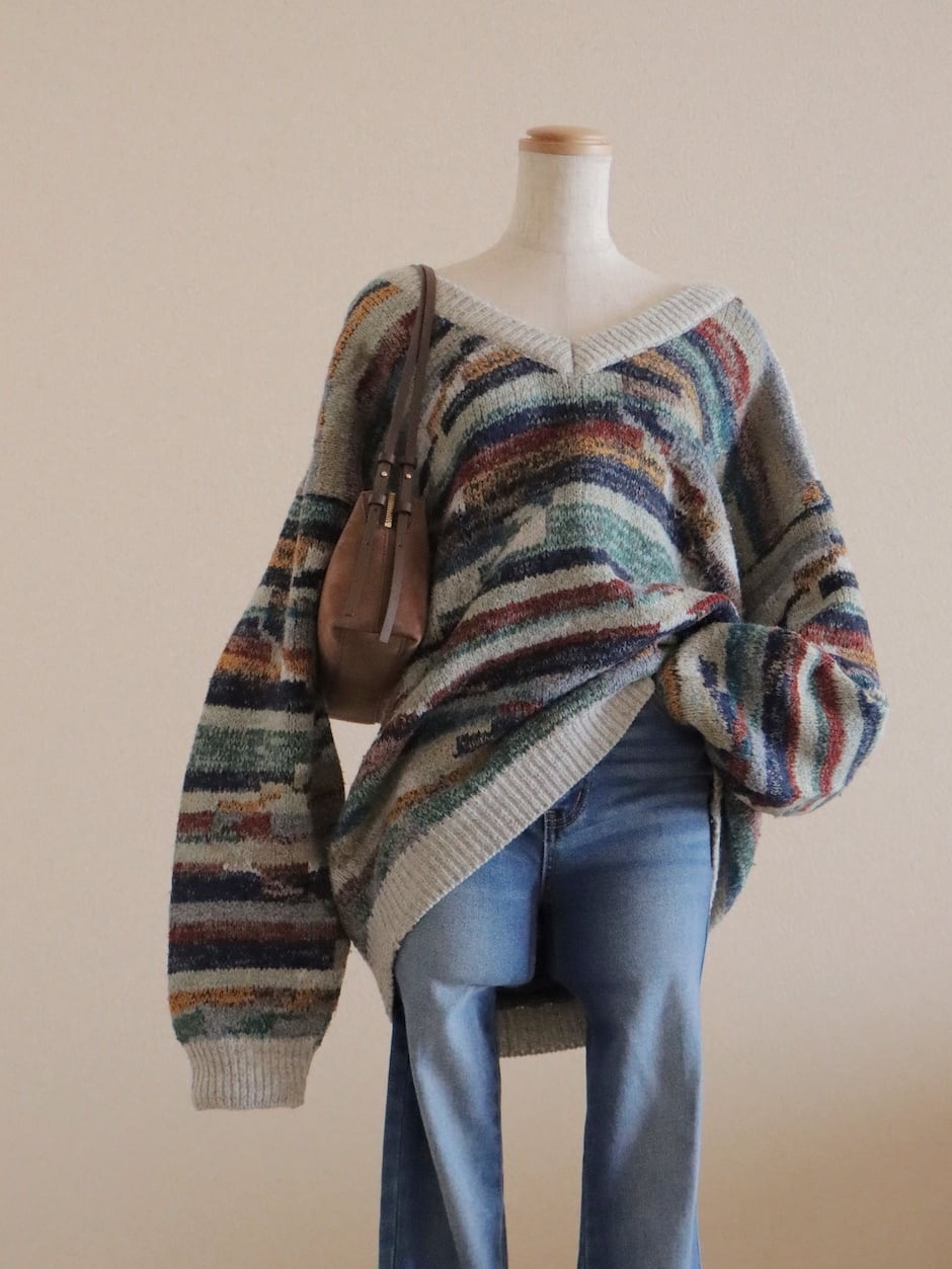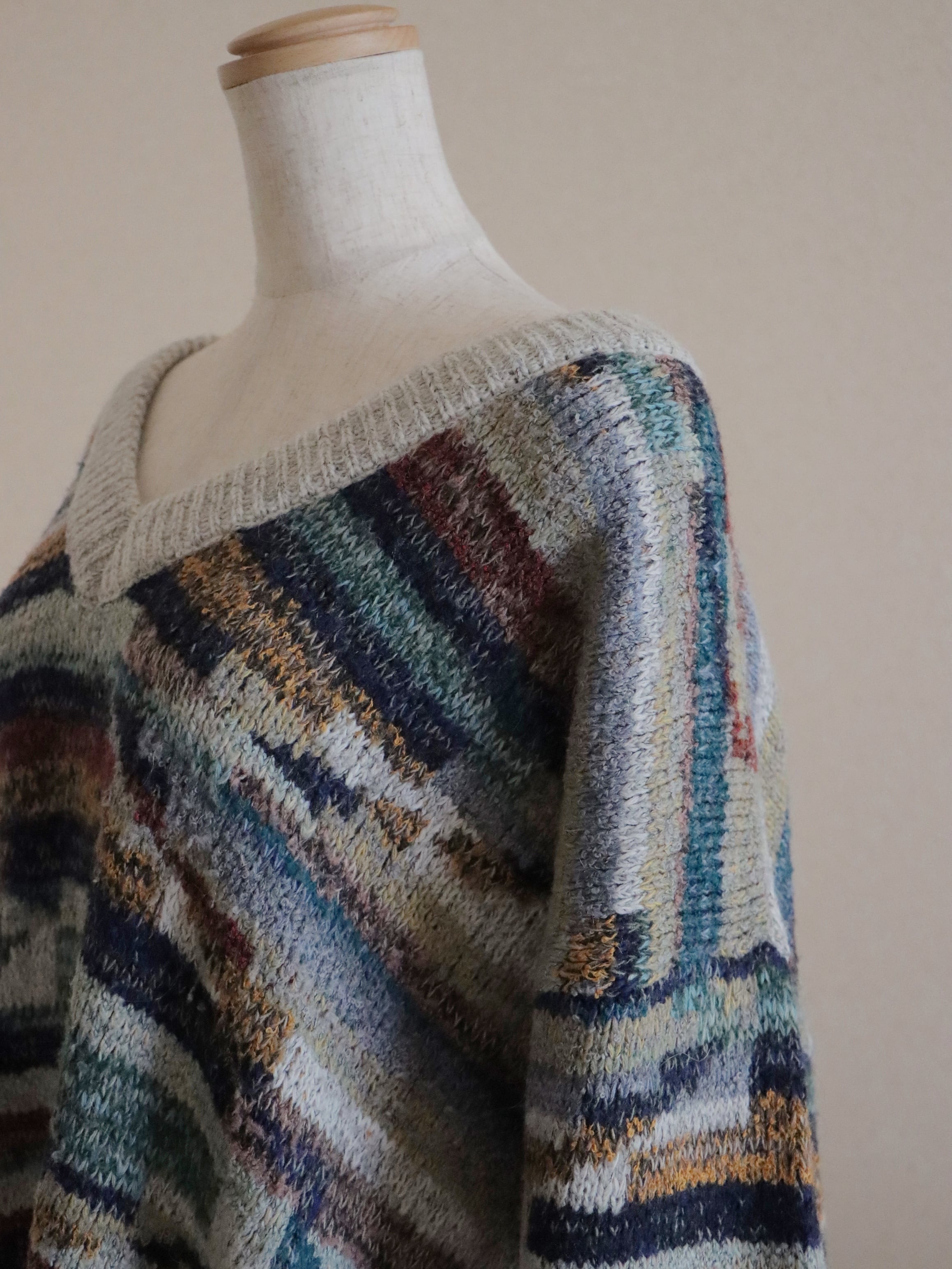●made in ITALY wool color nep yarn jacquard design sweater.