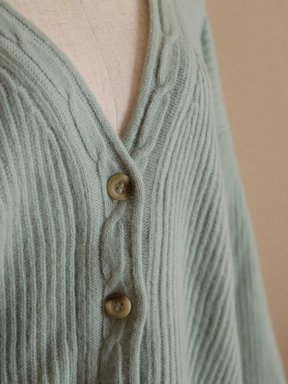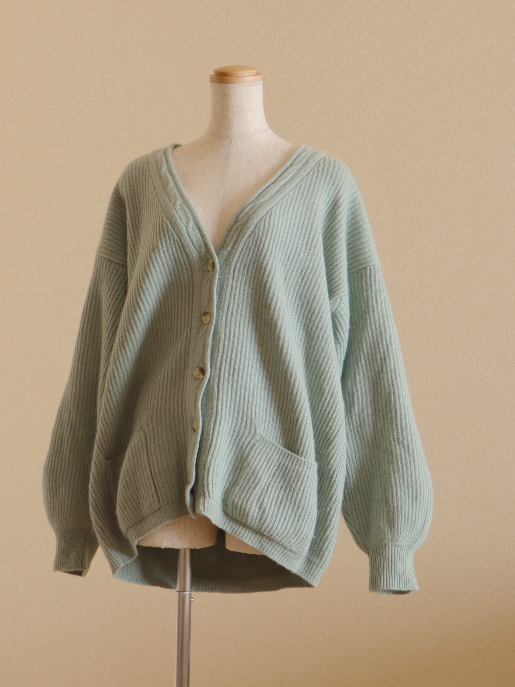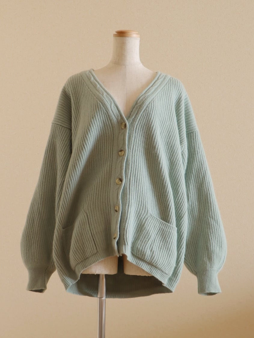 ふんわり柔らかなアンゴラ素材の編地が着心地良いニットカーディガン。
