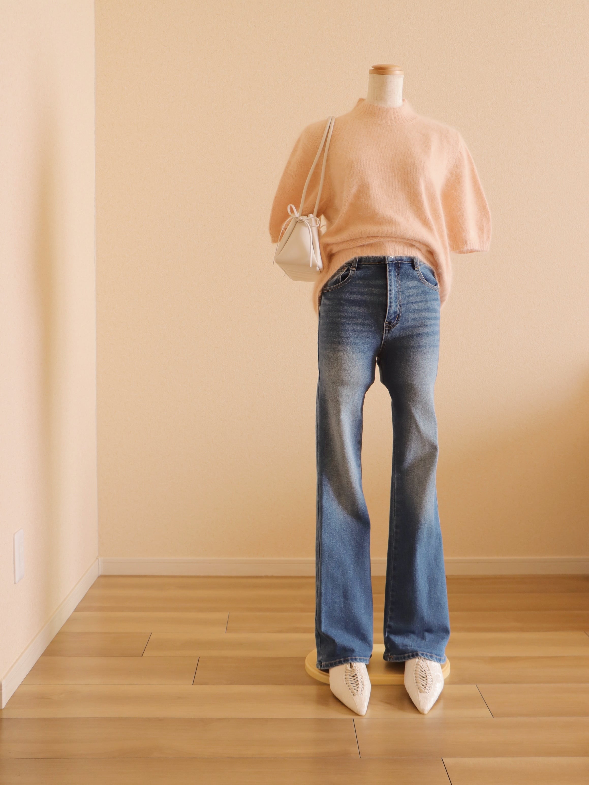 淡く優しいペールトーンのピンクカラーが春を感じさせてくれる、これからの季節にお勧めのカラーニットです。