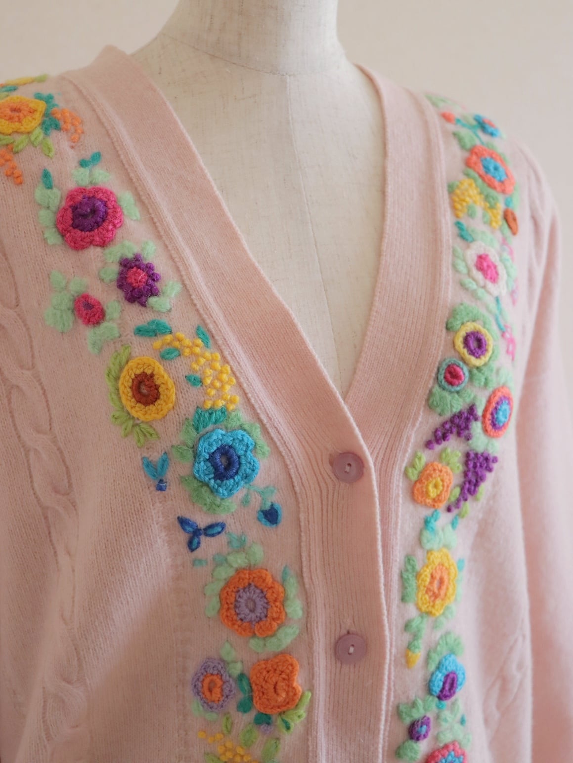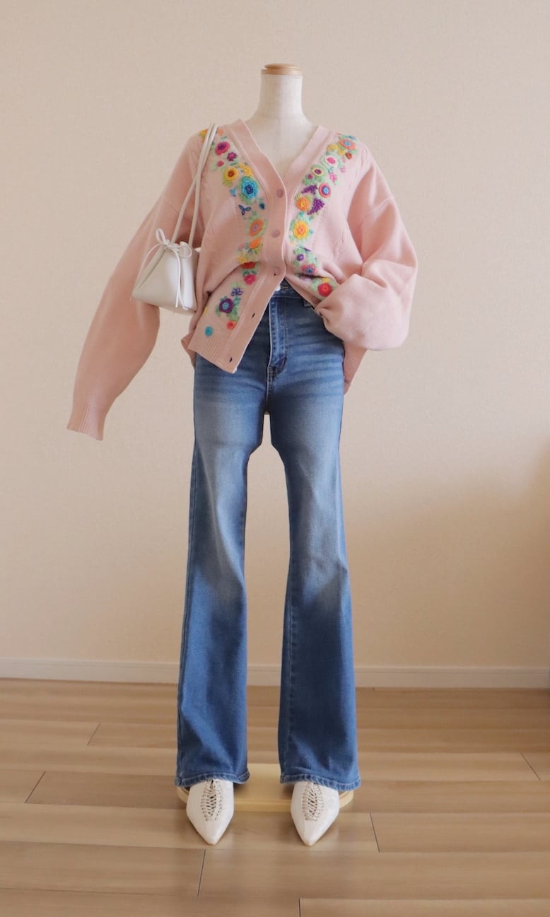 ●flower embroidery design pink color Angora cardigan.