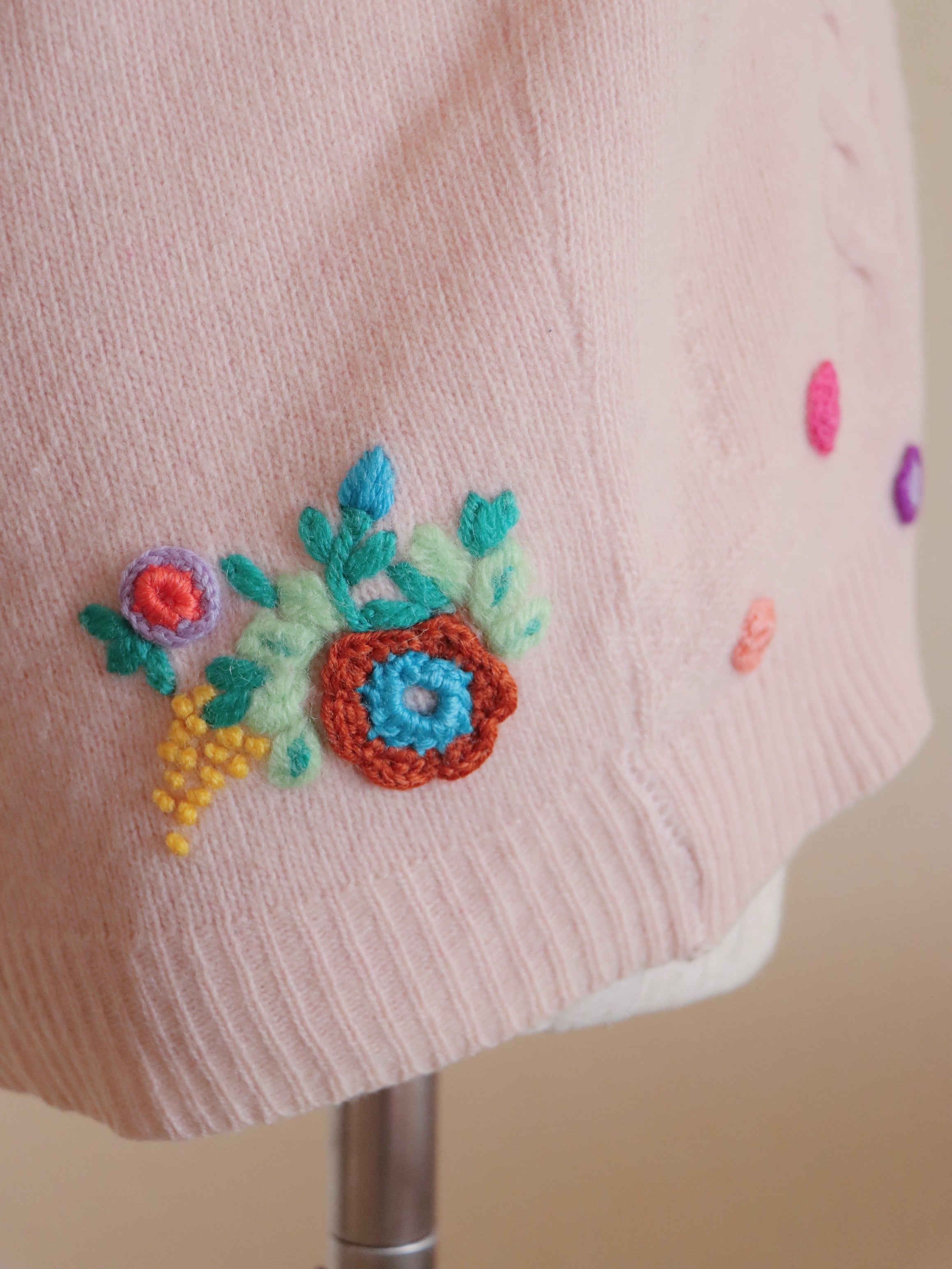上品で控えめな淡く優しいくすみピンクの編地は、刺繍を引き立ててくれます◎
