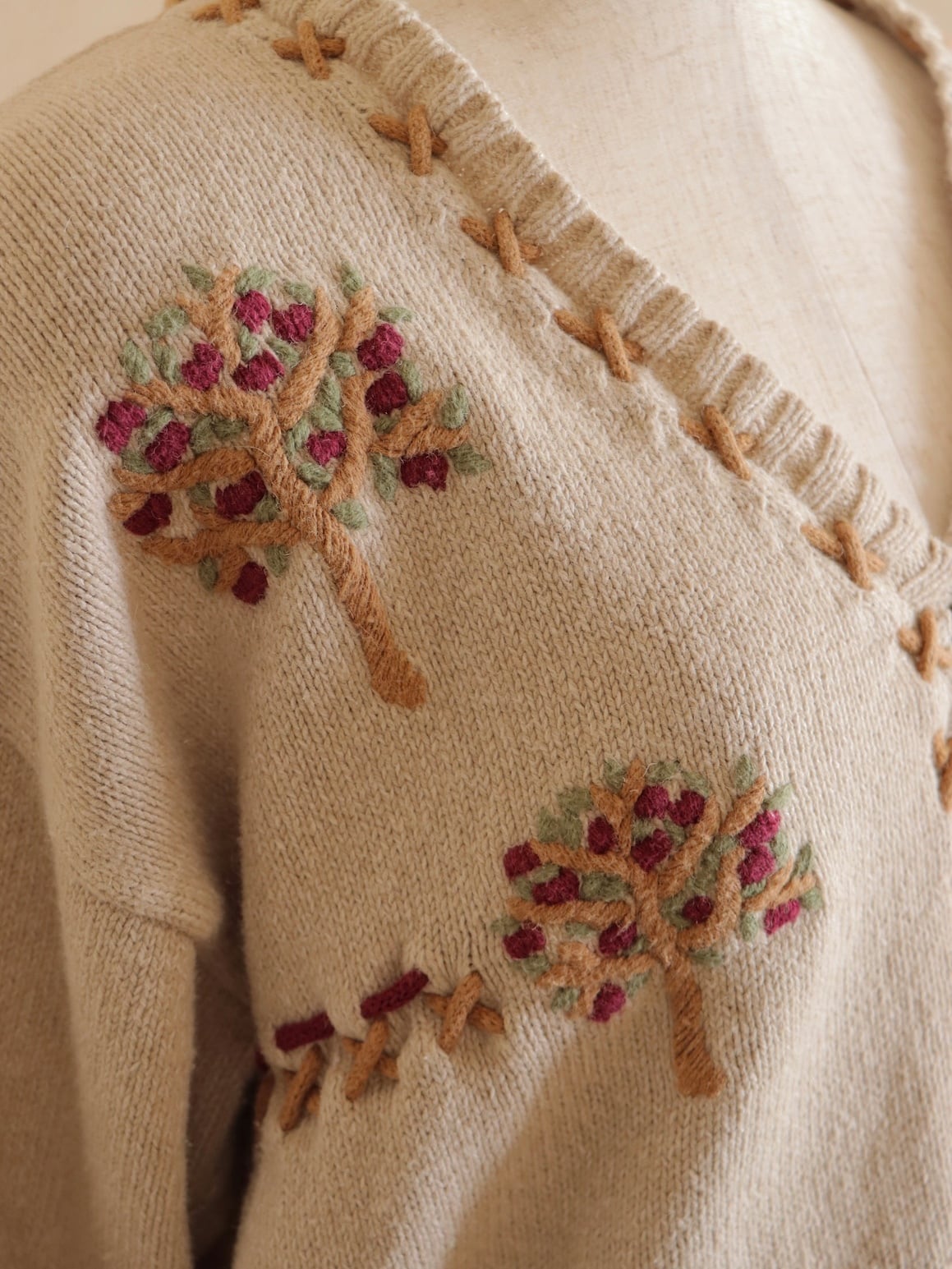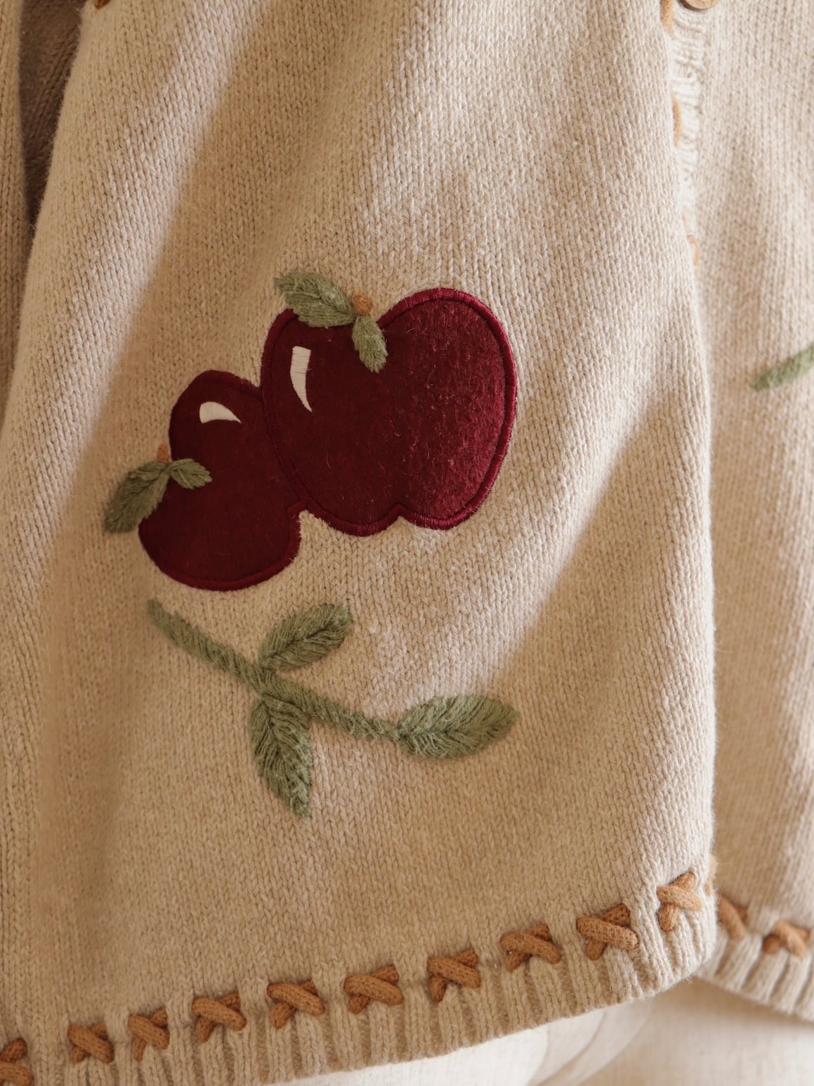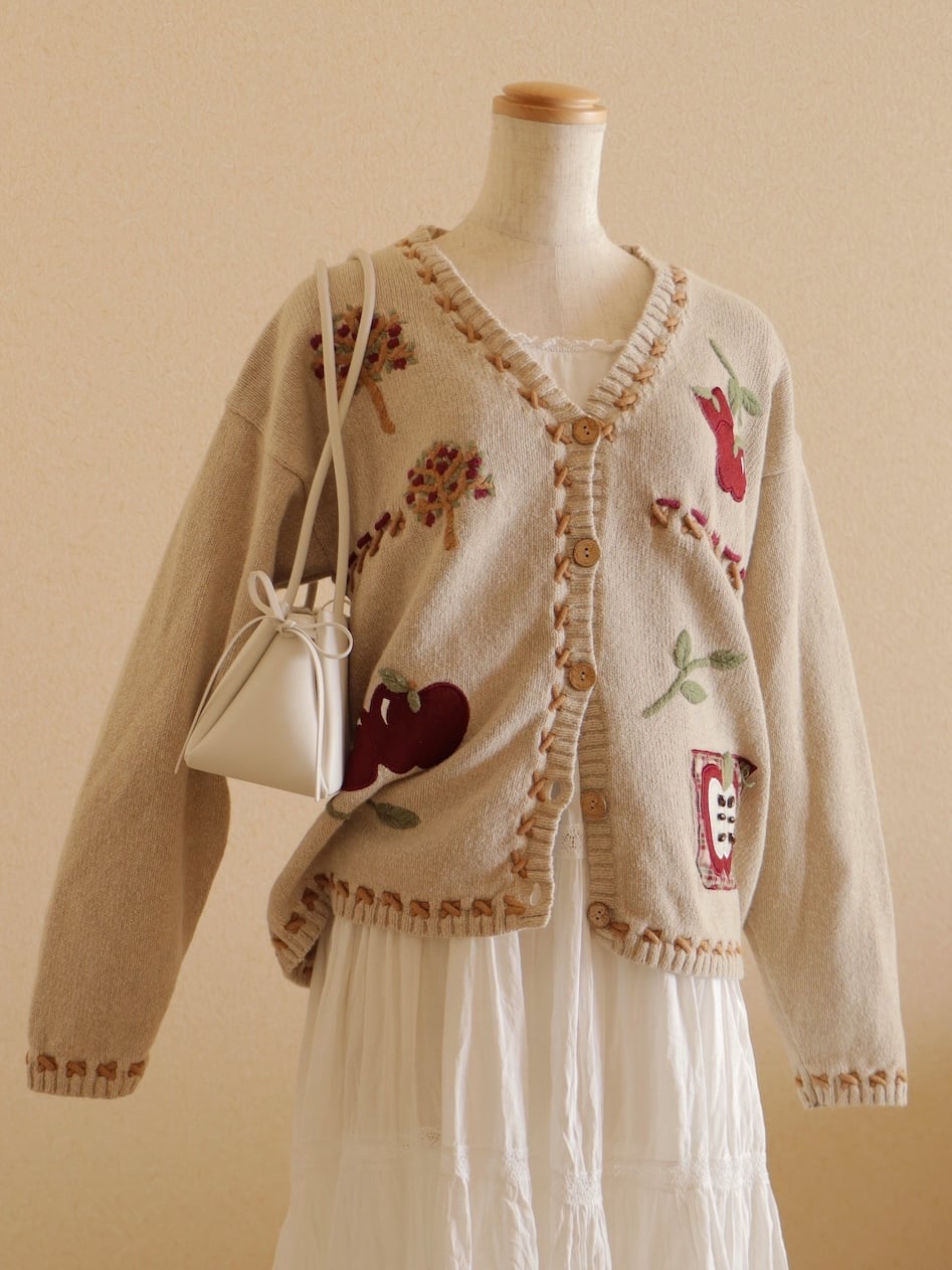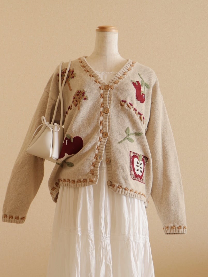 ●apple & cross stitch embroidery design cardigan.
