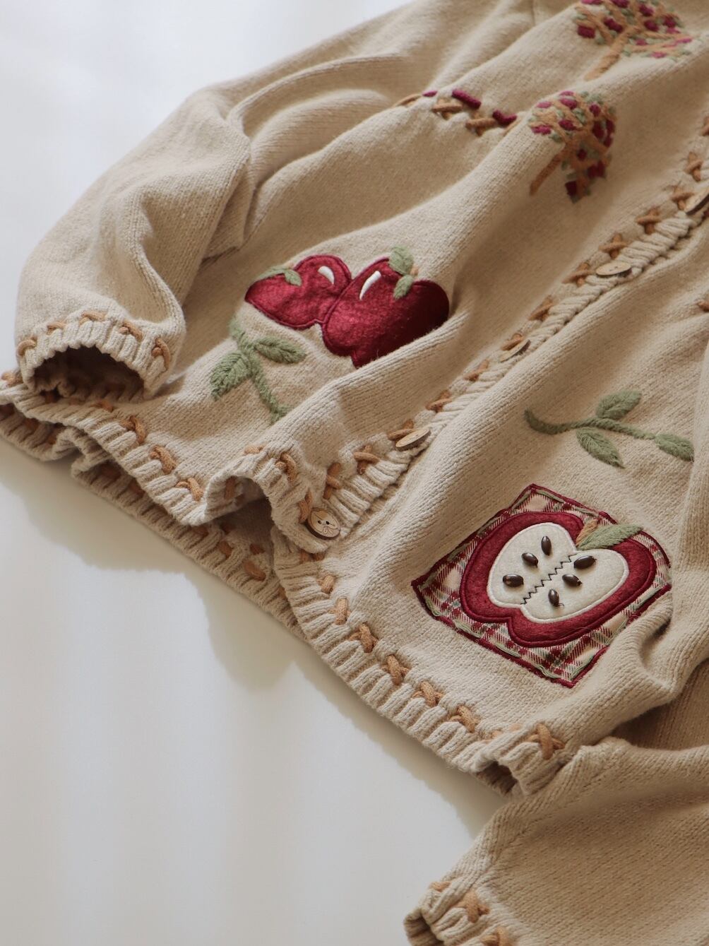 ●apple & cross stitch embroidery design cardigan