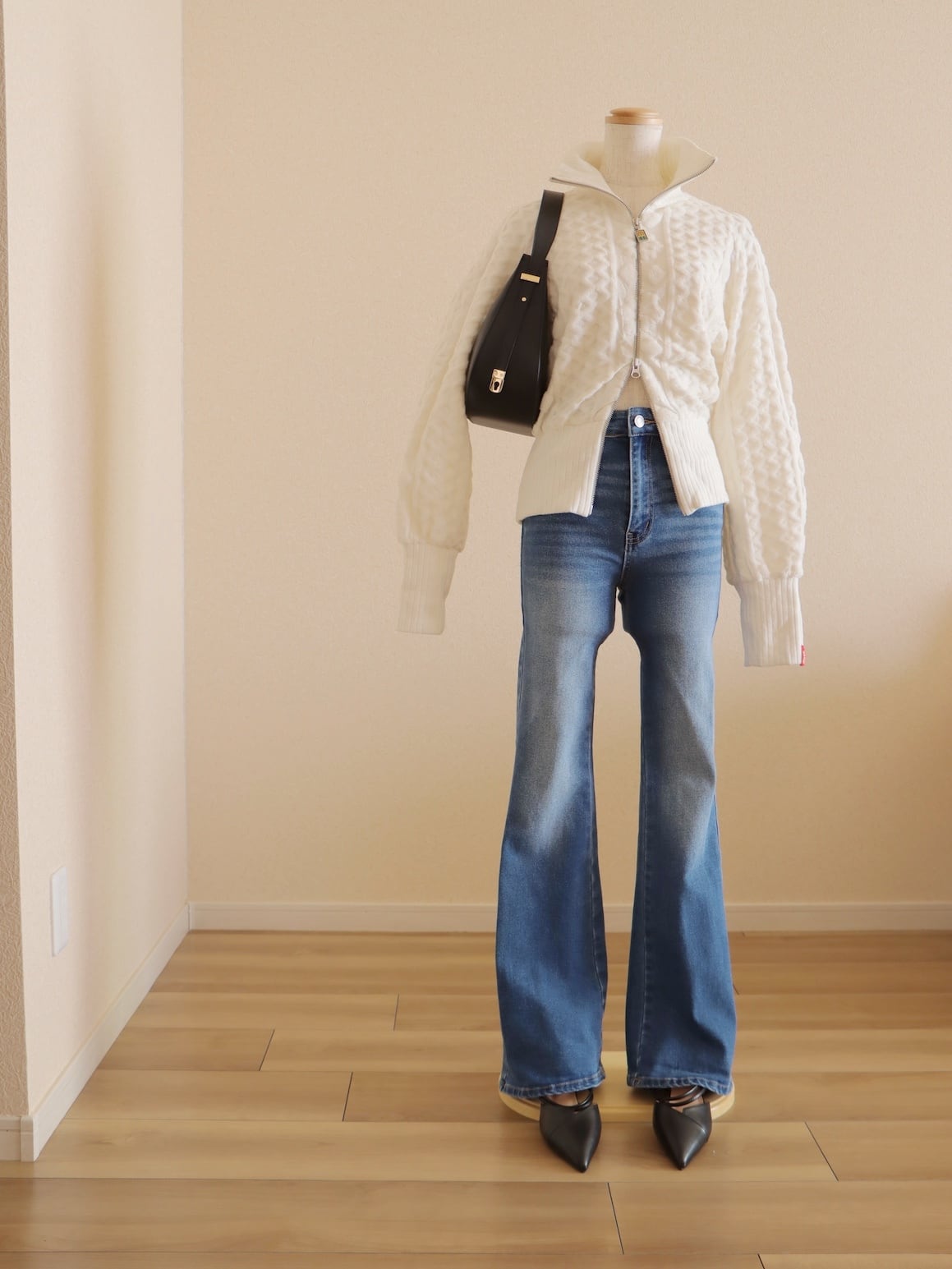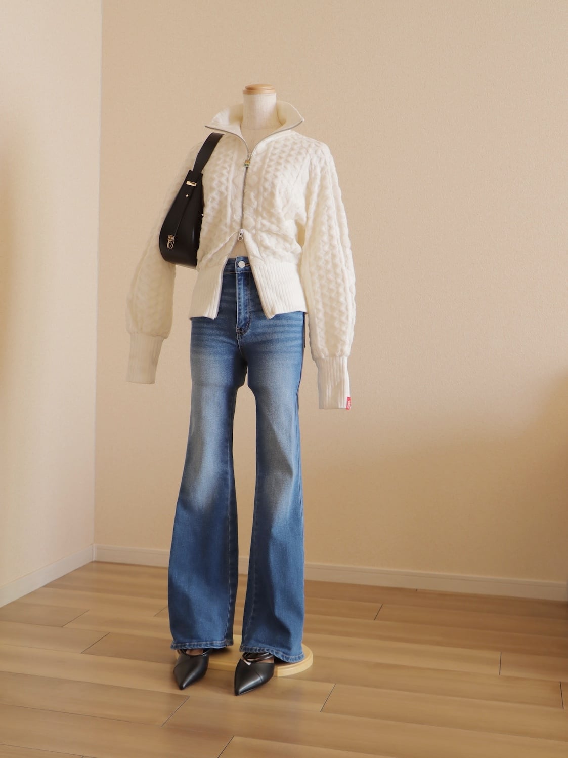 ストレッチの効いた柔らかな風合いと優しいオフホワイトの色味が、春を感じさせてくれます。