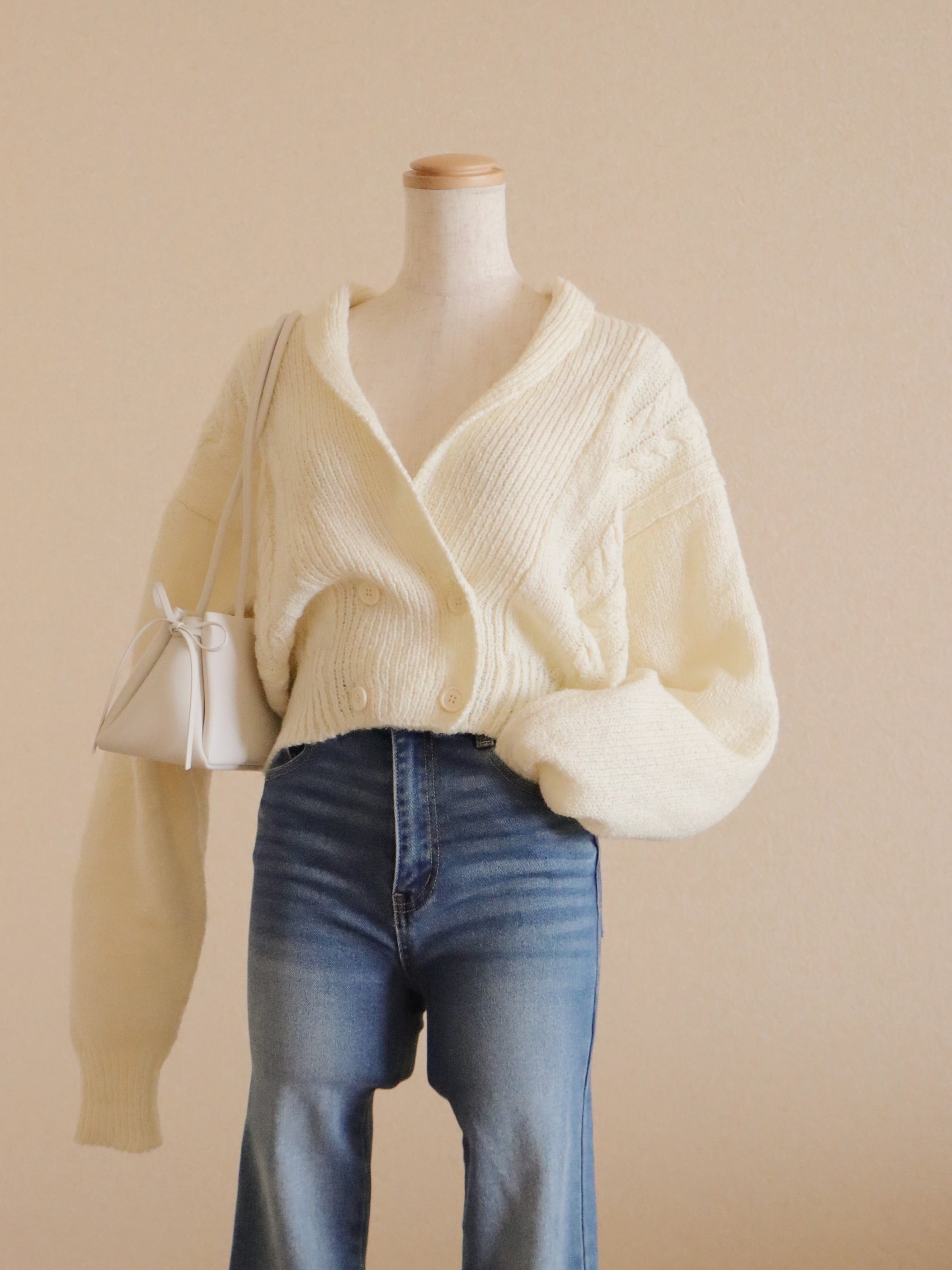 ソフトで柔らかな編み地で今の時期から春先までお勧めのニットカーディガン。