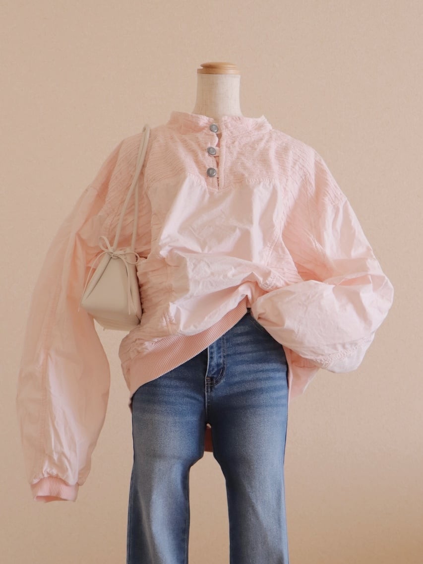 ゆったりルーズなシルエット感が可愛い、これからの季節にお勧めの1着です。