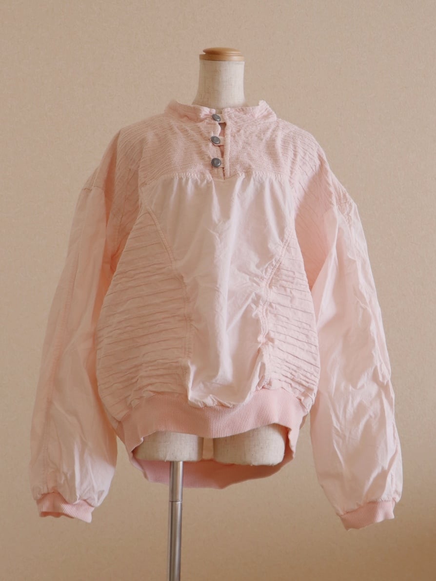 淡く優しいピンクカラーが目を惹く、90年代頃のデザイントップス。