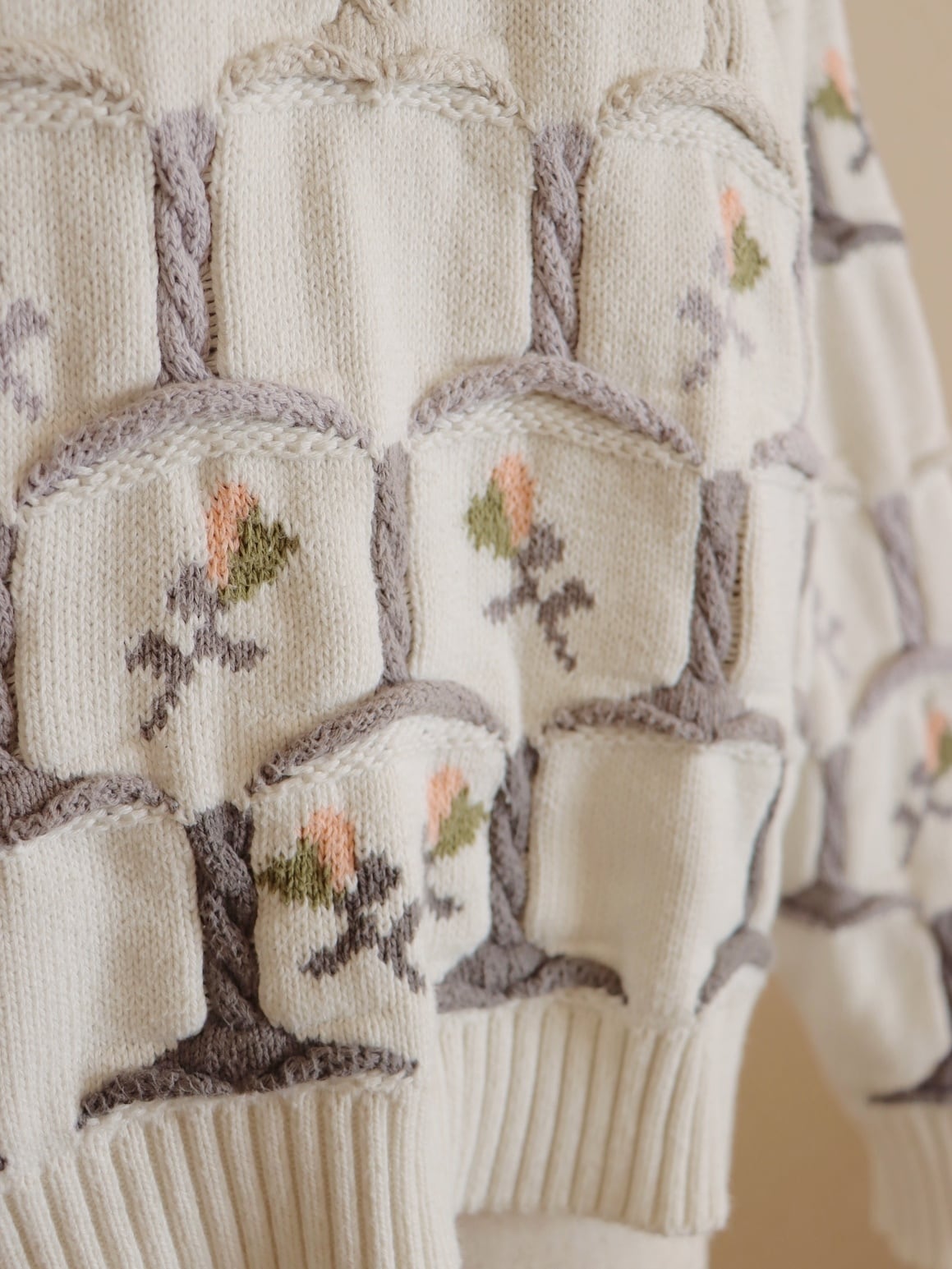 凹凸感があり立体的で肉感のあるジャガード編みが高級感溢れる、英国製のデザインニット。