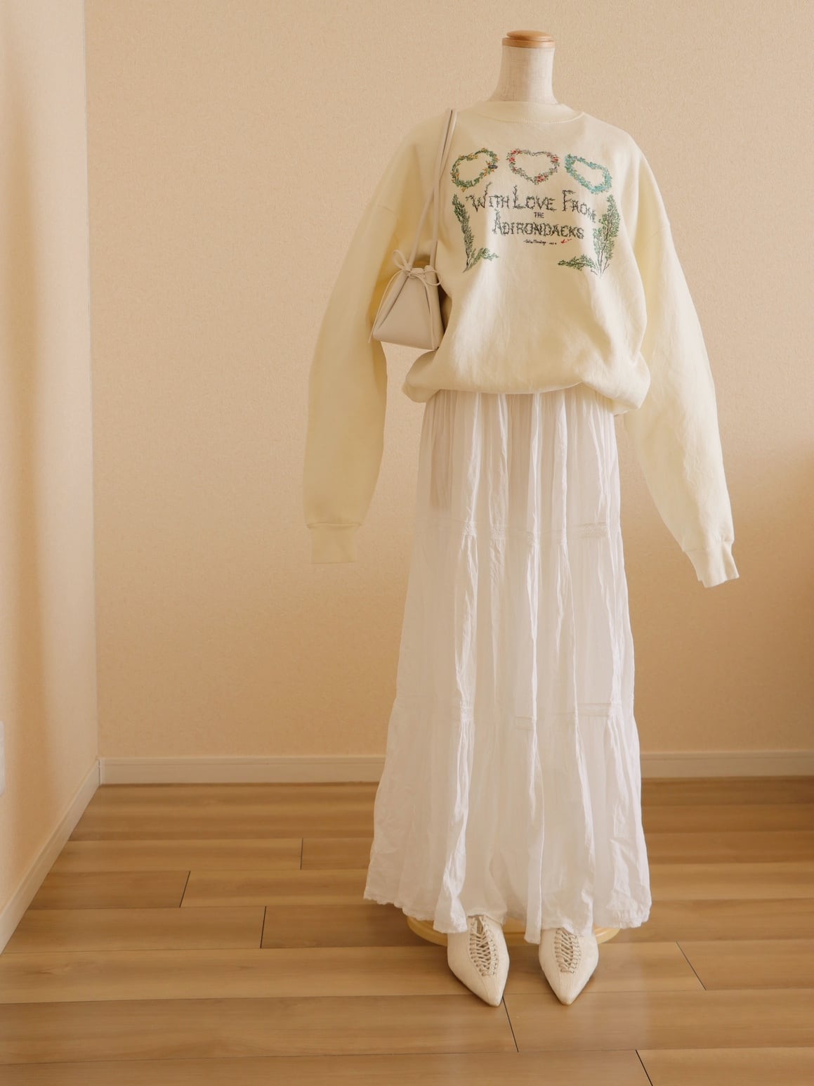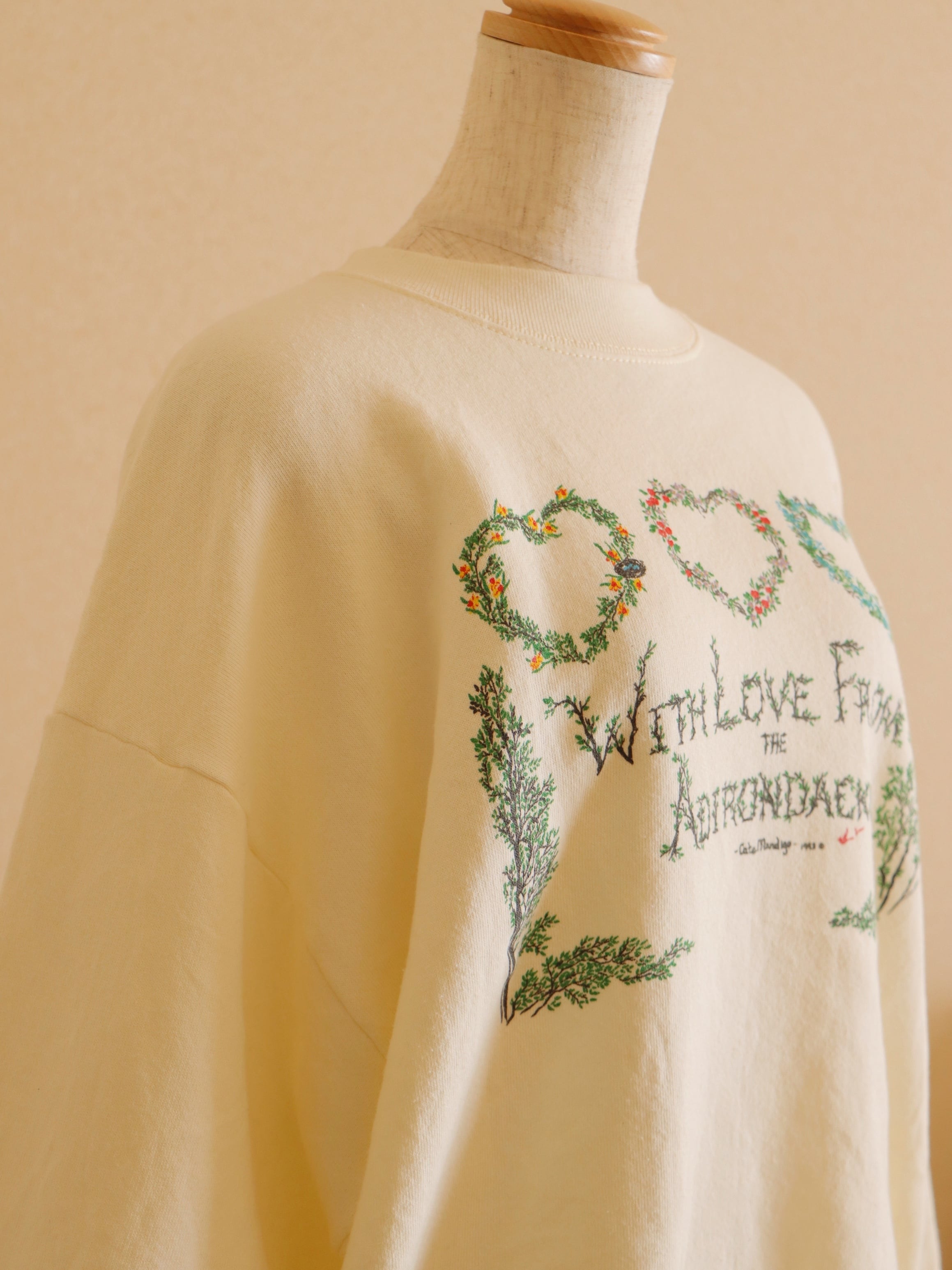 淡く優しいクリームイエローの色味が可愛い、90年代頃のUSA製スウェット。