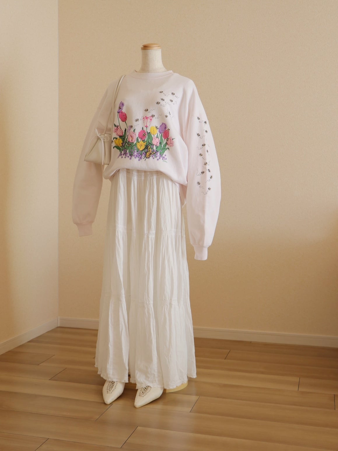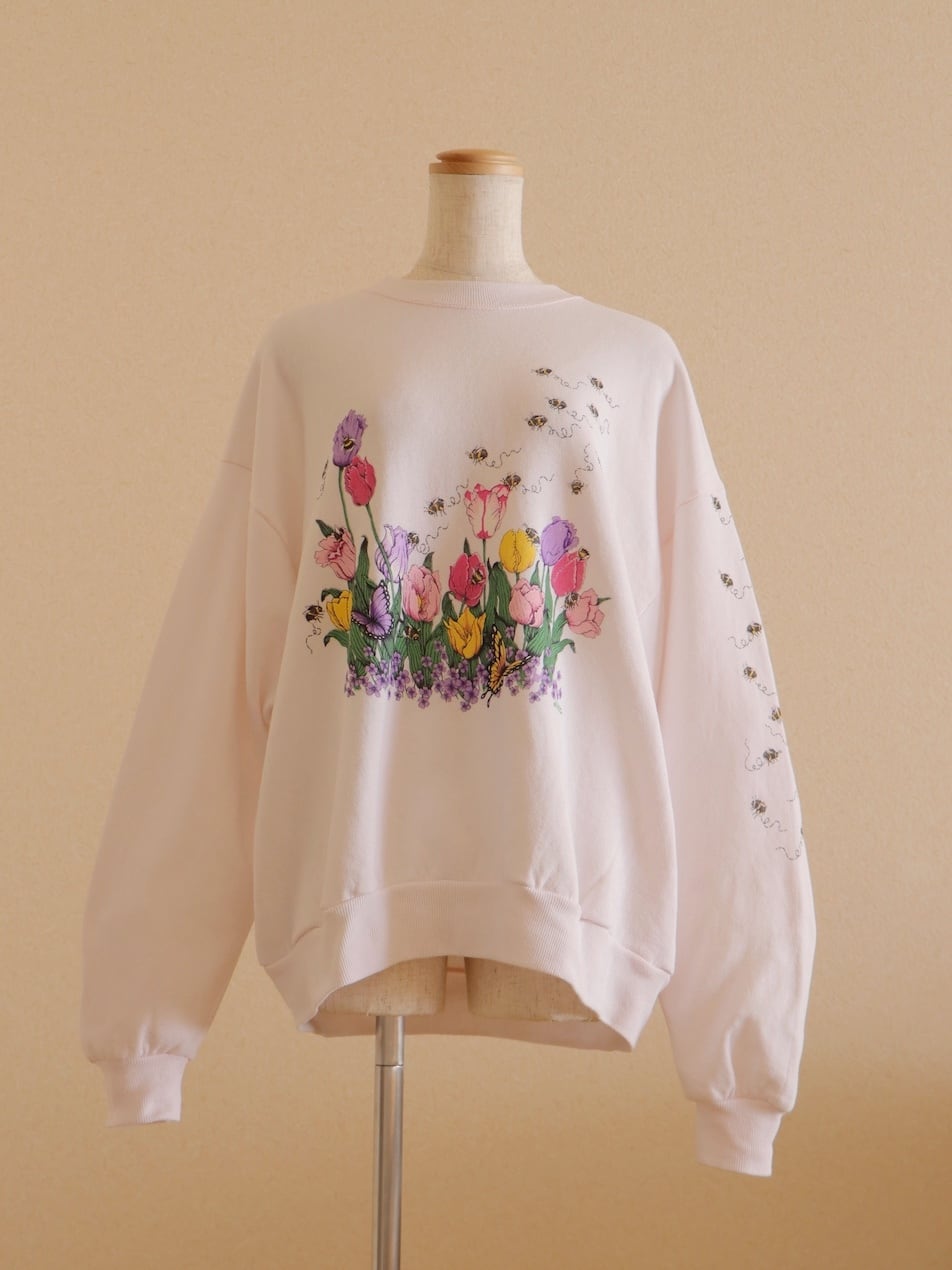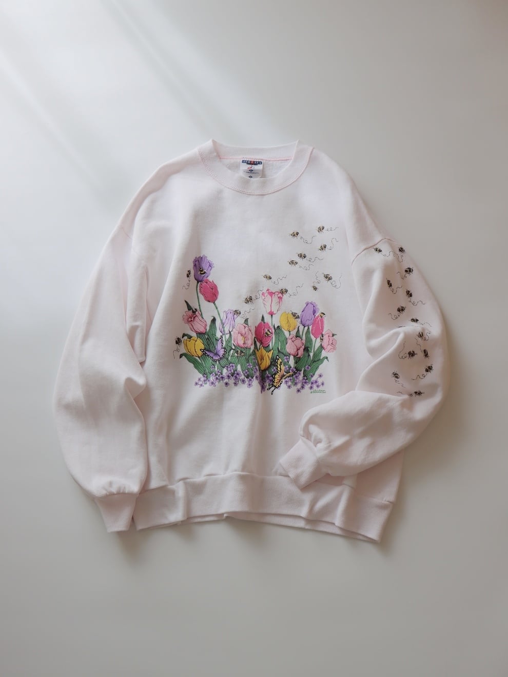 ●90s made in USA tulip flower & honeybee print sweatshirt.