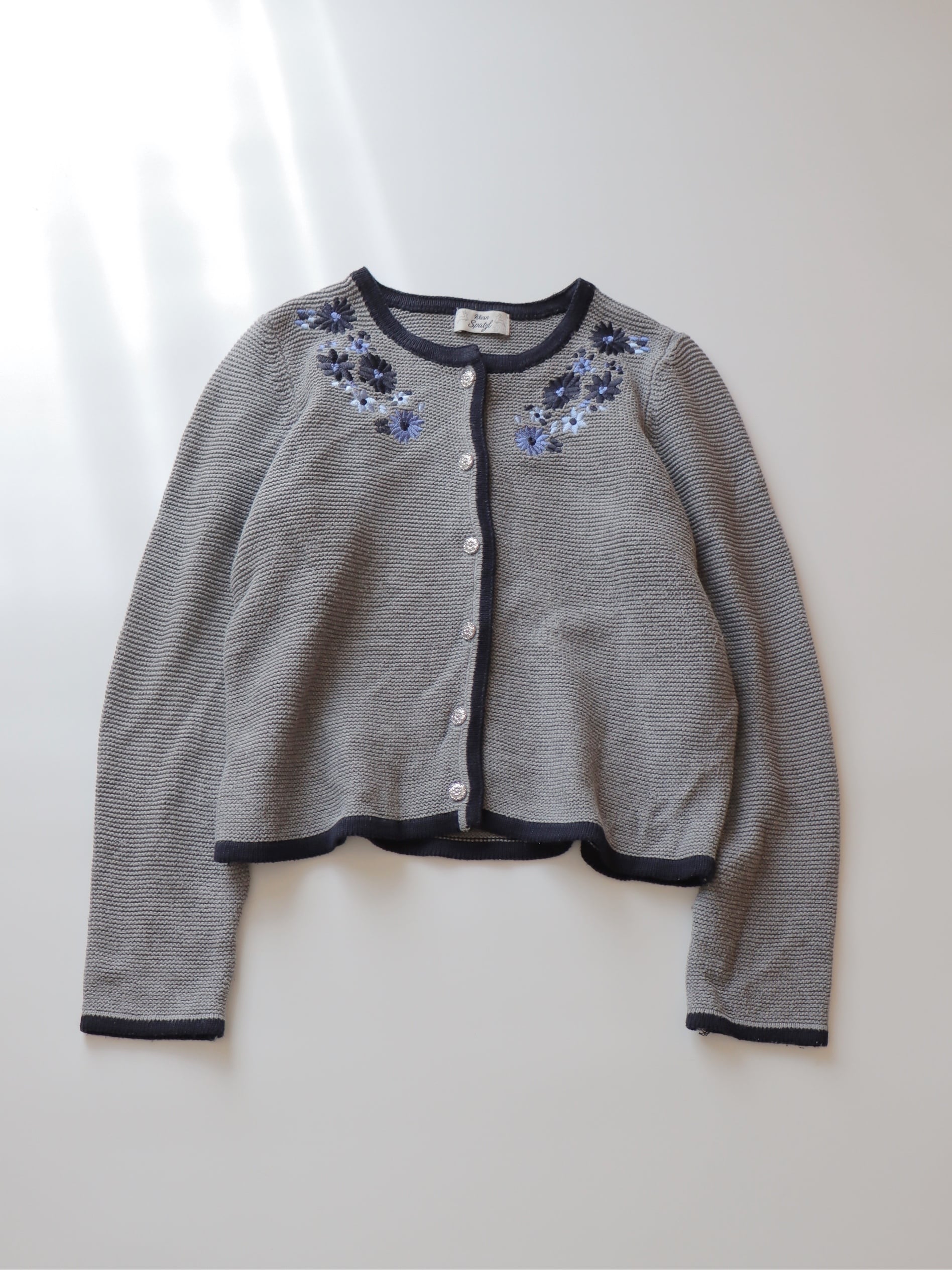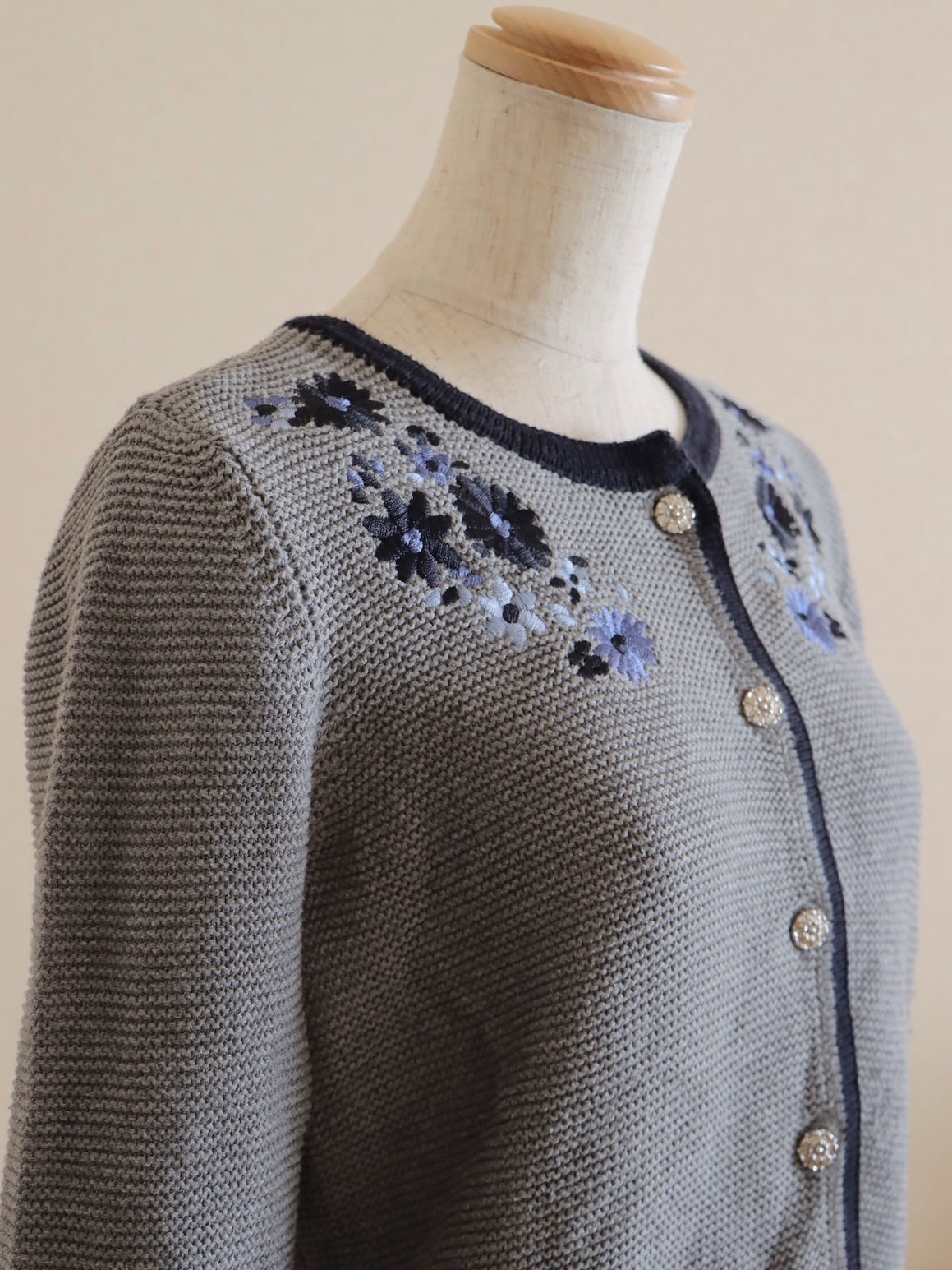 高級感のあるボタンと繊細なフラワー刺繍が施された、これからの季節にお勧めのニットカーディガン。